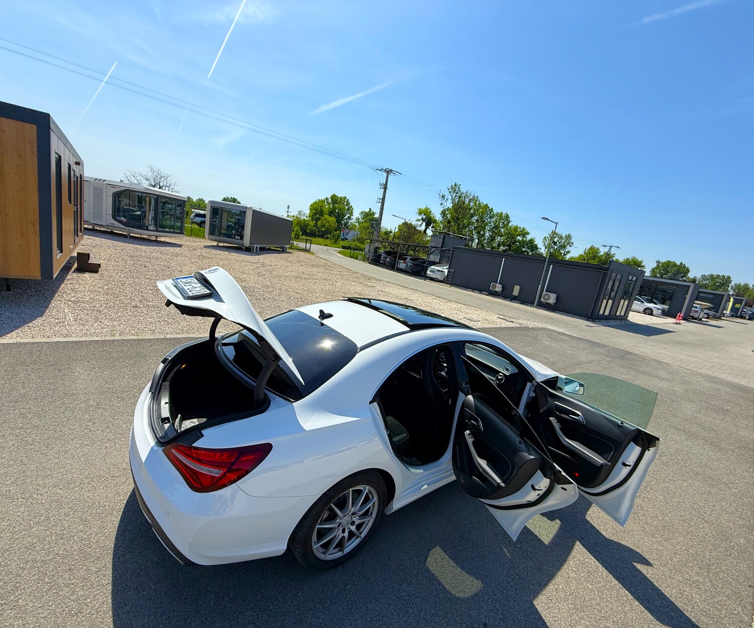 CLA 180 122Le benzin, Automata váltóval. 2db gyári kulcsával, 1 (nemdohányzó, hölgy) tulajdonos végig, Rendezett magyar okmányokkal. A képeken látható szép állapotban. Nyári gumik külön felnigarnitúrával R18-as méretben. Rendszeresen karban tartott. Extrái: Holtér figyelő, Tolatóradar, Tolatókamera, Sávtartó, Ülés fűtés, Tempomat, Dupla digit klíma, Blue16 riasztó, Elektromosan nyitható panoráma tető, Elektromos ablakok, Elektromos tükör állítás-behajtás-fűtés. Megtekintéséhez előre egyeztetett időpontban.