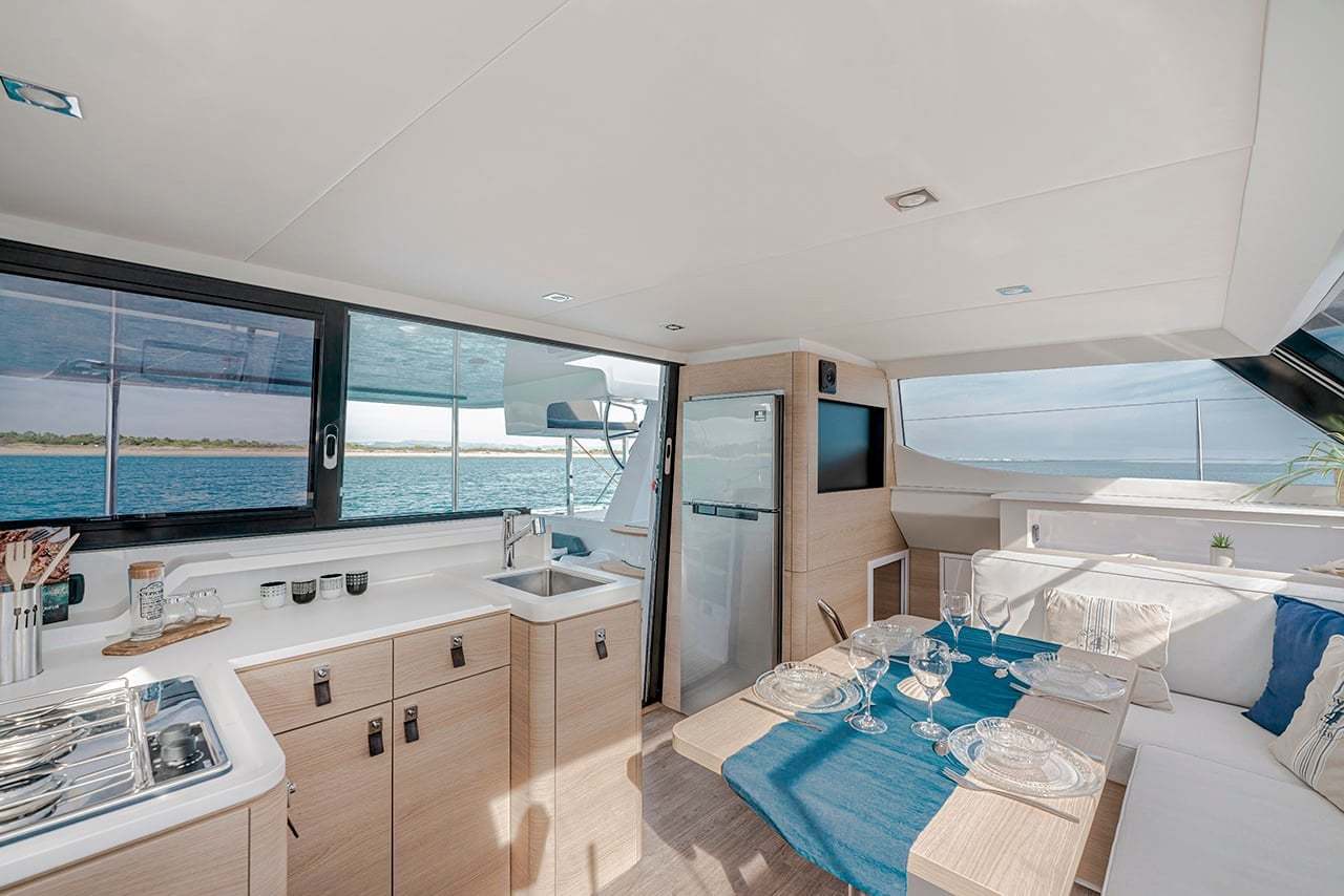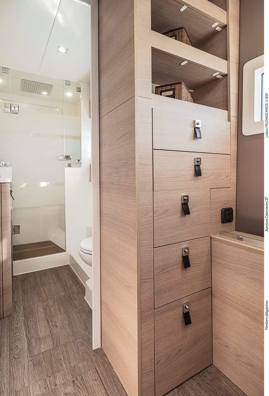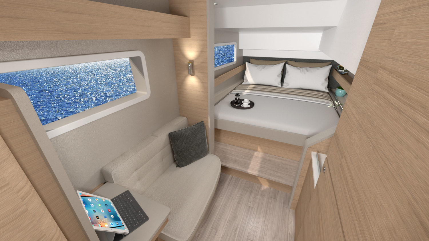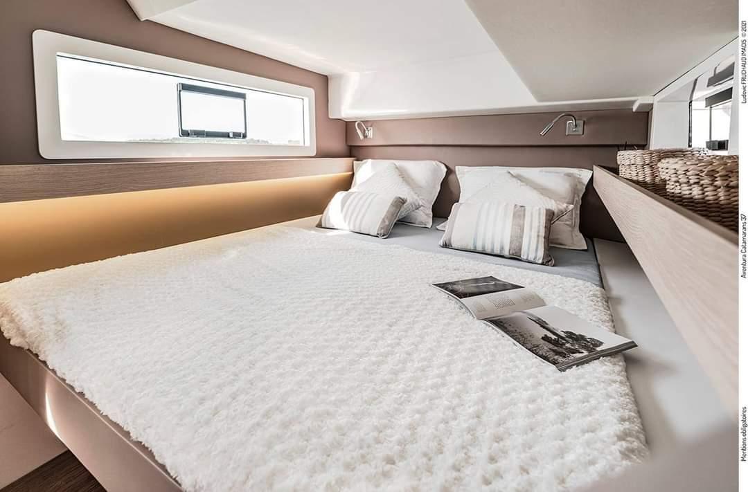 Akár Balatonra is jó választás a négykabinos, két fürdőszobás Aventura 37 katamarán. Tágas terei és egybenyitott szalon/kokpitja révén a 37 lábas katamaránon akár 20 fő is kényelmesen elfér. Kifejezetten gyors, nagy teljesítményű és biztonságos modell, melynek merülése csupán 1,2 m.