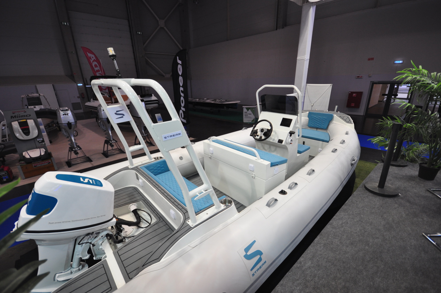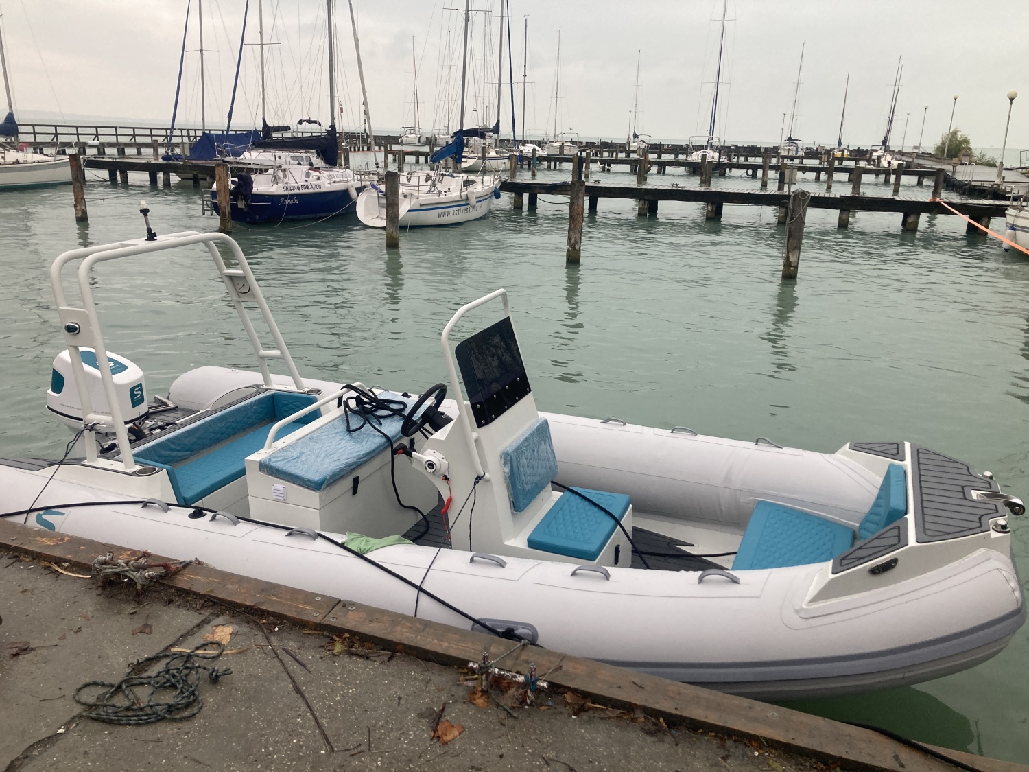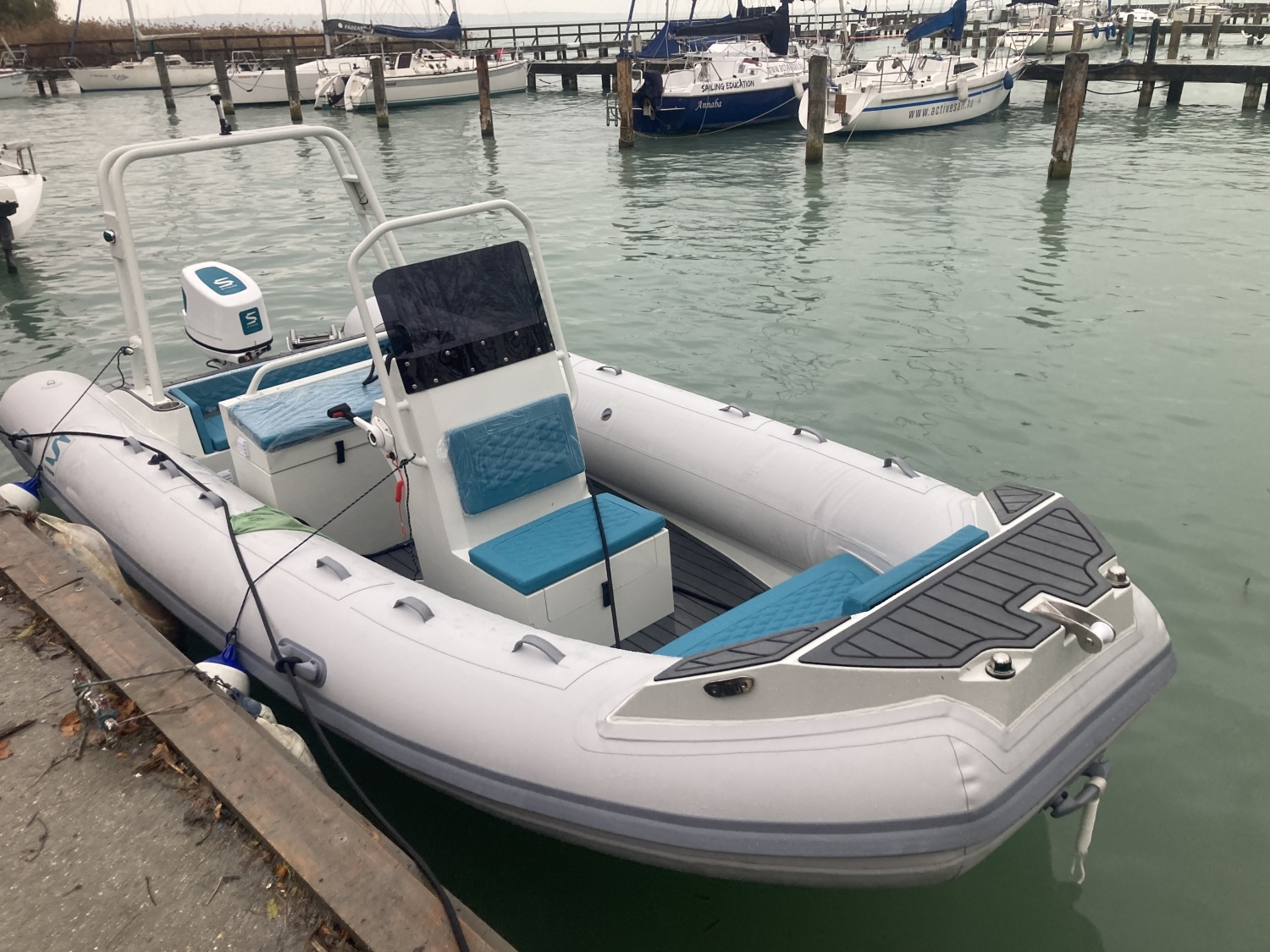 STREAM RIB HAJÓ 30 LE ELEKTROMOS MOTORRAL A BALATONRA VAGY VIDD MAGADDAL BÁRHOVA Magas felszereltségű, hossza 5.6 m, elnyűhetetlen Hypalon RIB hajó. A kényelmes napozó felületei elöl hátul, összecsukható bimini egész napos családi élmény hajózásra, strandolásra nyújt lehetőséget akár 10 fő számára. A hajót a svéd Stream cég a saját 30 - 50 LE elektromos hajtásrendszerére tervezte, így már összeépítve adjuk át, azonnal kipróbálható, átvehető. A hajó 20-22 kW teljesítményen már siklik, így több mint 1 óra, 10 km/h túra tempónál 5-6 óra üzemidőt biztosít a 26 kWh LiNMC akkumulátor csomag. Olyan hajósoknak ajánljuk akik gyors, siklóképes, könnyen sólyázható, szállítható és tárolható hajót keresnek, de nem kötnek kompromisszumot a kényelem terén sem. Felszereltség: navigációs fények, fenék pumpa, ülő párnák (PANTONE 2222C), horgony kamra és tárolók, EVA padló, fürdőplatform, fürdőlétra, USB socket, elektromos kapcsolók, pohártartók, 1,25mm hypalon upgrade, hátsó keret (rollbar), összecsukható bimini, hidraulikus kormány, napozó ágy, hajótakaró, motor trim A hajó bevezető ára: 44100 EUR + Áfa helyett 39.900 EUR + Áfa