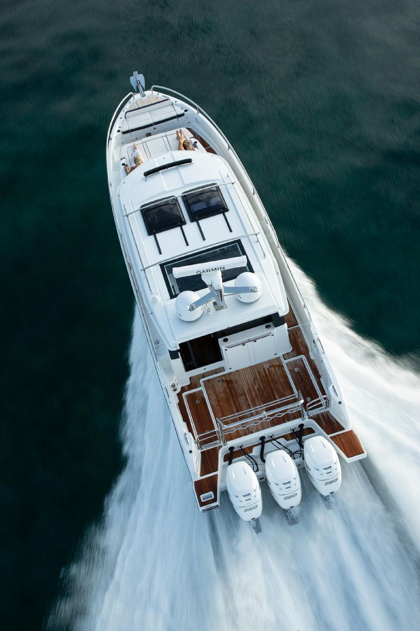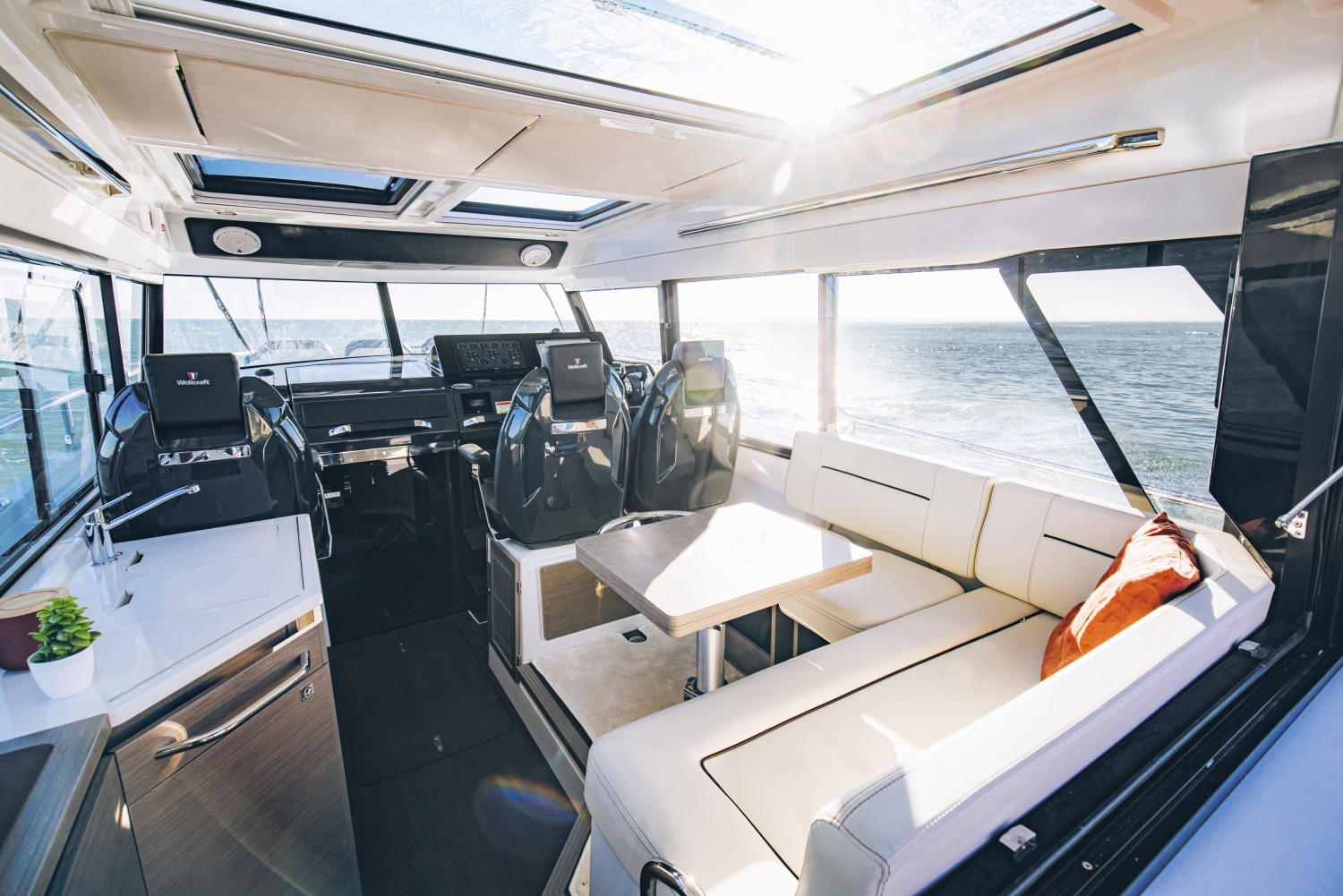 A Wellcraft 355 többféle kialakításra is ad opciót, így a hajóbelsőt maximálisan személyre szabhatod, kényelmes ülőgarnitúrával, rengeteg tárolóhellyel, plüss franciaággyal és egy háromrészes fürdőszobával, külön zuhanyzóval.