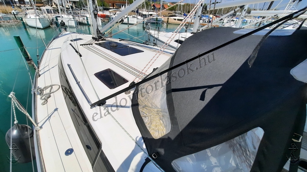 Eladó a híres Giebelstadt-i Bavaria cég 2020-as Cruiser szériájának egy 41-es modellje. Három kabinnal, két fürdővel, elegáns szalonnal, praktikus oldalsó konyharész kialakítással, egyedi dupla kormányállással, teak-borítású cockpittal, lehajtható teak fürdőplatformmal és tavi kiellel rendelkező, extrákkal felszerelt, gyönyörű, újszerű állapotban lévő, 12 személy befogadására képes vitorlás túrahajó, amely méreteinek köszönhetően, mint rendkívül kényelmes vízi-nyaraló a nagycsaládosoknak is tökéletes választás.