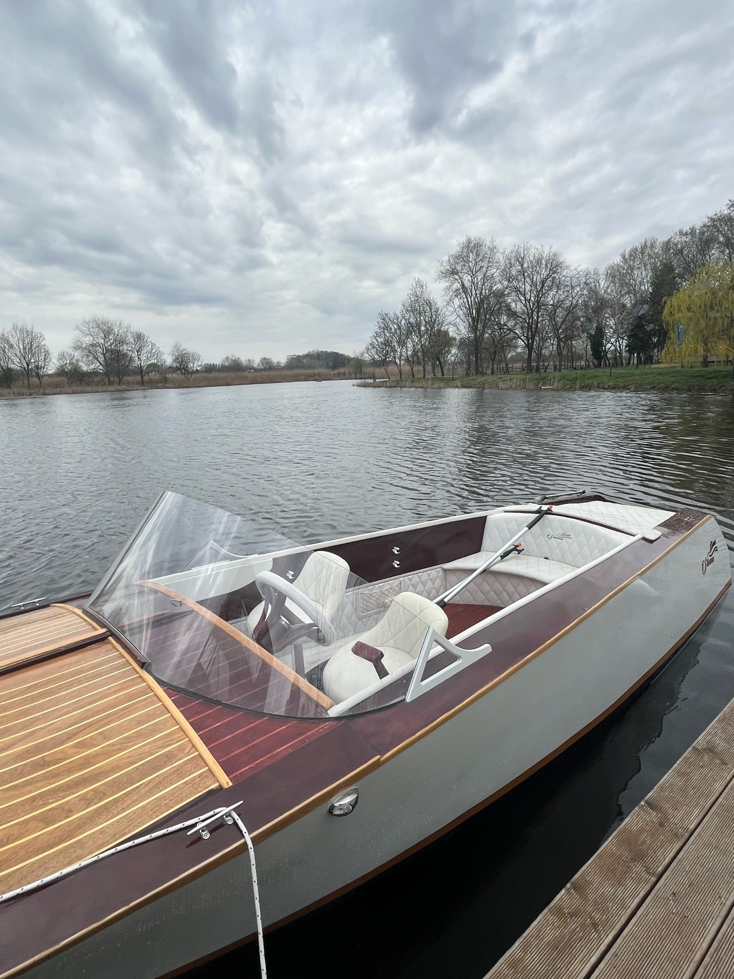 Ez az egyedi építésű motorcsónak kivételes inspirációt merített az olasz Riva Aquarama hajóból, és mindezt egy modern, erőteljes szerkezetben ötvözi. Az egyedi tervezésű hajótestet erős és tartós szerkezettel rendelkezik, mely a legmagasabb szintű biztonságot és teljesítményt garantálja.