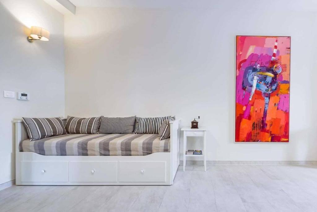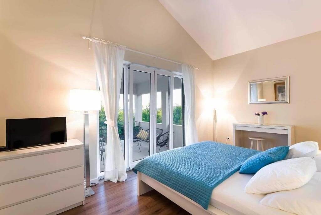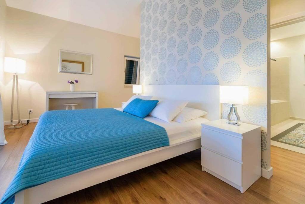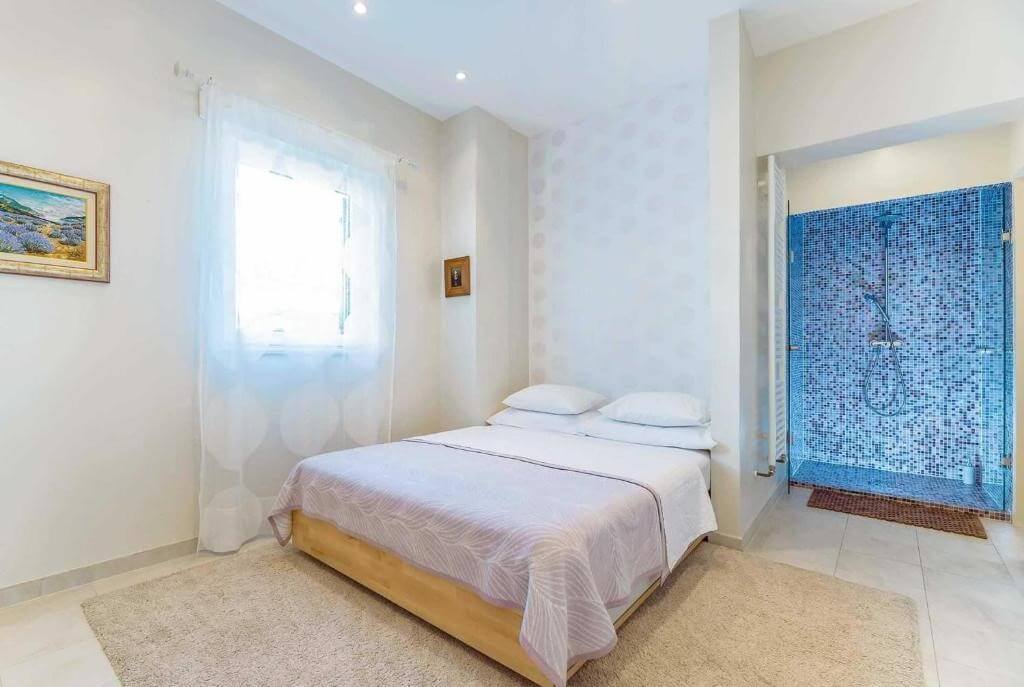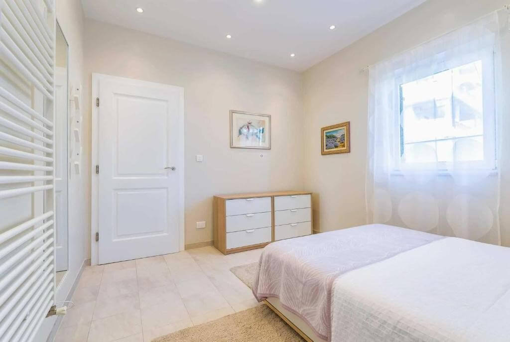 1 hálószoba egy fő hálószoba saját fürdőszobával és kijárattal a teraszra. Ebből a szobából az ágyból gyönyörű kilátás nyílik a tengerre.