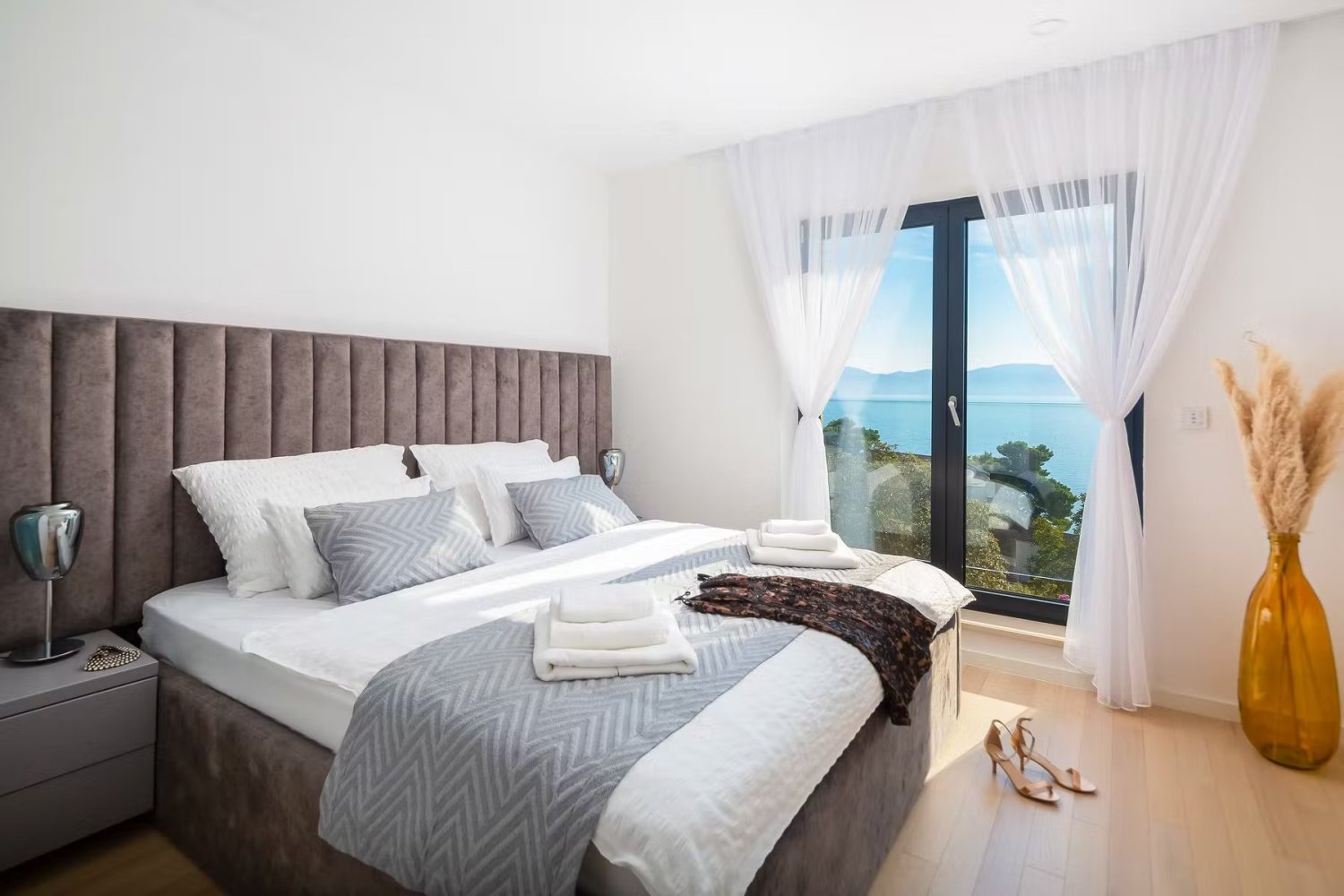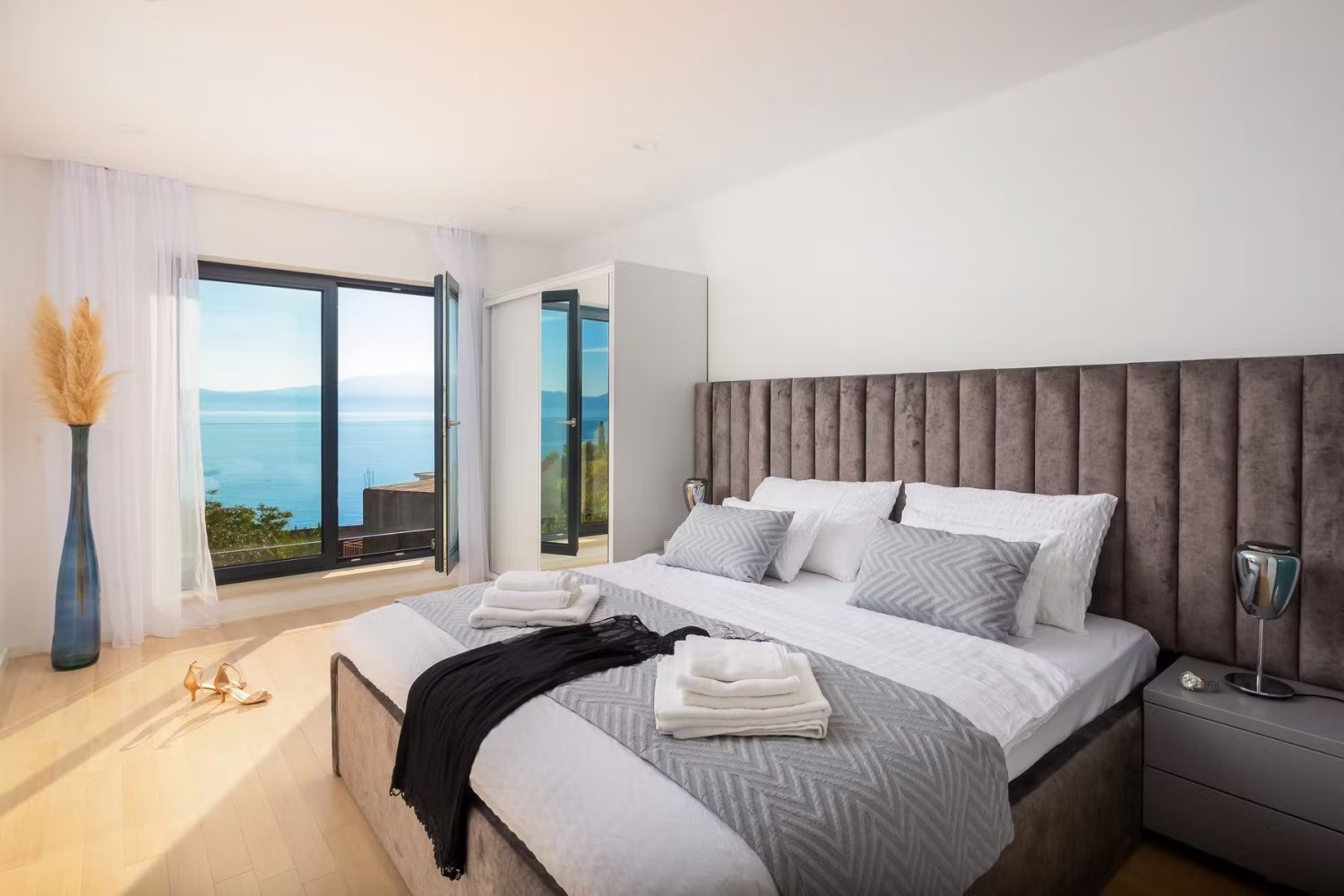Ez az elegáns kétszintes villa egy földszinti, kényelmes nappalival és teljesen felszerelt konyhával és étkezővel, valamint egy felső emeletből áll, három hálószobával, saját fürdőszobával, amelyek magas színvonalon vannak felszerelve. Minden hálószoba inspiráló kilátást nyújt a tengerre, amely nem hagy közömbösnek. A belső teret gondosan, minden részletre nagy gonddal díszítik, és első osztályú felszereléssel büszkélkedhetnek, amely kompromisszumok nélküli kényelmet garantál.