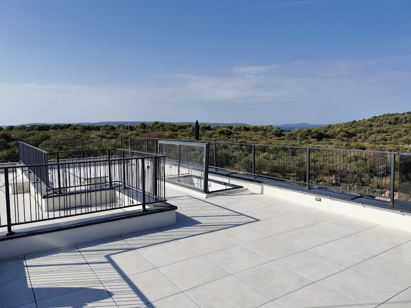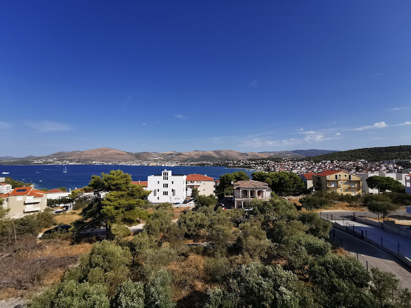 Az ingatlan az UNESCO által védett Trogir városától, mindössze 3,5 km-re, a repülőtértől 9,5 km-re, Splittől 25 km-re, a strandig 350 m-re, és egy zsákutca végén található, amely garantálja a békét és a magánéletet.