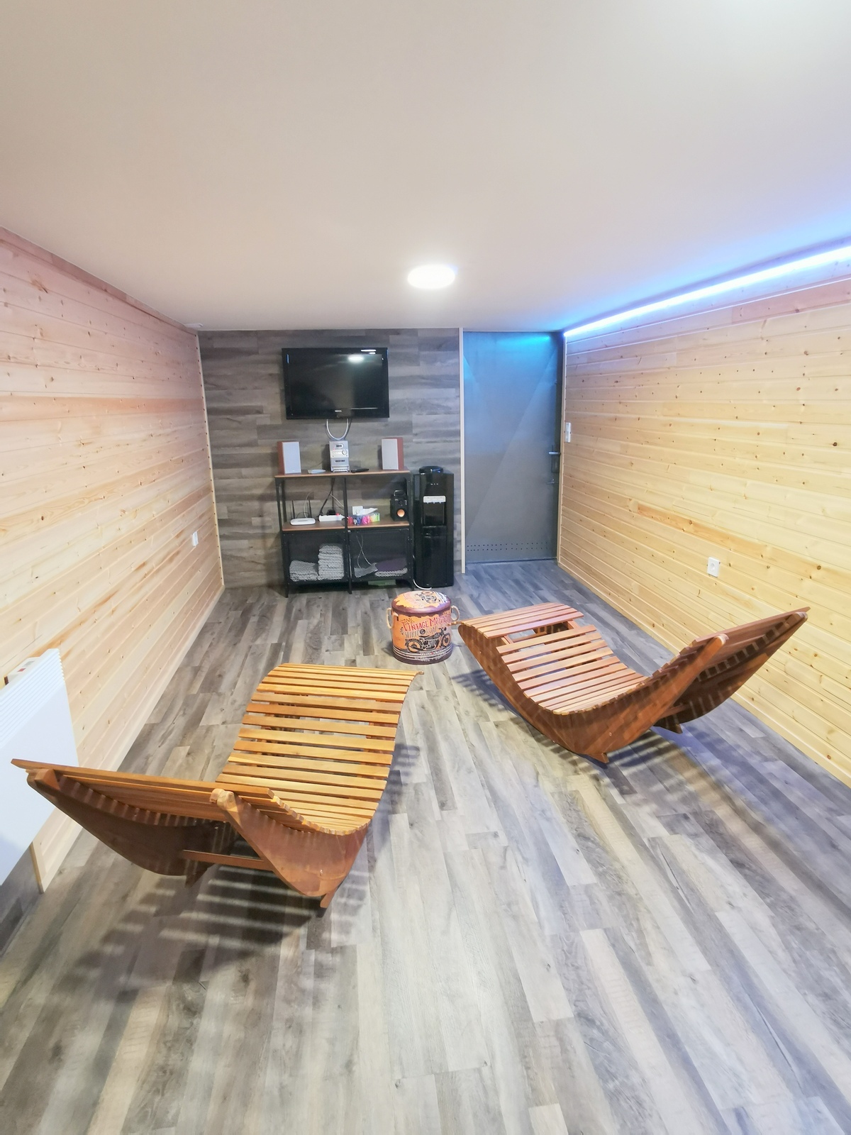 - A pince szinten két helység van. Egy SPA pihenő került kialakításra szaunával és egy játszószobával, ahol felnőtt és gyerek egyaránt kikapcsolódhat.