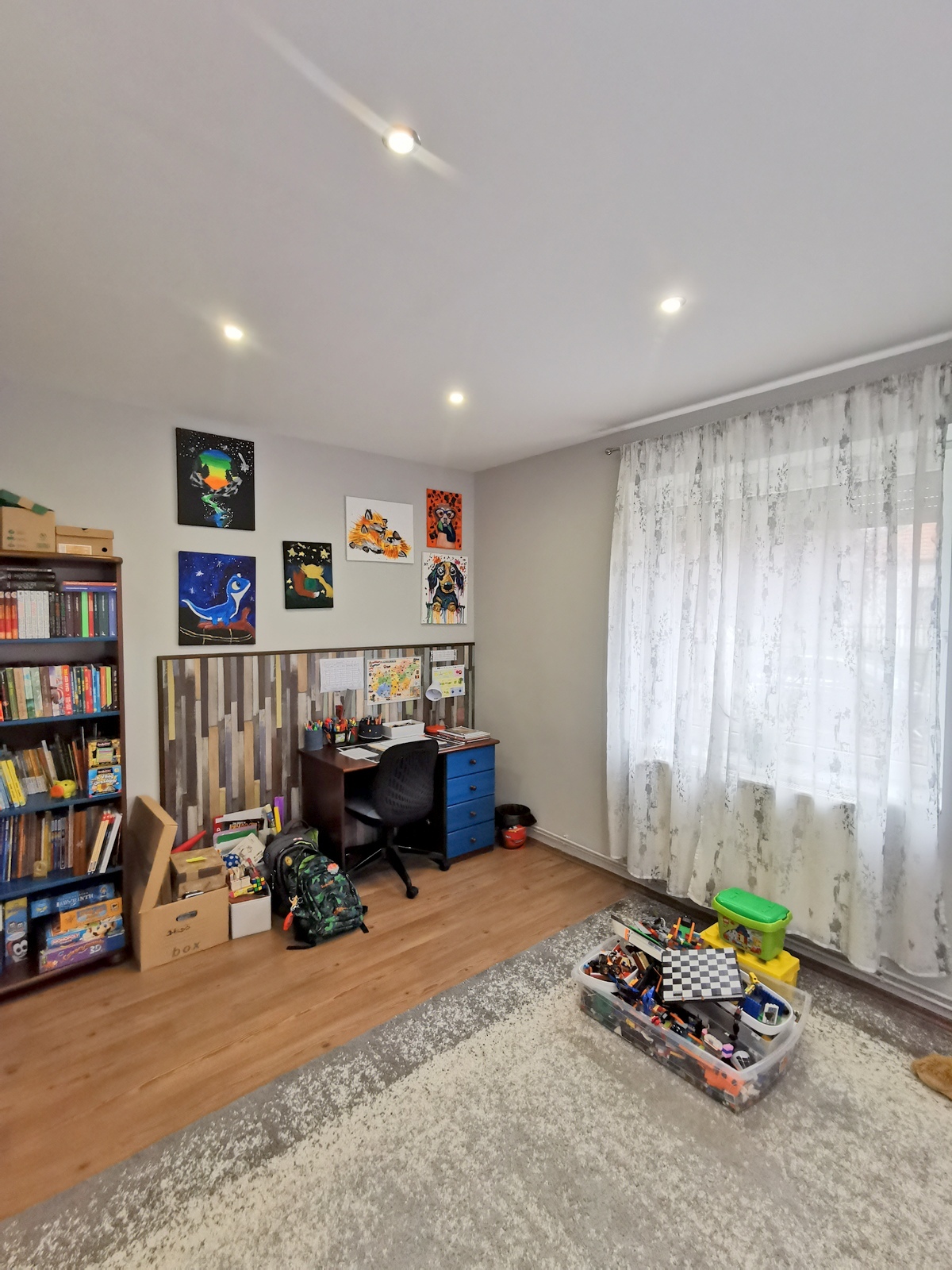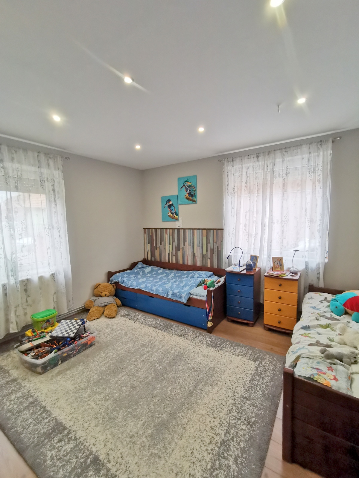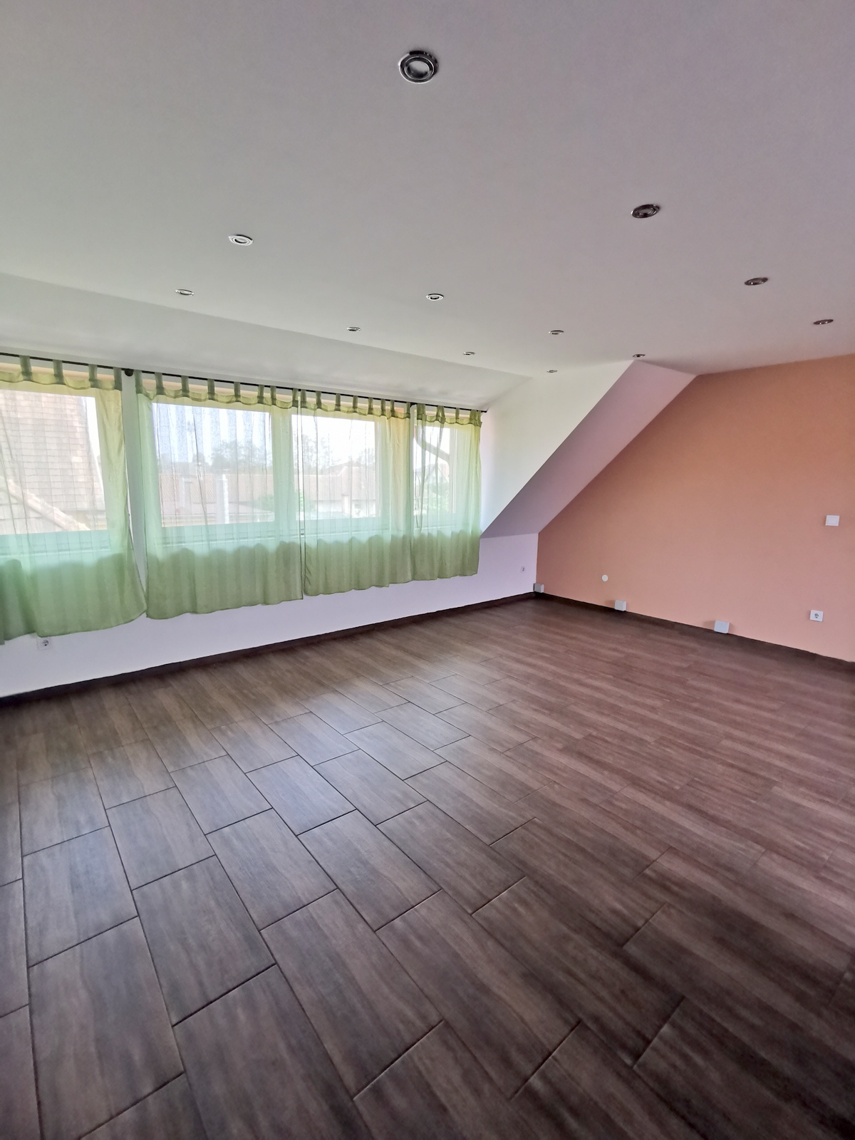- A tetőtéri szint kis átalakítással külön bejáratúvá is tehető. Nettó 80 m2. területű, ahol egy amerikai konyhás, étkezős nappali, két nagy méretű szoba, és egy fürdőszoba lett kialakítva. A szobák száma építészeti kialakítás alapján akár duplájára is növelhető.
