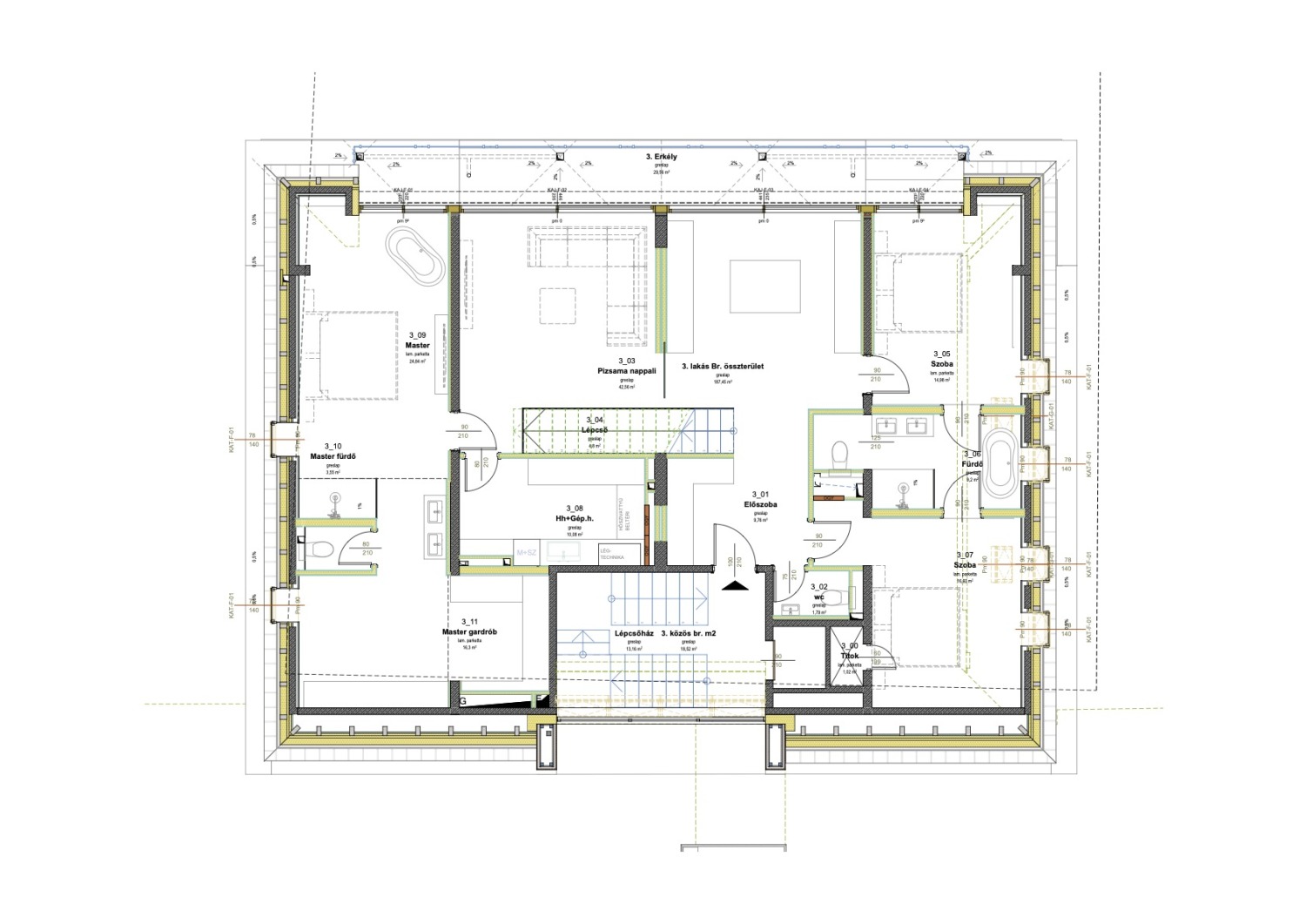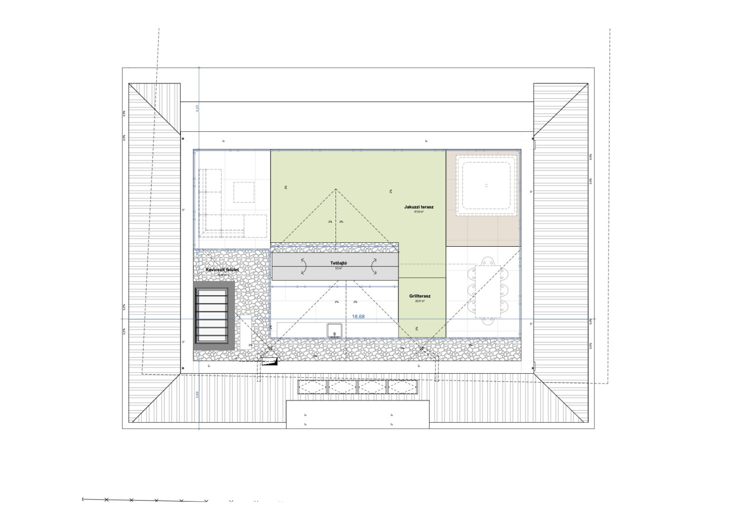 Az alábbi ingatlan 370 m2, amelyből a nettó 287 m2 lakóterület, mindezt 128 m2 kizárólagos használatú panorámás zöld tetőkert tesz teljessé.