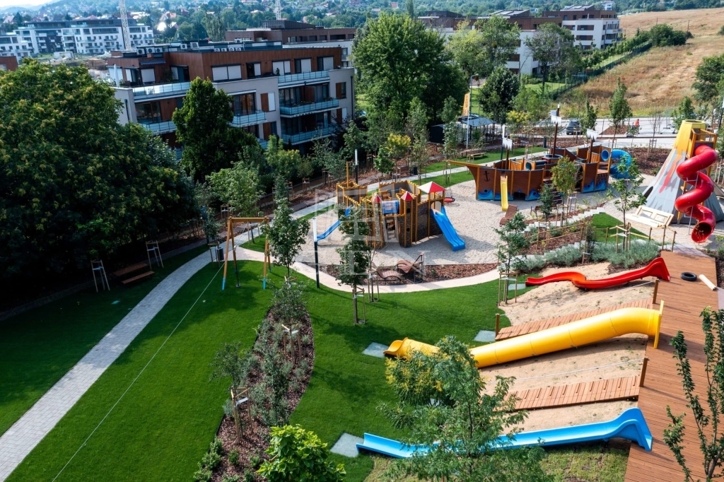 Rupphegy felőli zöld domboldal a telkek teljes beépítettsége után is kellemes, nyugodt, természet közeli környezettel várja az odaköltözőket.