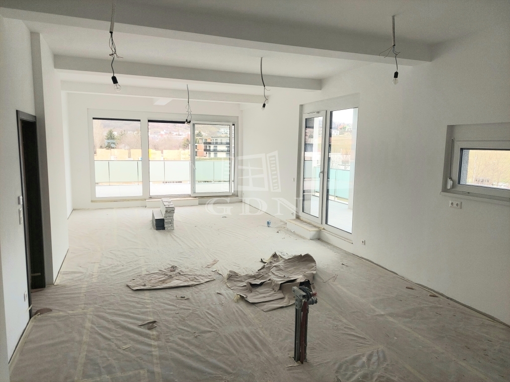 A ’D’ épület legfelső emeletén kínáljuk eladásra ezt az 136 m2-es, egyedi kialakításokkal gazdagított, a hegyekre panorámás, nappali + 3 hálószobás PENTHOUSE lakást. A sok egyedi, a mai kor igényeinek megfelelő kialakítás mellett az ingatlan igazi különlegessége a 60 m2-ES, PANORÁMÁS TERASZ. Az alapból tágas terekkel rendelkező lakás 310 cm-es belmagassága tovább növeli a komfortérzetünket. Hálószobái a ’nappali élettértől’ szeparálva kerültek kialakításra. A hatalmas üvegfelületek árnyékolását elektromos redőnyök biztosítják.