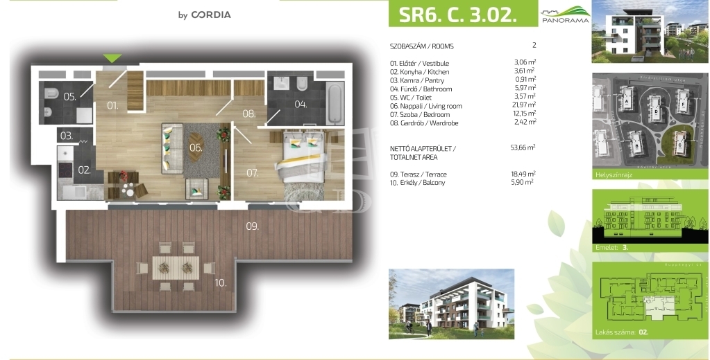 A prémium kategóriájú 6. ütemben megvalósításra kerülő SASAD RESORT PANORÁMA by Cordia lakópark 2 épületből és 5 felépítményből álló, 136 lakásos fejlesztés.