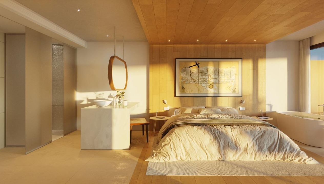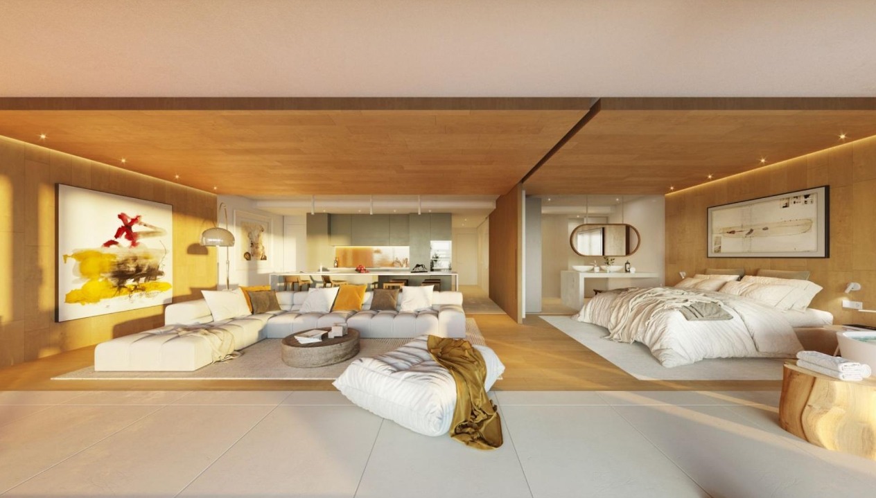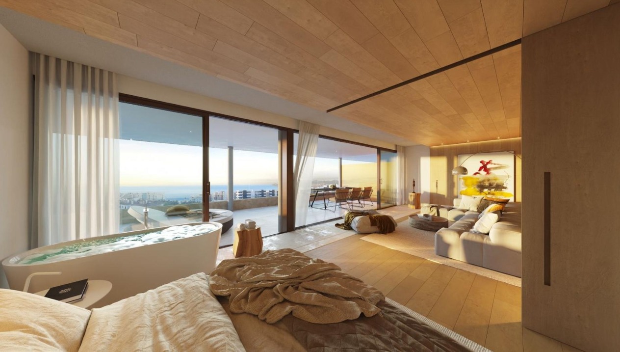 Ebben a fejlesztésben az ingatlanok 90 m2-esek, 2 hálószobásak 2 fürdőszobával és tökéletesen helyezkednek el a tengerpart és a hegyek között.