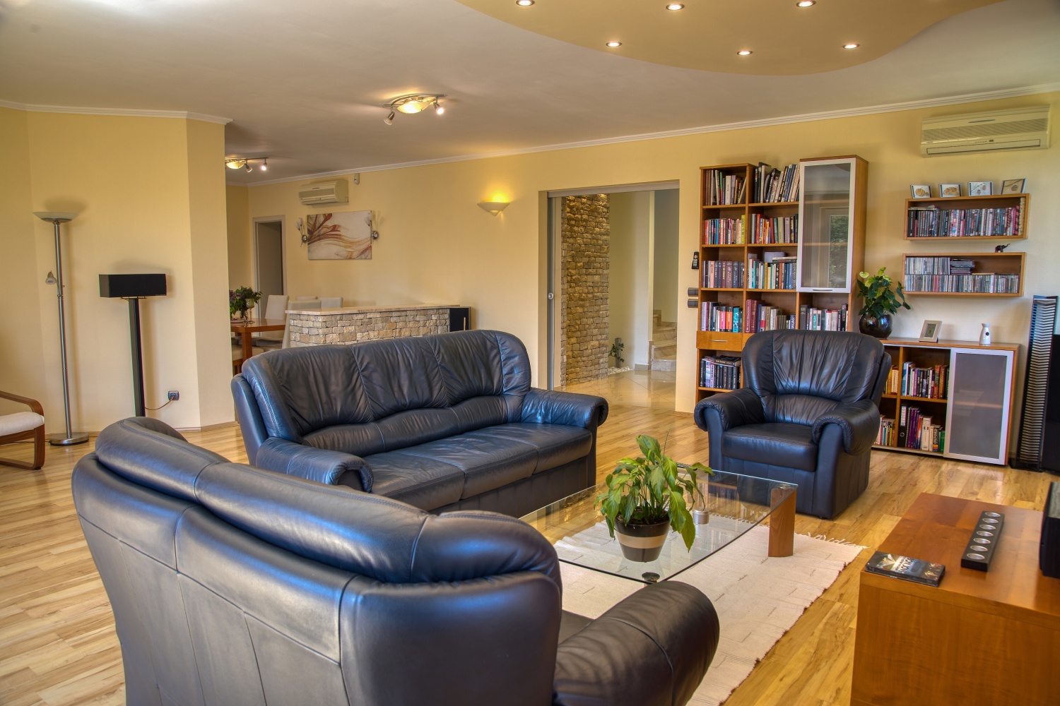 A családi háznak egyedi fűtését és melegvíz ellátását számítógép irányítja, és padlófűtéssel biztosítja a kiemelkedő komfortérzetet. Minden helyiség klimatizált.
