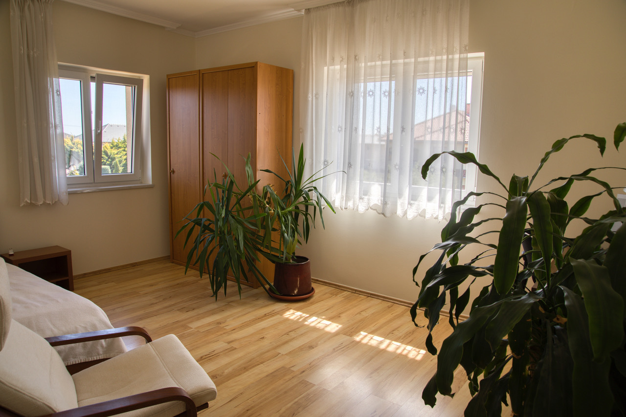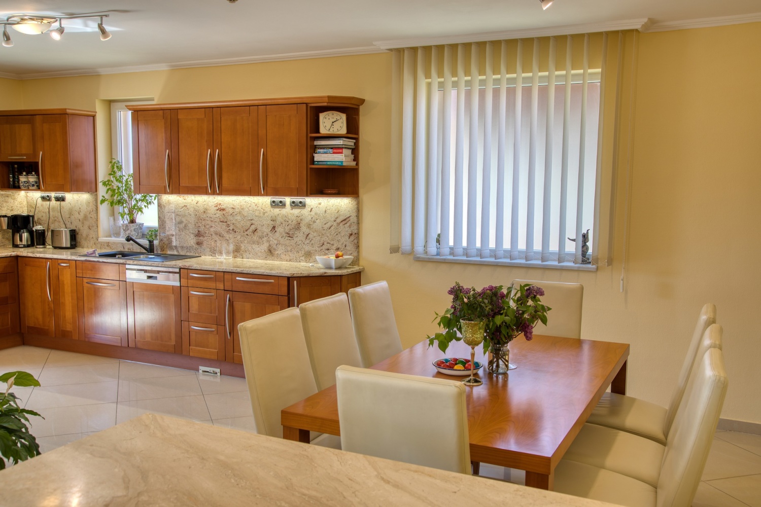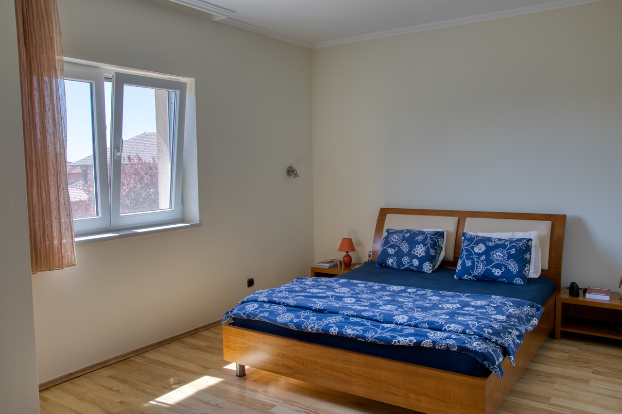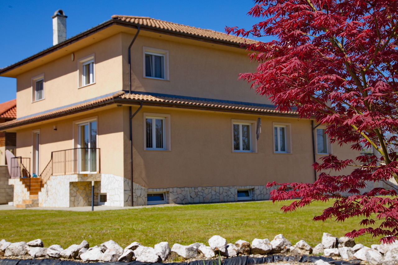 Ha nem elegenő a napenergia a ház energiaigényéhez, akkor kapcsol csak be a kondenzációs kazán. A ház magas minőségű hő és hangszigetelt műanyag nyílászárókkal és motoros alumínium redőnyönnyel lett ellátva.A hangulatos kandallós nappaliból nyílik az étkező és konyha, közvetlen kapcsolattal a kerthez. A konyha egyedi, AEG gépesítéssel van felszerelve ami az árban benne van és a többi bútor pedig megegyezés tárgya.