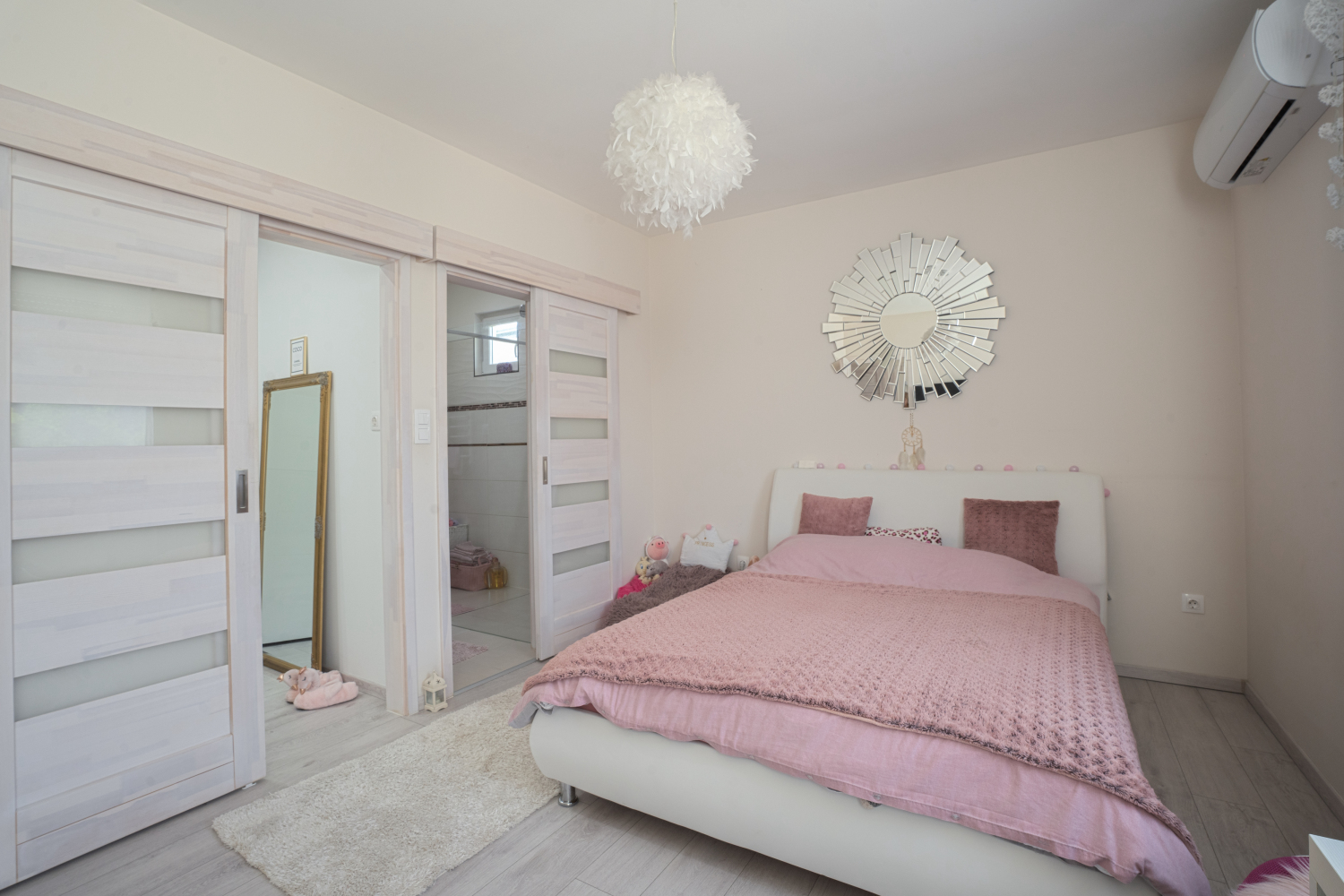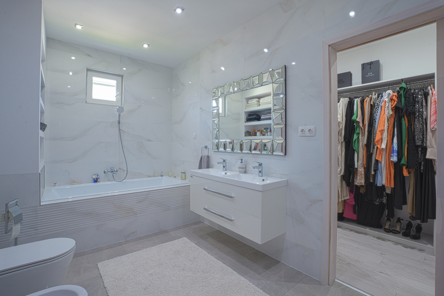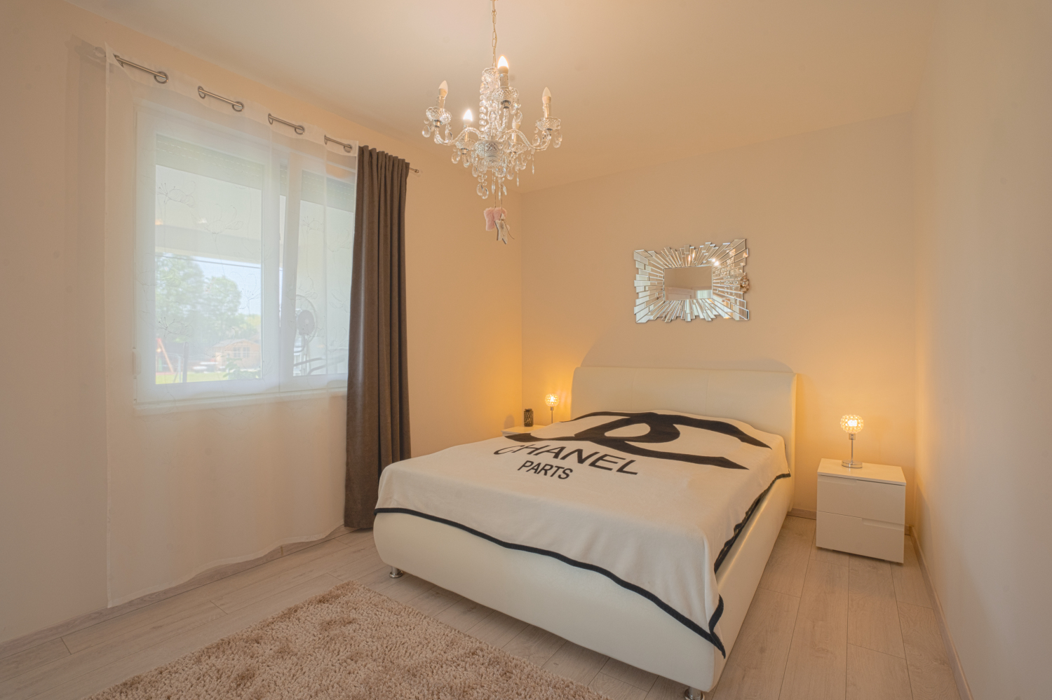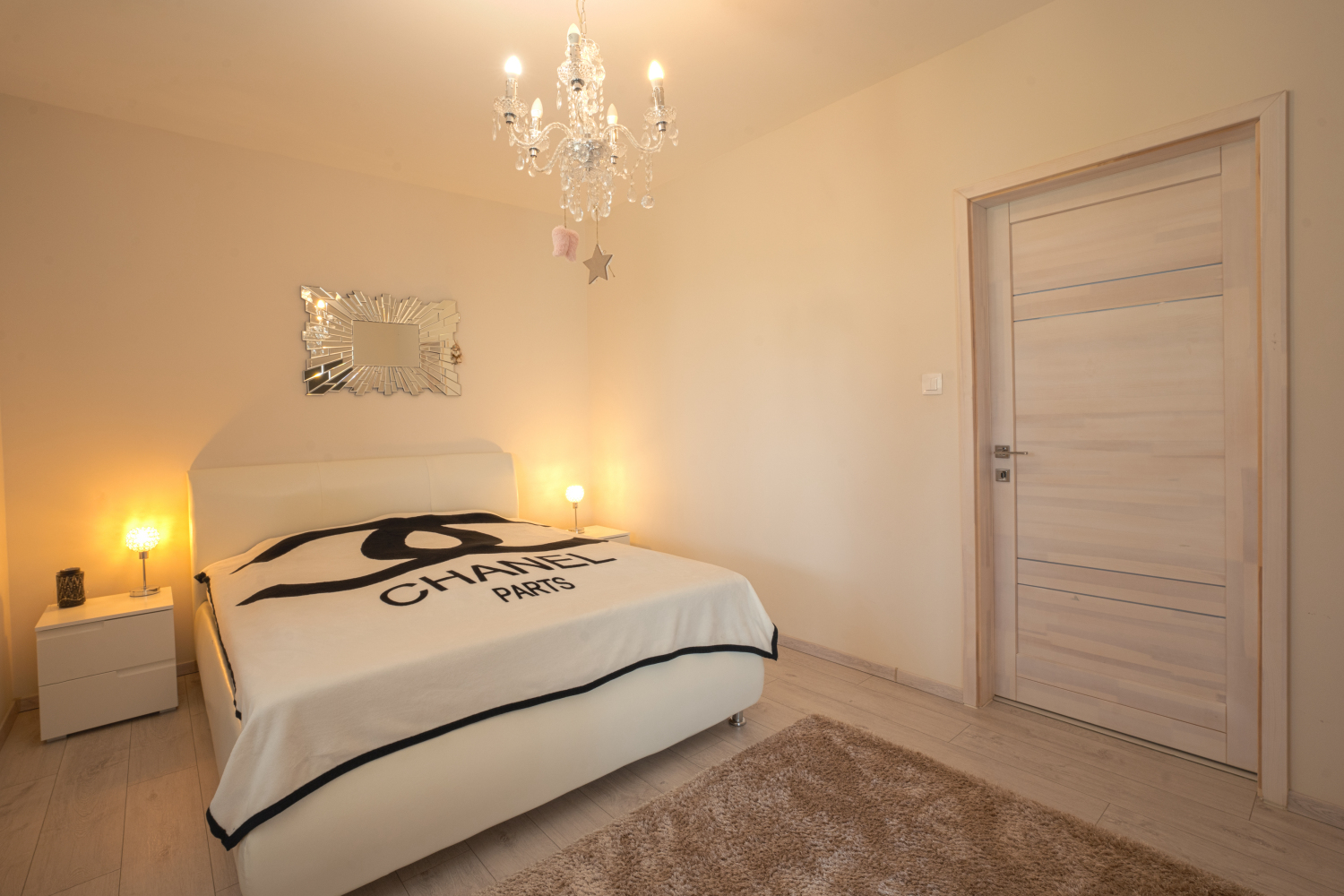 Az ingatlanban egy amerikai konyhás-étkezős nappali található 45 nm-en, két hálószoba, melyekből közvetlenül nyílik egy-egy fürdőszoba és gardróbszoba, megőrizve mindkét lakosztály privát szféráját.