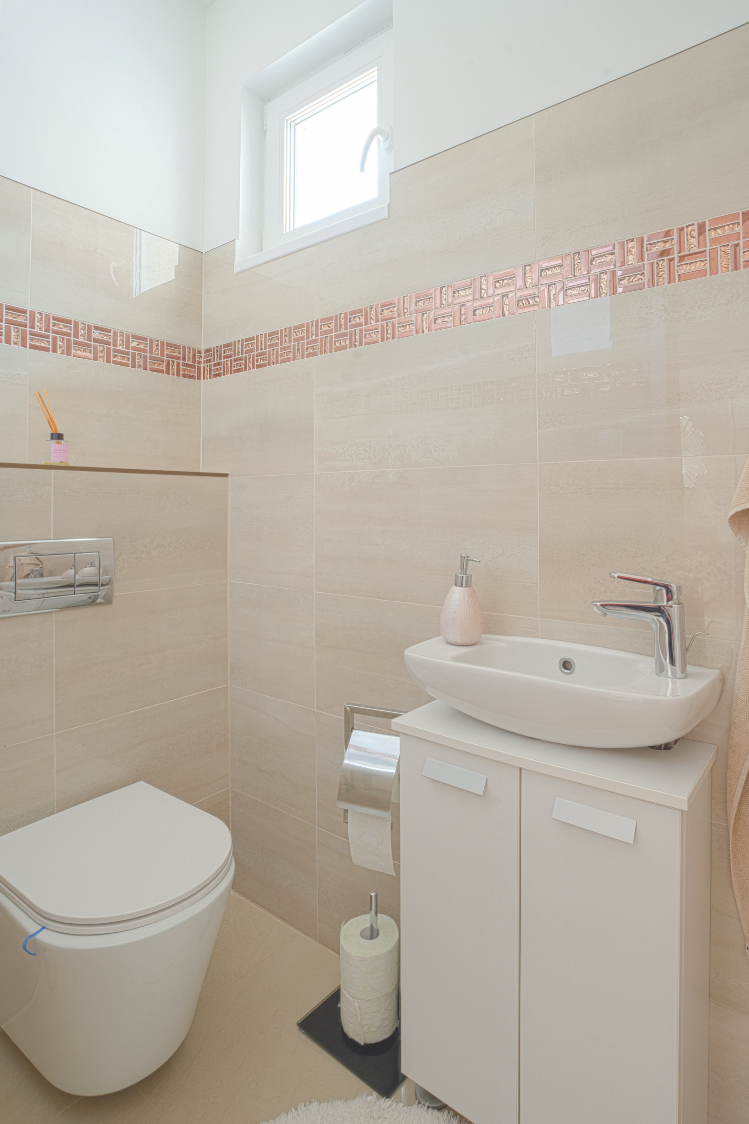 Ezenkívül megtalálható még egy háztartási helység szintén gardrób kialakítással, vendég mosdó és kamra is.