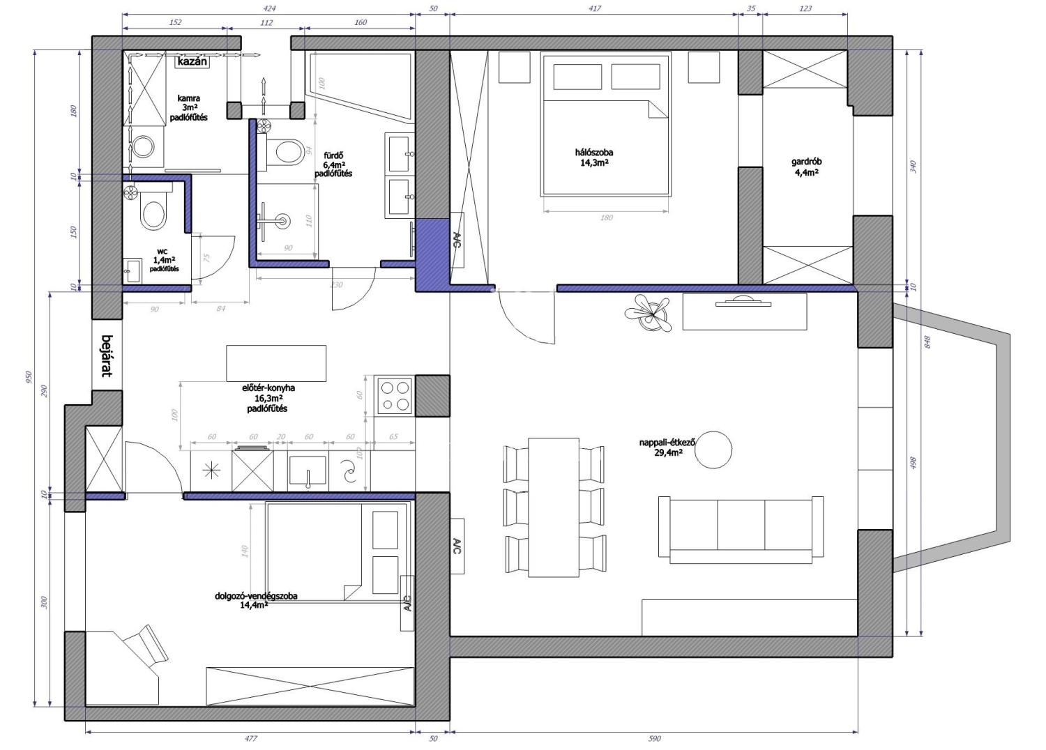 található a 4. emeleten. Távvezérléssel is működő, hűtő-fűtő klíma mindegyik