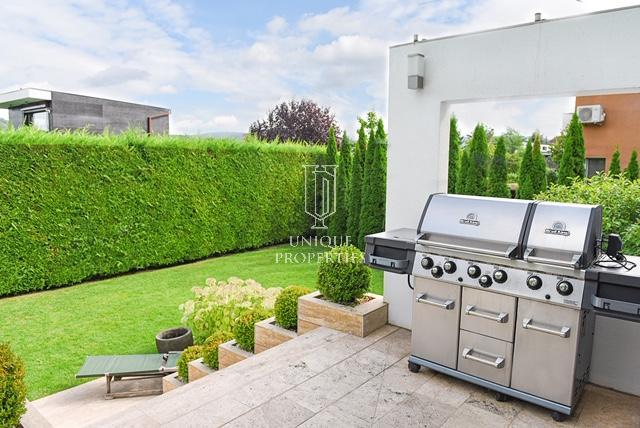 napsütötte nappaliból a kerti grillezővel felszerelt teraszra juthatunk. A kültéri