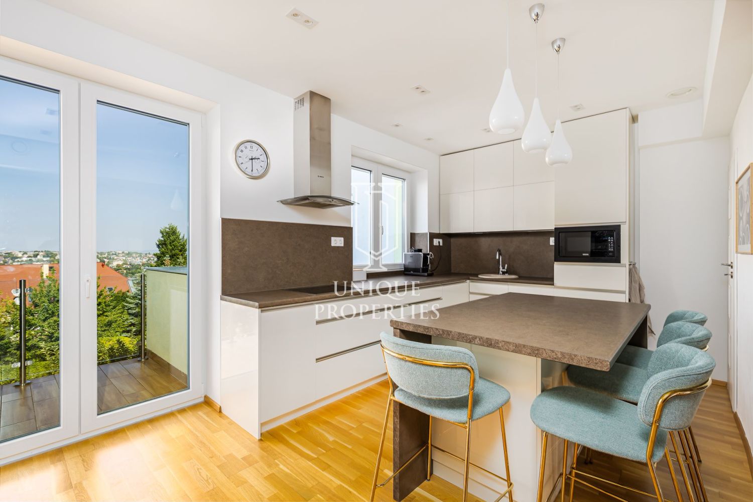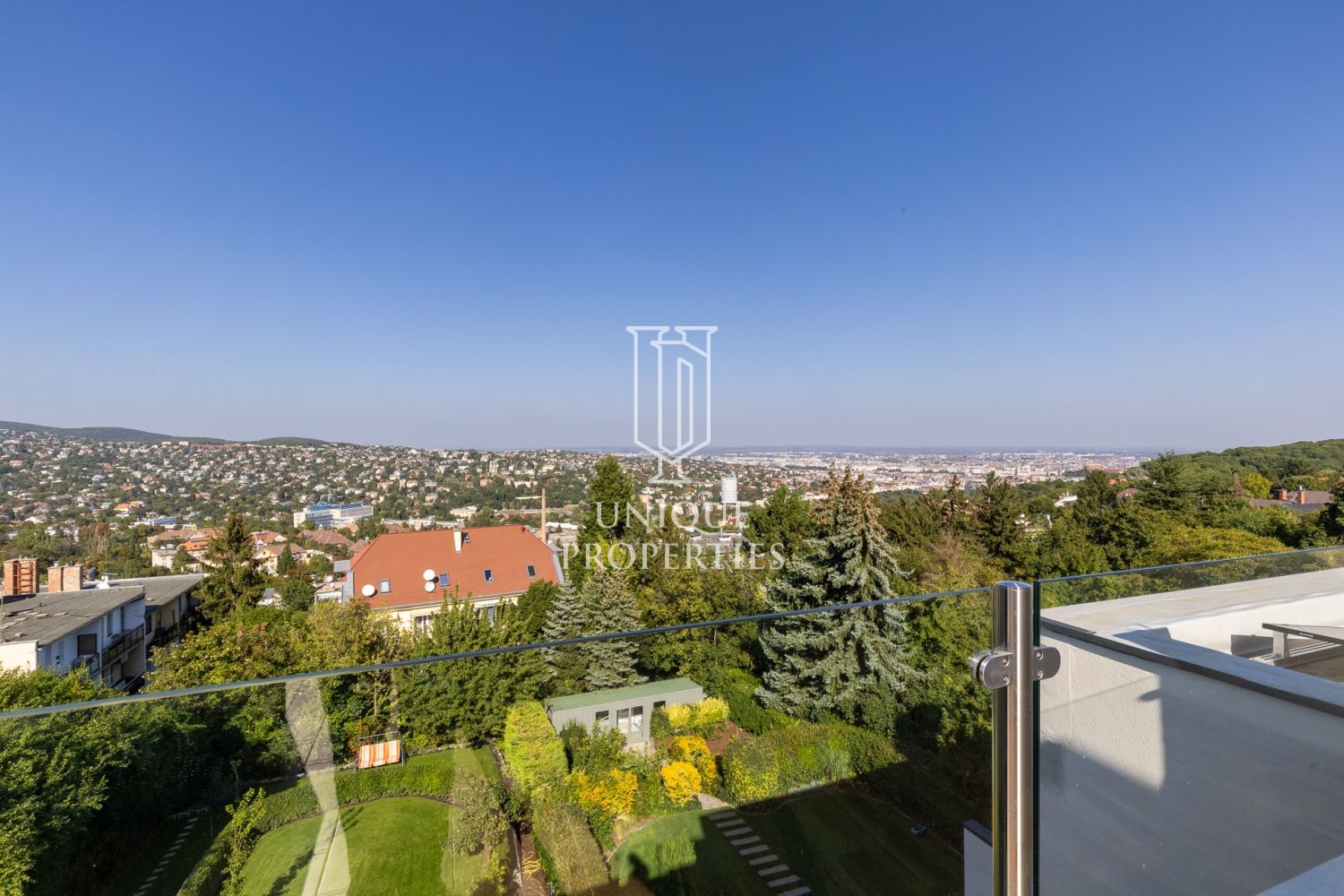 A 12.kerületi Istenhegy tetején, dunai panorámás exkluzív otthon eladó. A három szintes, korszerű ikerház lakótere 210 nm + teraszok. A 39 nm-es tetőteraszról csodás körpanoráma tárul elénk a Parlamentre, a budai hegyekre.