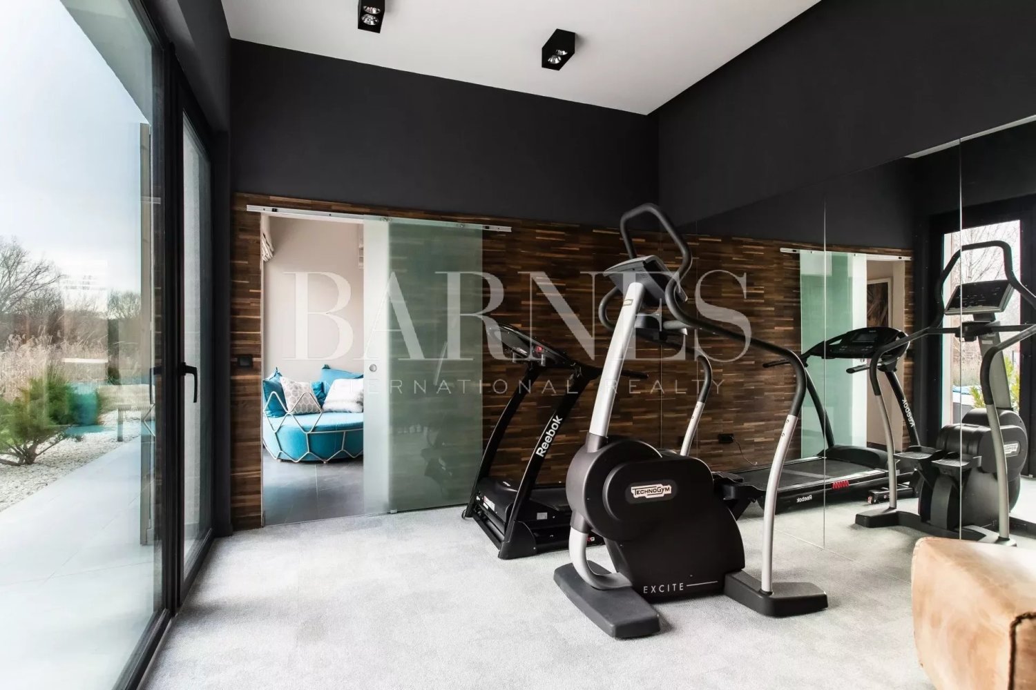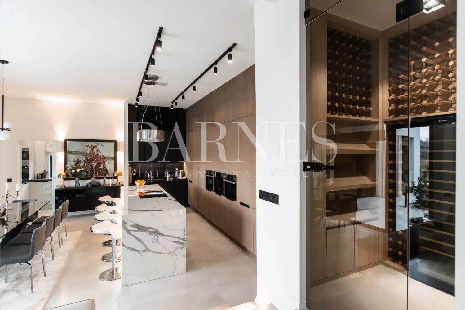 További extrák: Magas minőségű gépekkel felszerelt konyha,technistone pultok, elektromos függönyök és redőnyök, riasztórendszer, kamerarendszer, minden szobában klíma, a fűtés hőszivattyúval történik.
