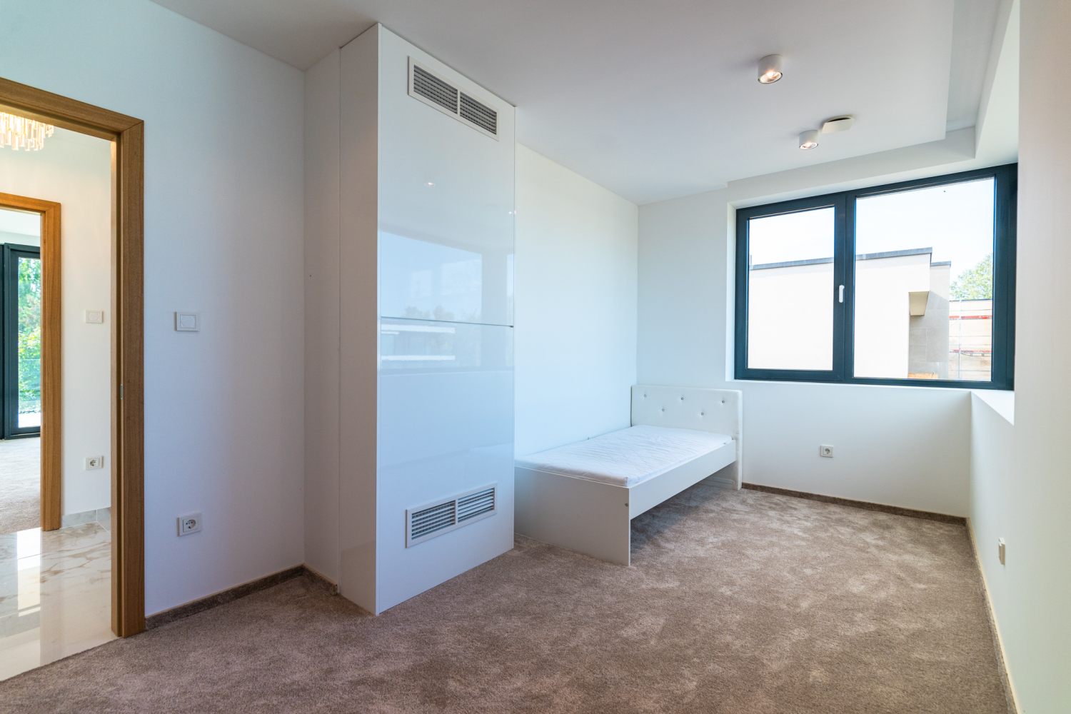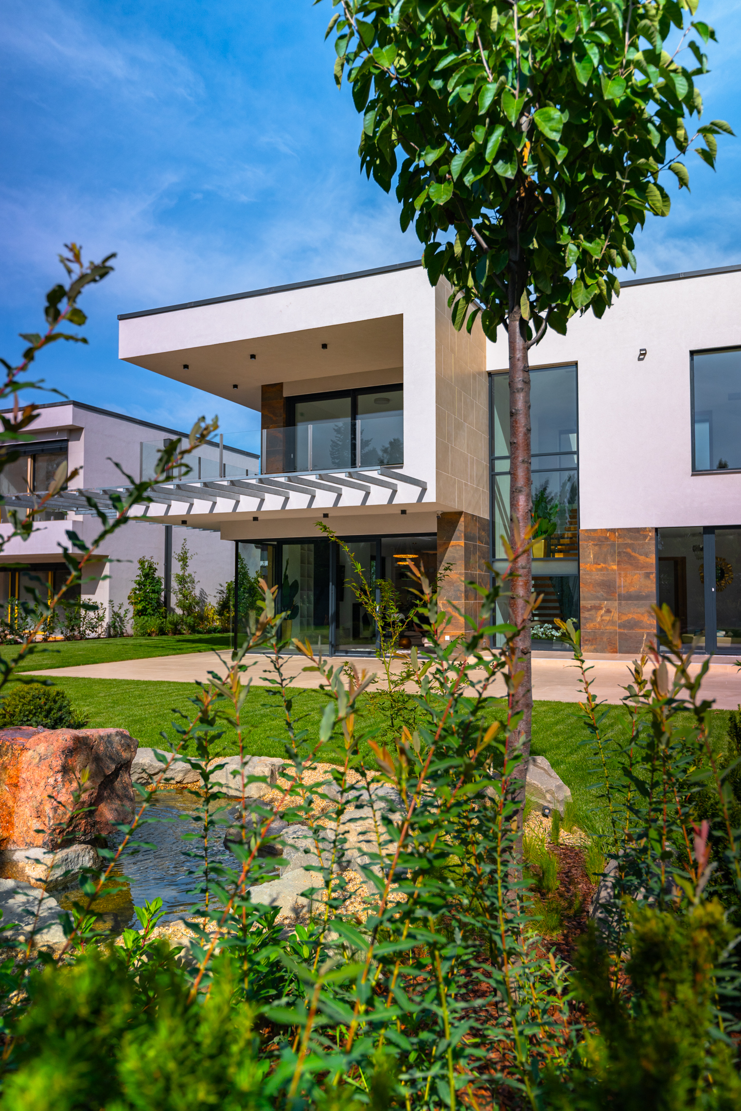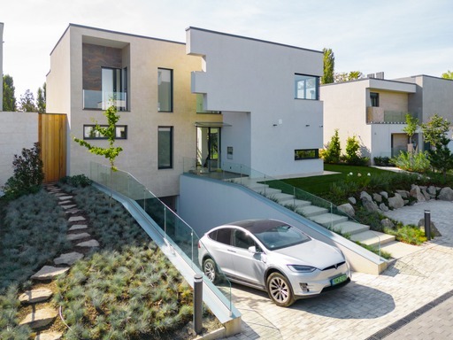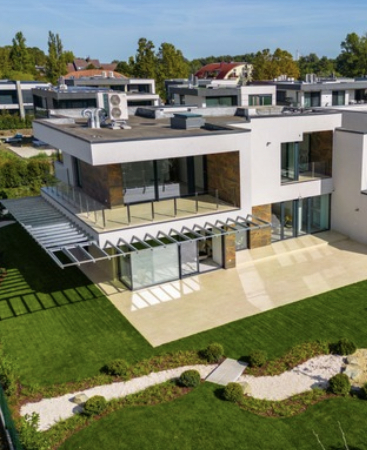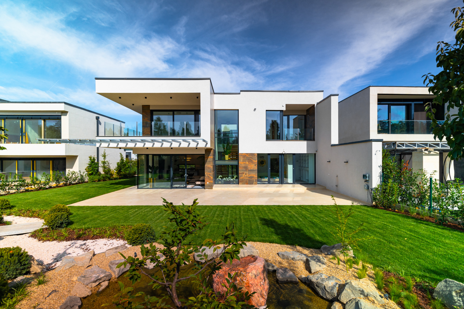 Biztonságos exclusive Duna-parti lakóparkban eladó új luxus villa, mely minden igényt kielégít.