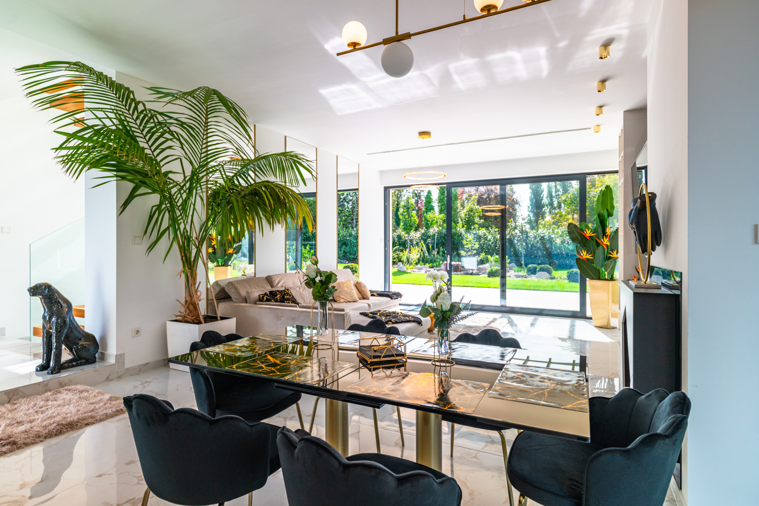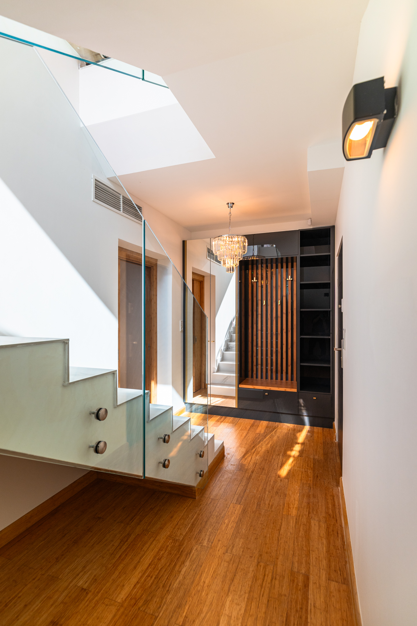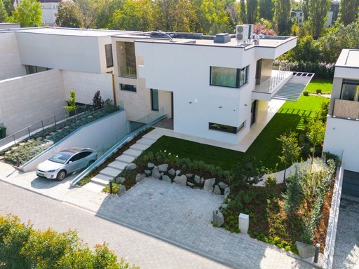 A villához a csodás előkerten keresztül jutunk el. A házban mindenhol olasz burkolatok vannak. Felső kategóriás konyhabútor, minden extrával felszerelve( pl borhűtő). Egyedi bútorokkal berendezve. Műszaki felszereltsége a legkorszerűbb technológiával van megoldva: Mitsubishi Zubadan hőszivattyú, mennyezet hűtés-fűtés, padlófűtés, fan coil hűtés-fűtés, teljes szellőztető és levegőztető rendszer, Loxone okosotthon rendszer, biokandalló, riasztó, kültéri kamerarendszer, 2 állásos fűtőtt garázs elektromos töltő kiállással. Egyedi tervezésű zen japán kert, igényes növényekkel, kerti tó automata feltöltő rendszerrel-csobogóval, automata öntőzőrendszerrel. Exclusive kert világítás.