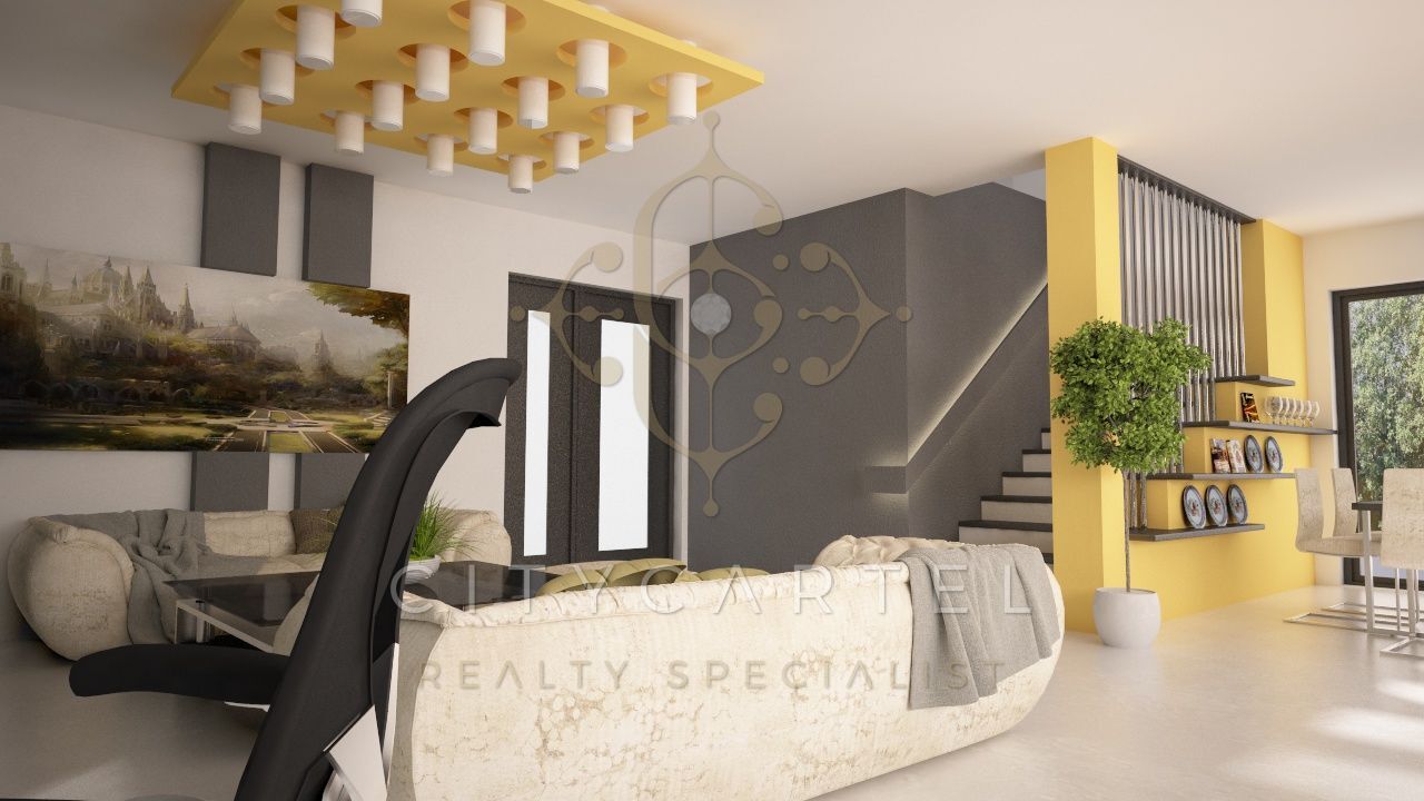 A ház elrendezése nagyon praktikus, nappali + 4 szobával rendelkezik, 2 fürdővel és garázzsal.