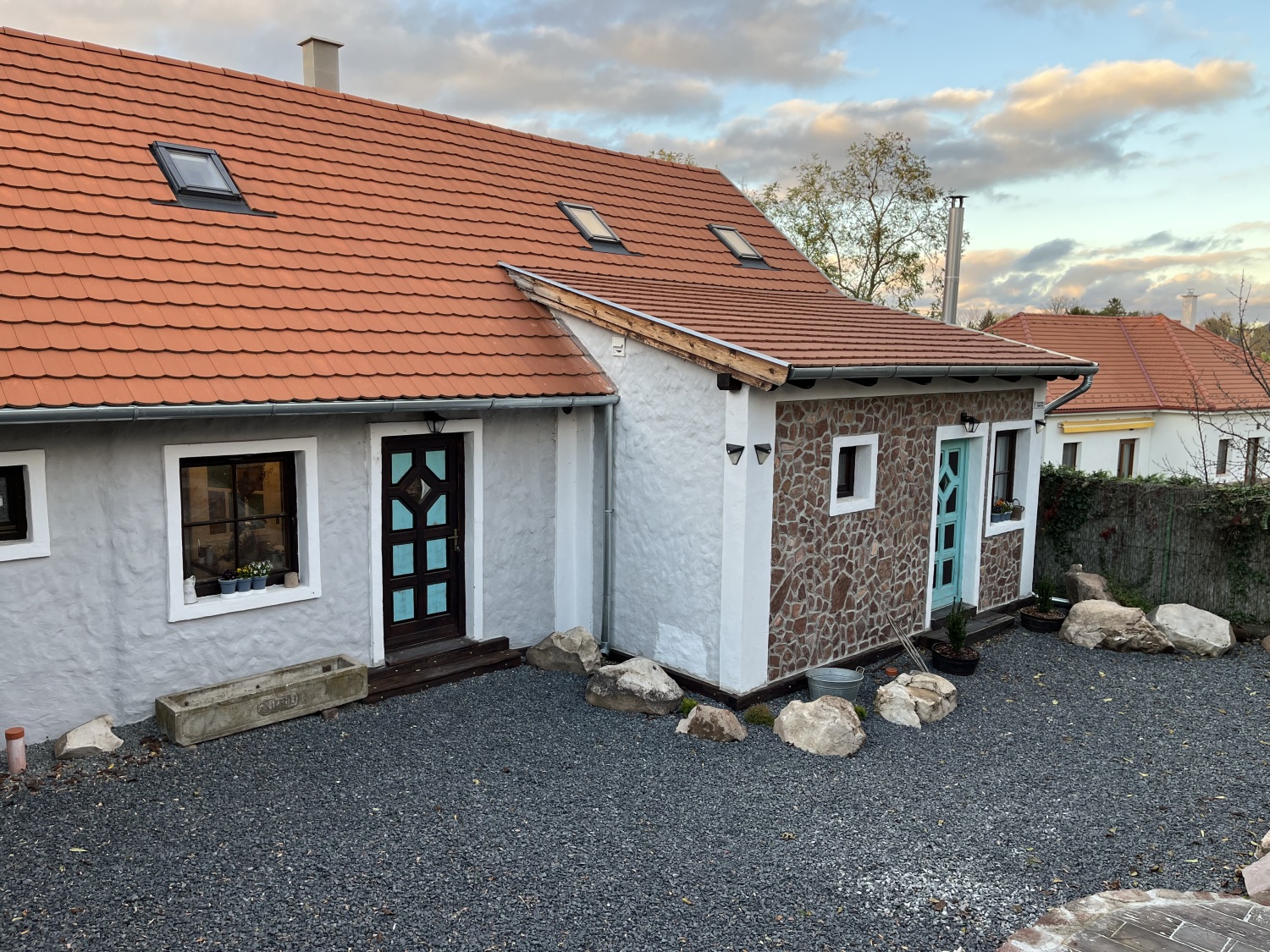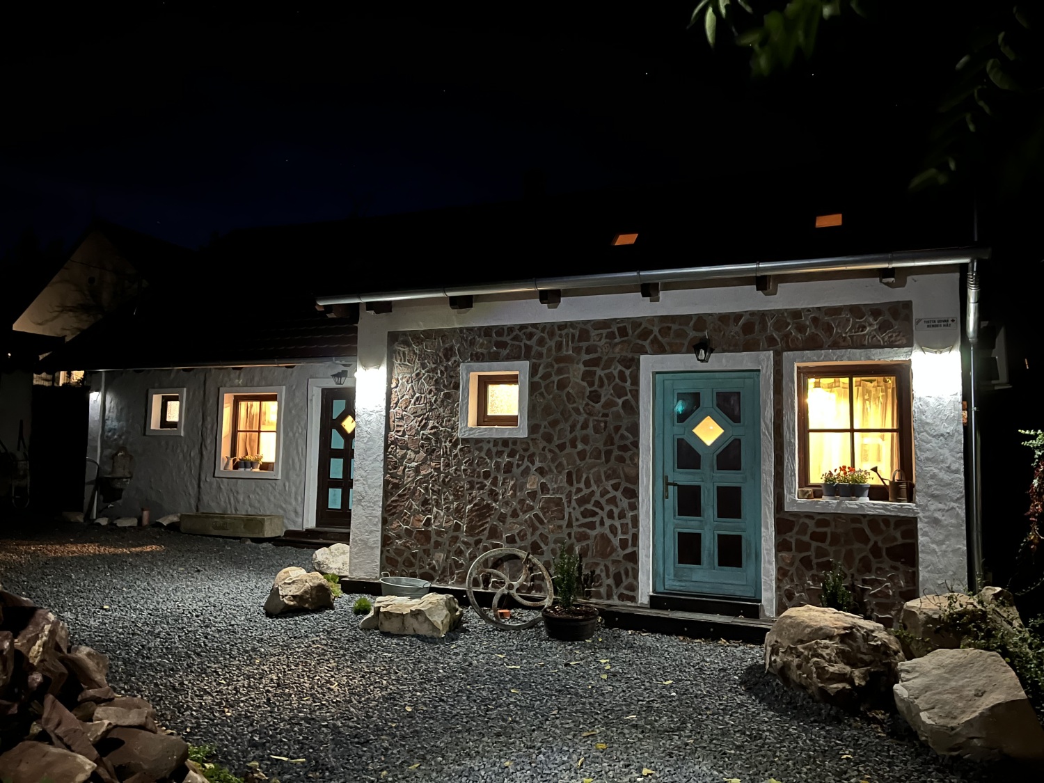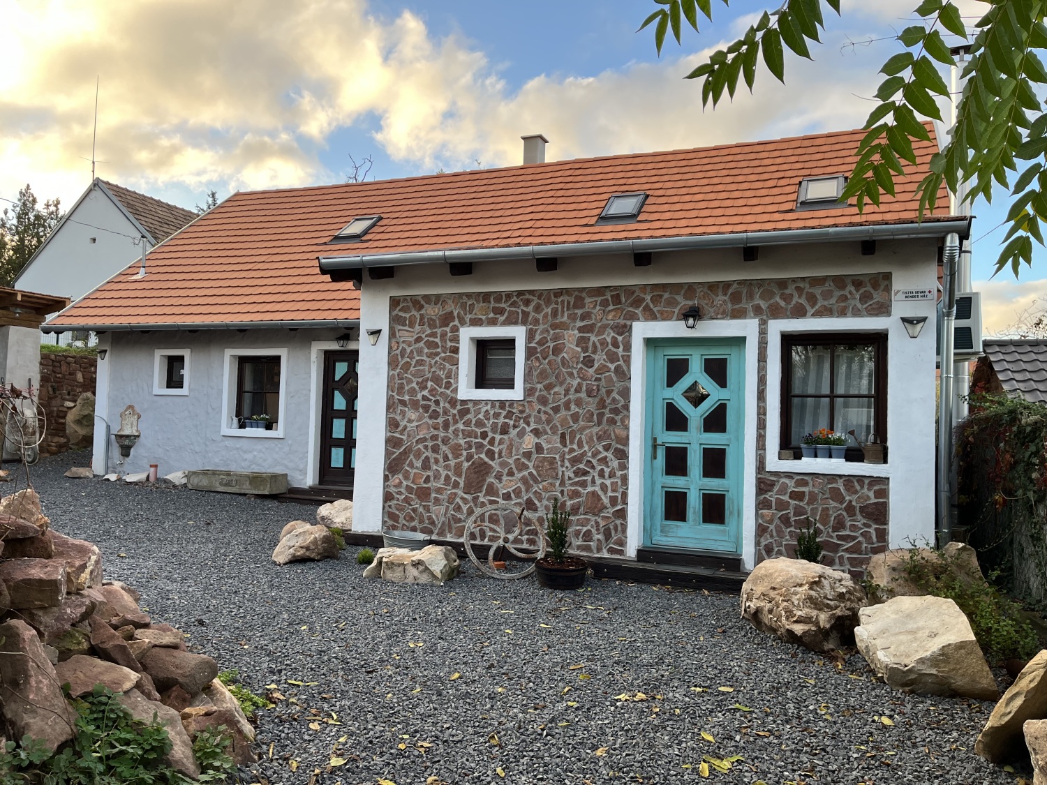 Két külön bejáratú egyenként kb 60 négyzetméteres,tetőtérbeépítéses lakrész lett kialakítva benne,amely szükség esetén a tetőtérben egybenyitható. A házban lakrészenként egy-egy konyha,egy-egy wc-vel ellátott fürdőszoba van.Az egyik lakrész alatt egy teljesen berendezett kőből épített,boltíves borospince található. A ház fűtése elektromosan( nobo panelekkel és inverteres klímákkal) valamint egy-egy szilárd tüzelésű kályhával lett megoldva. A tervezésnél 4-4 főre valamint 2-2 plusz főre lett kalkulálva a férőhelyek száma. A kertben két épített terasz,egy fedett tároló(kiülő) és egy kéregpince is van.