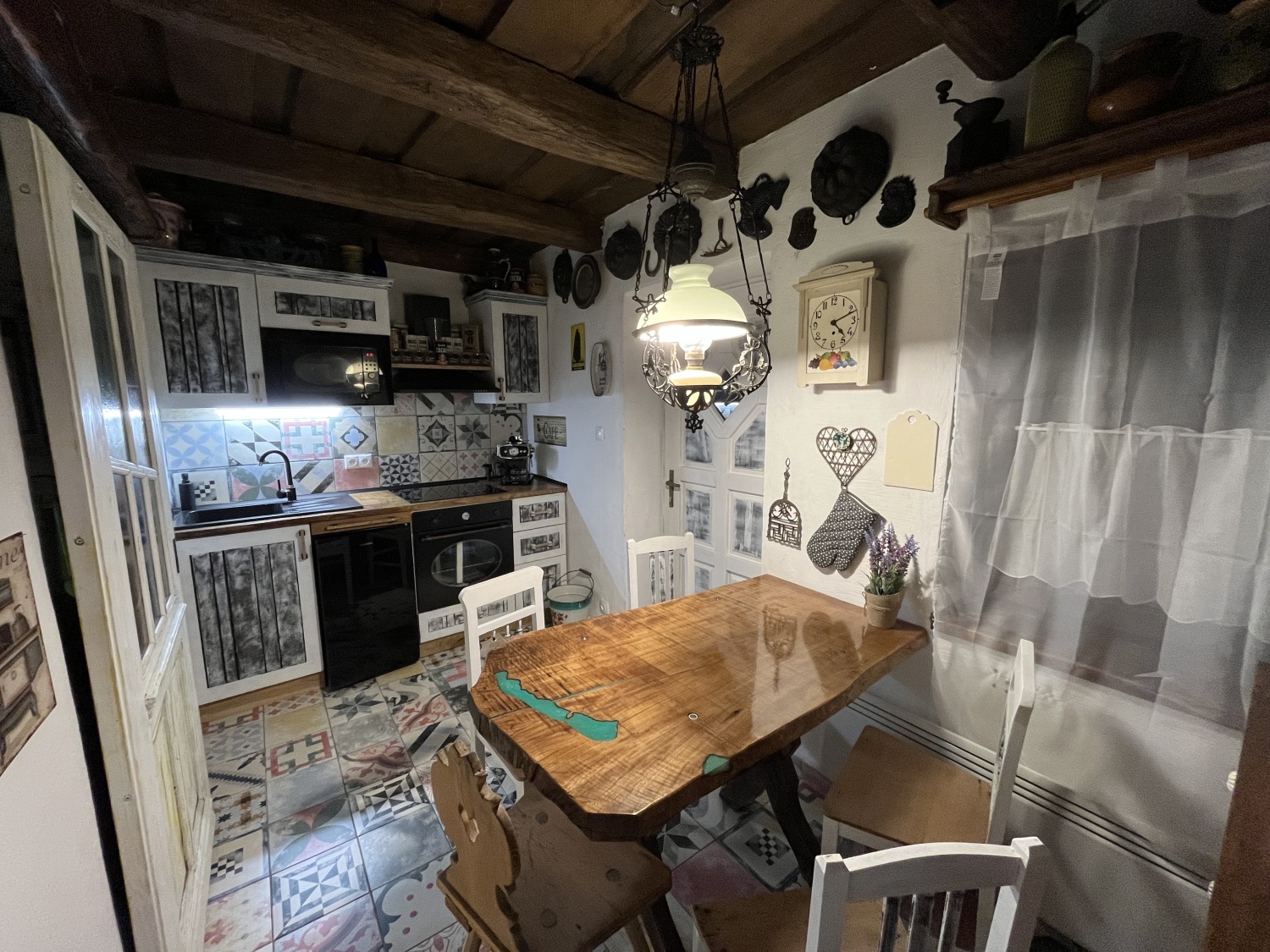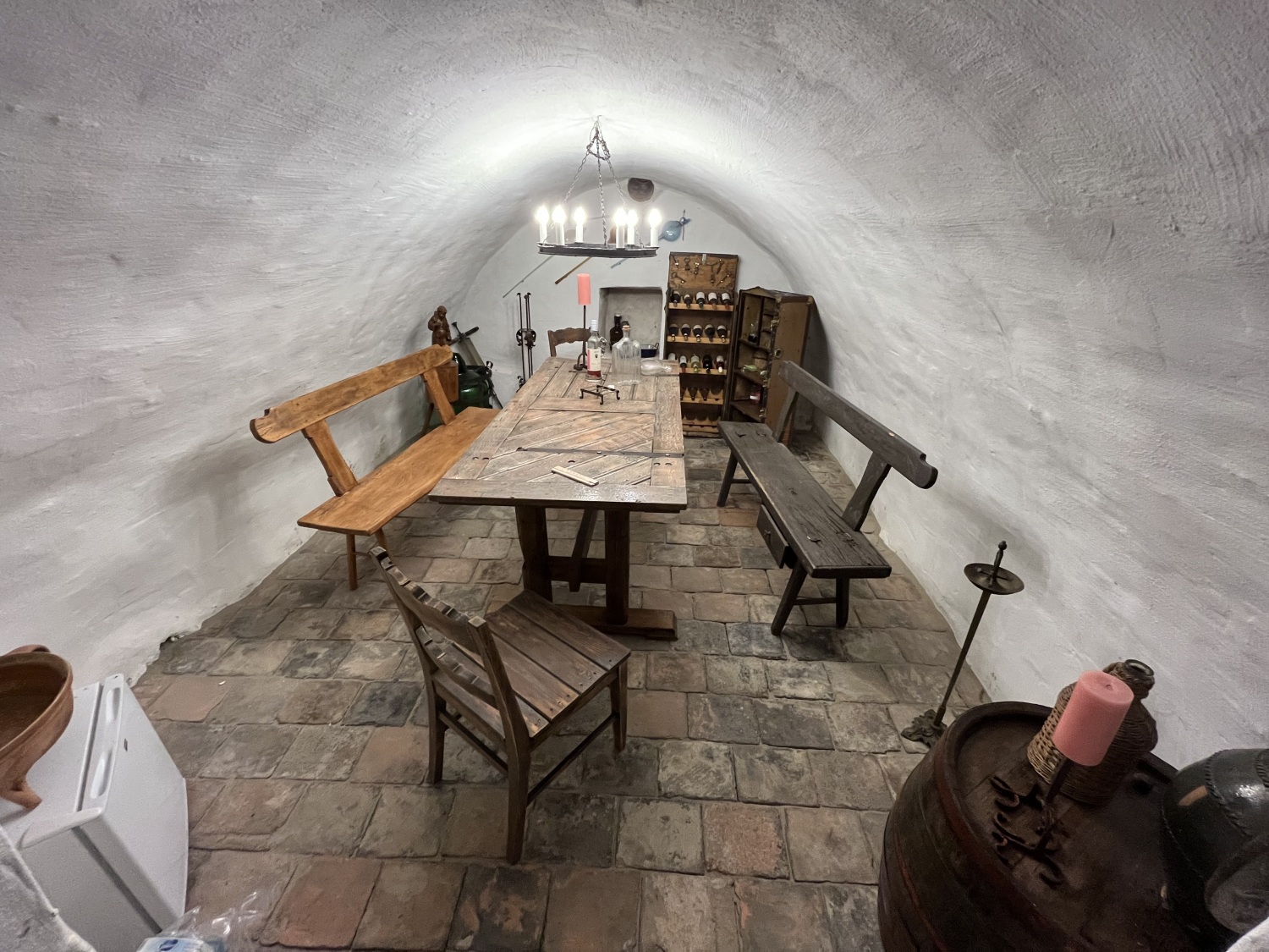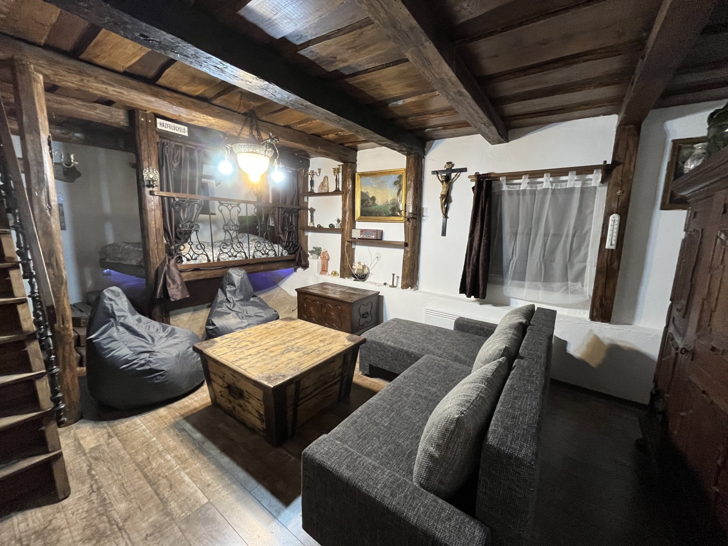 Két külön bejáratú egyenként kb 60 négyzetméteres,tetőtérbeépítéses lakrész lett kialakítva benne,amely szükség esetén a tetőtérben egybenyitható. A házban lakrészenként egy-egy konyha,egy-egy wc-vel ellátott fürdőszoba van.Az egyik lakrész alatt egy teljesen berendezett kőből épített,boltíves borospince található. A ház fűtése elektromosan( nobo panelekkel és inverteres klímákkal) valamint egy-egy szilárd tüzelésű kályhával lett megoldva. A tervezésnél 4-4 főre valamint 2-2 plusz főre lett kalkulálva a férőhelyek száma. A kertben két épített terasz,egy fedett tároló(kiülő) és egy kéregpince is van.