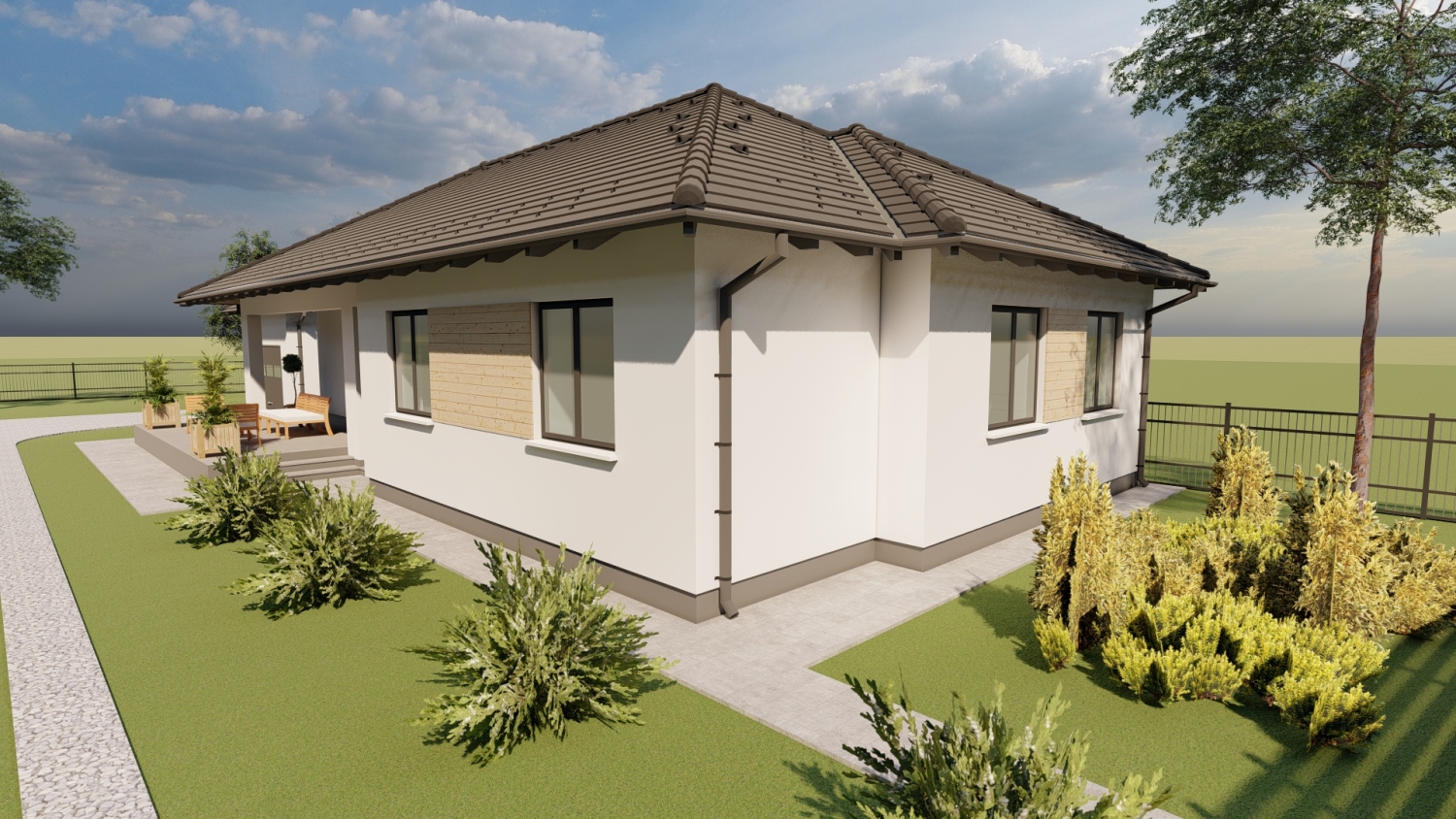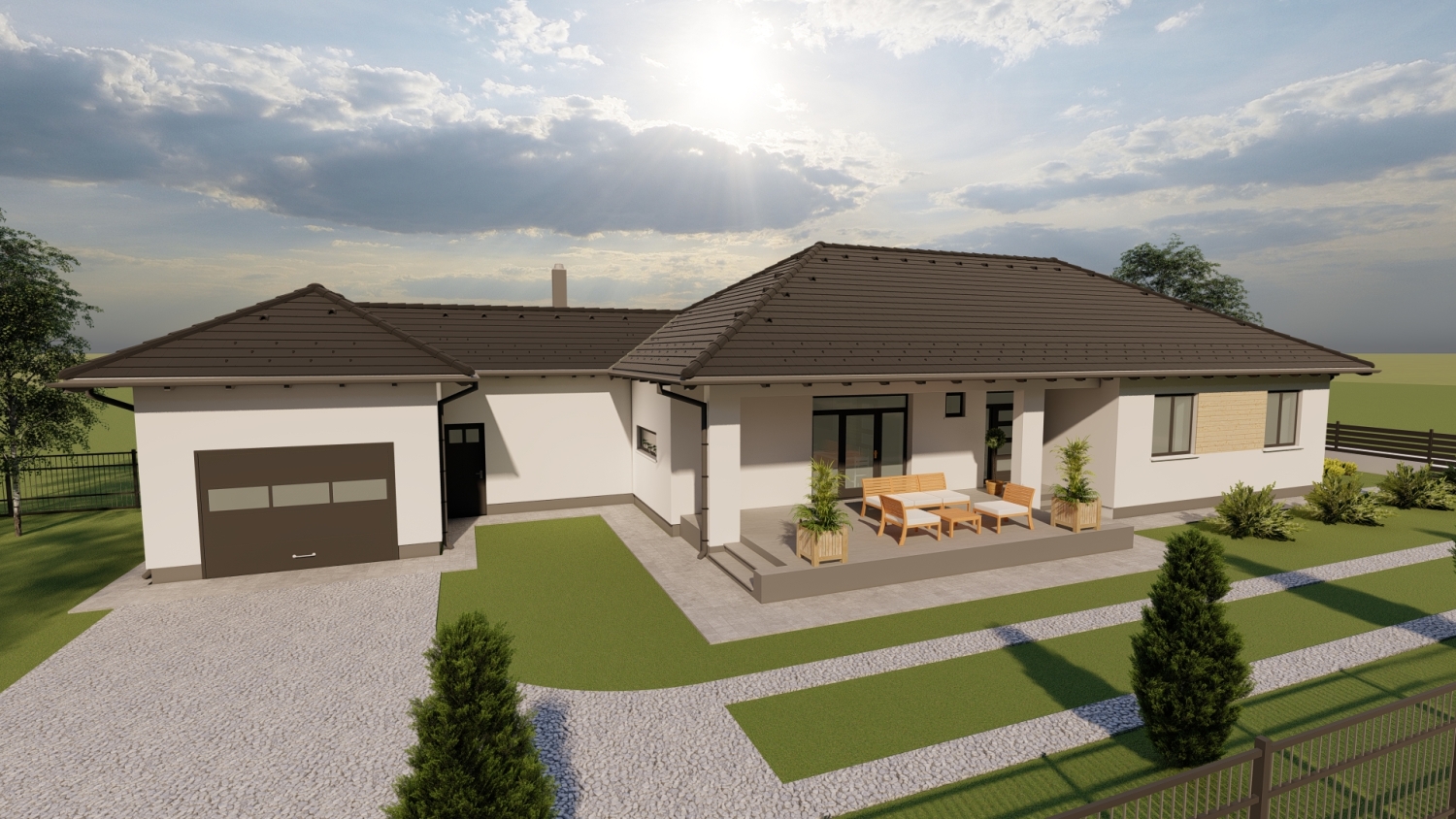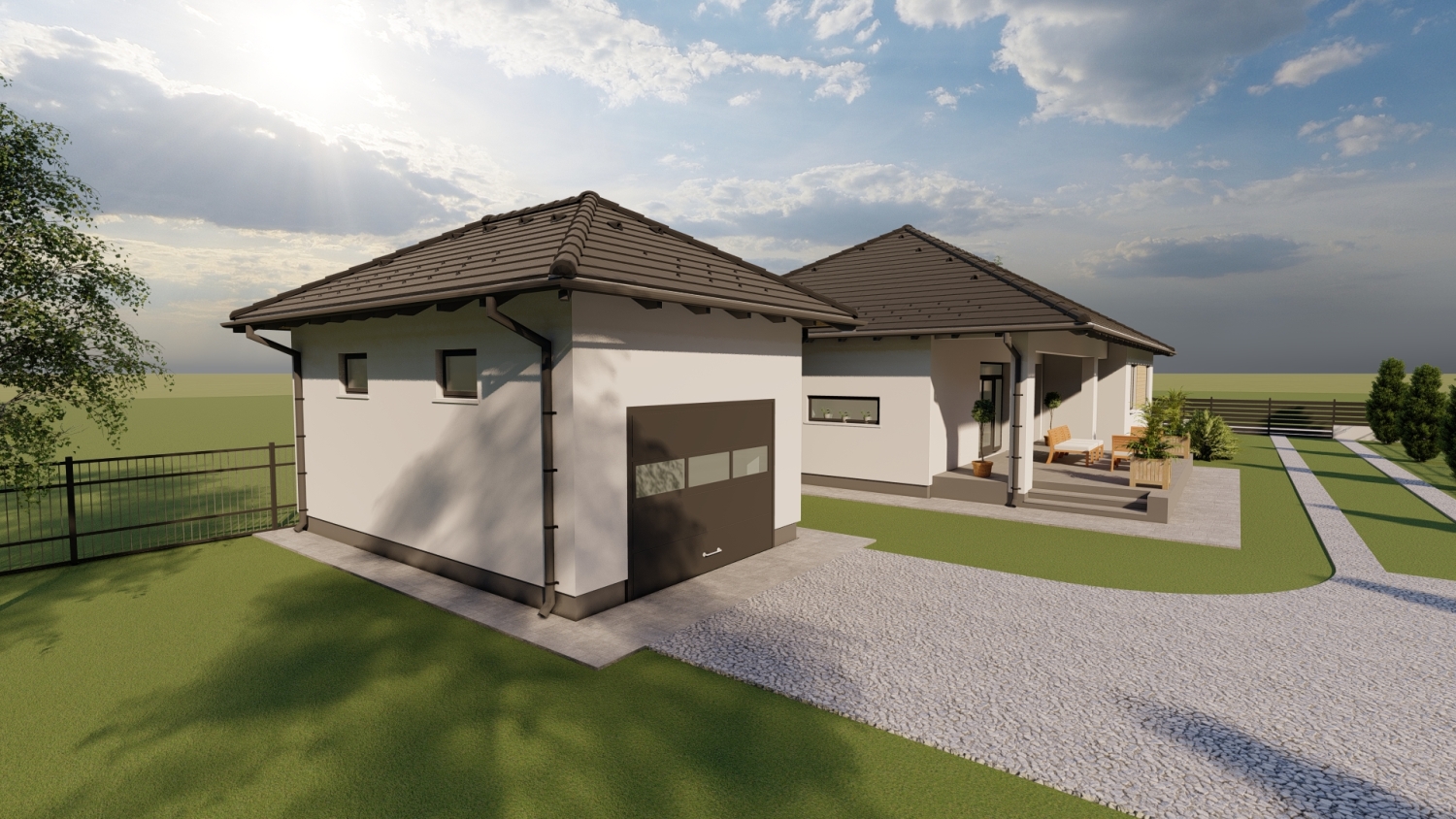 - Tető: Antracit színű kerámiacserép, igény szerint módosítható.