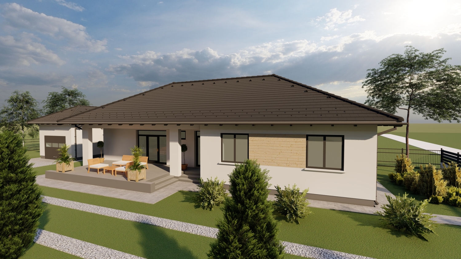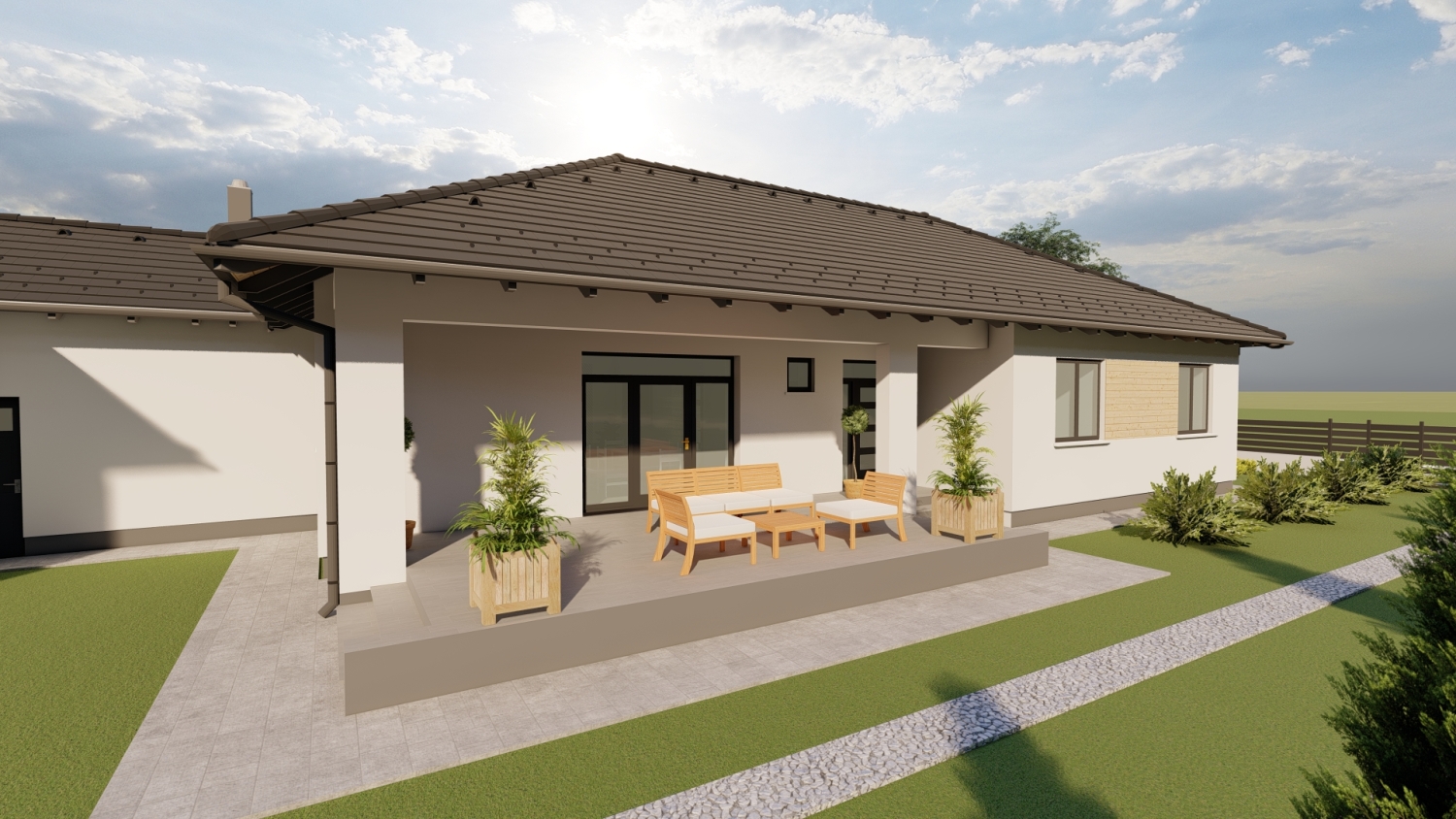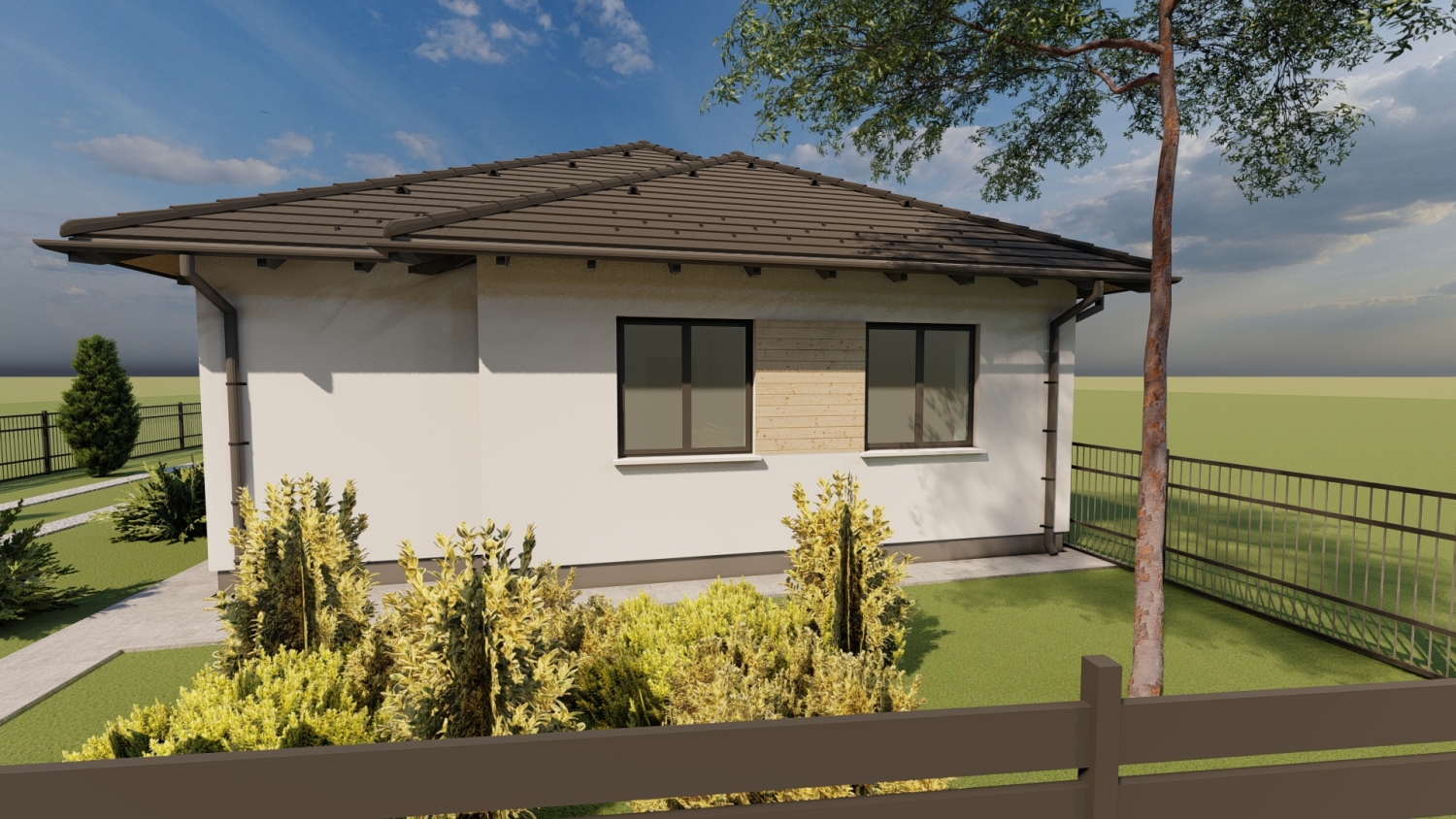 - Tető: Antracit színű kerámiacserép, igény szerint módosítható.