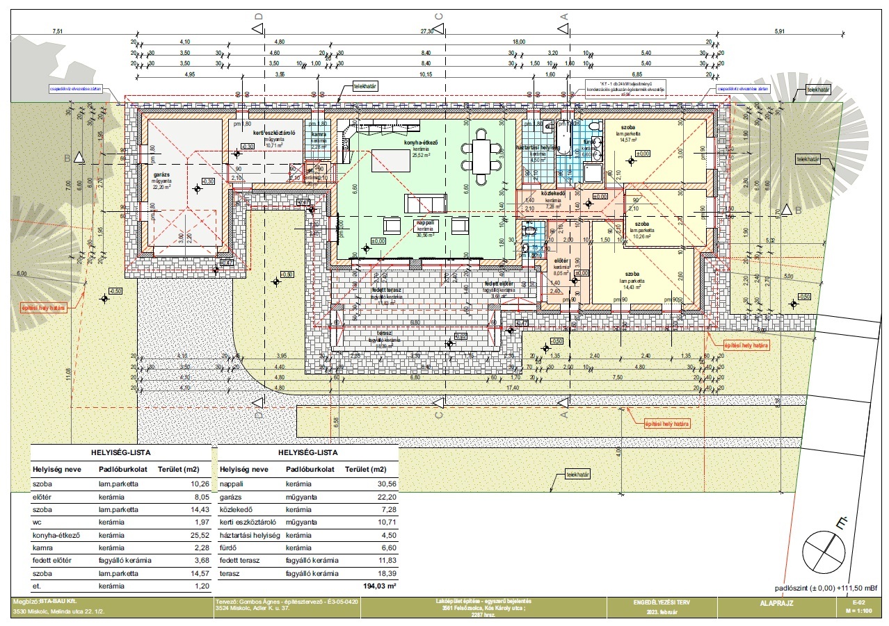 - Falazat: B30-as tégla, belső vakolattal, 10 cm tégla válaszfallal, Dryvit rendszerű külső hőszigeteléssel.