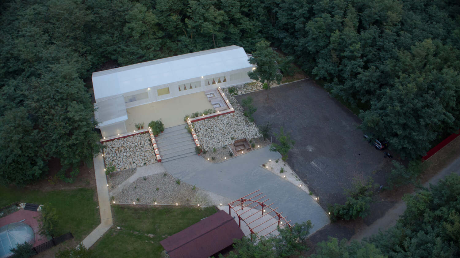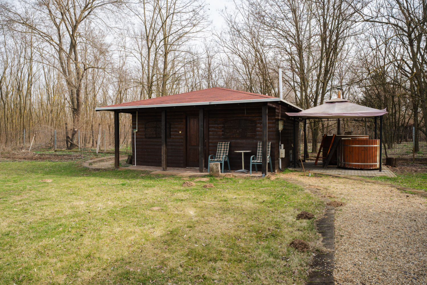 Mérete: 170 nm vendégház (4 hálószoba, összesen 10 főre) + 120 nm fedett, fűthető, közösségi BBQ terem