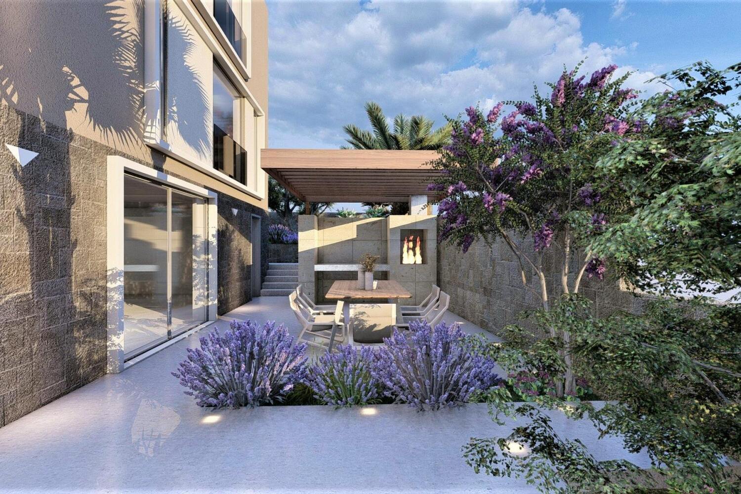 A földszintet nyitott térként tervezték, modern konyhával, tágas étkezővel és elegáns nappalival. A nappali egy gondosan kialakított teraszra nyílik, ahonnan hihetetlen kilátás nyílik a tengerre.