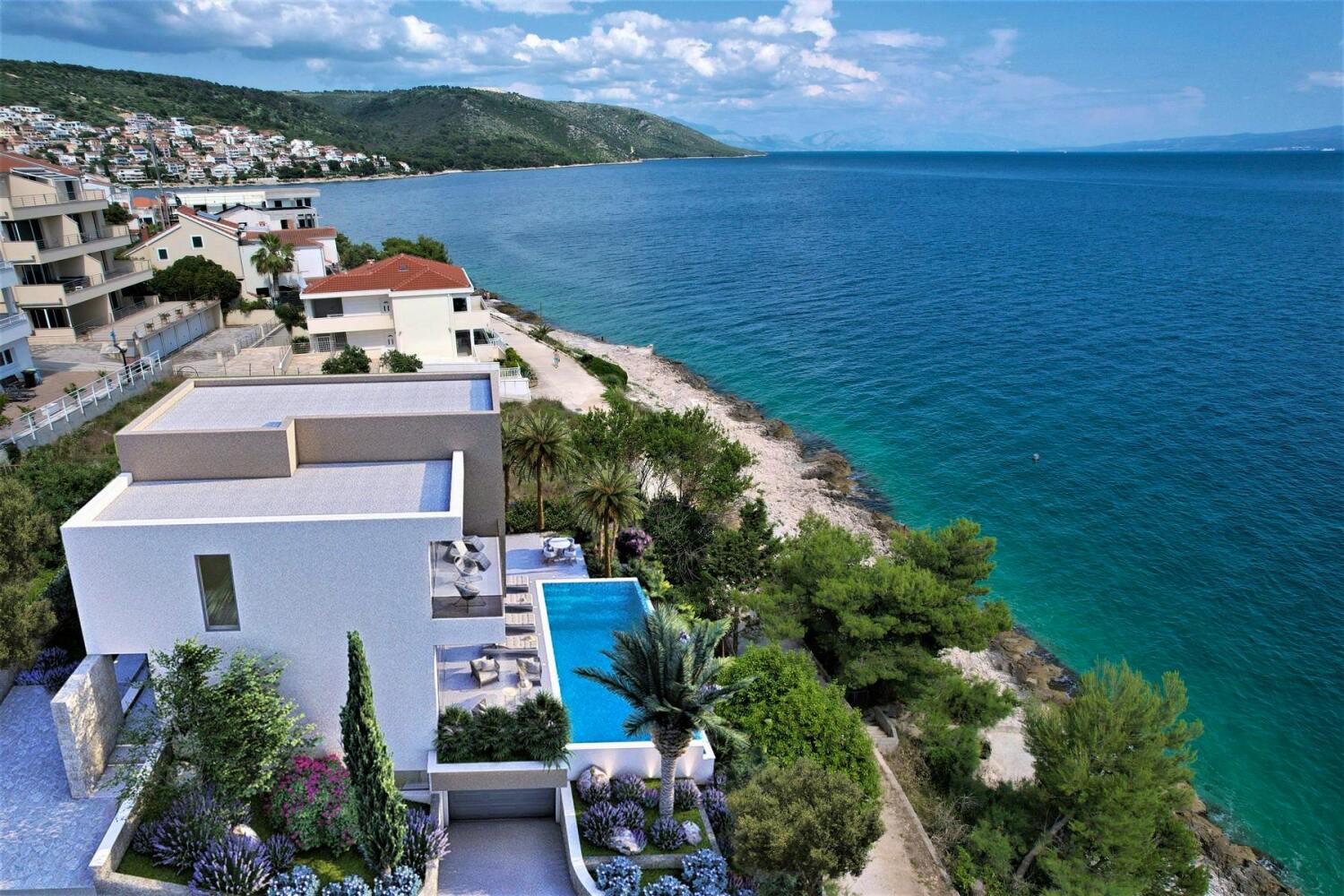 A Villa egy fényűző, modern, építés alatt álló villa, amely exkluzív tengerparti helyen, a Čiovo-sziget déli oldalán található.