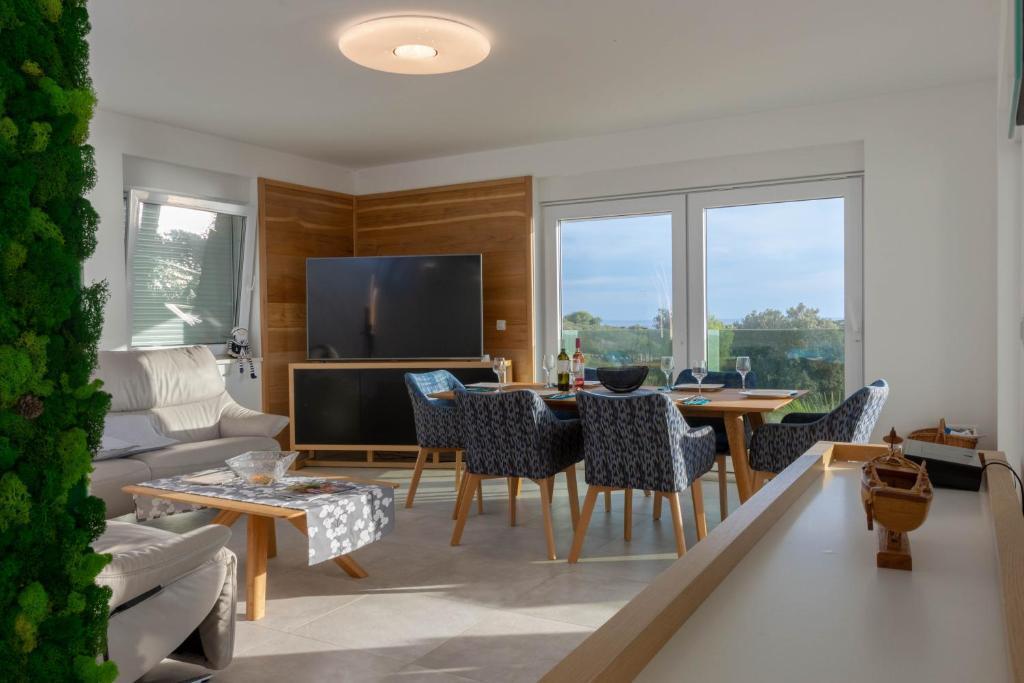 A villa modern megjelenése és dizájnja, valamint a kiváló minőségű anyagok, amelyekből épült, a luxus érzetét biztosítják.