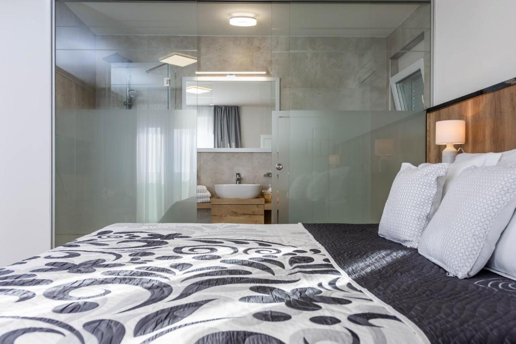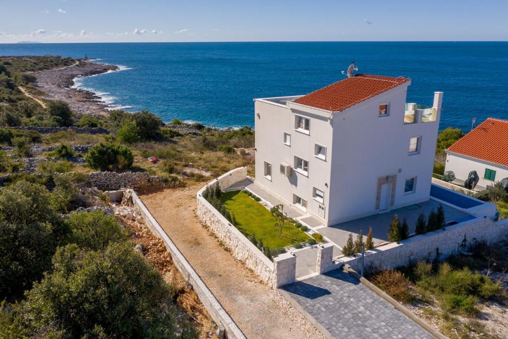 Közvetítünk egy úszómedencés, új építésű luxusvilla eladásában, rendkívül vonzó helyen Stivašnicán, mindössze 50 m-re a tengertől.