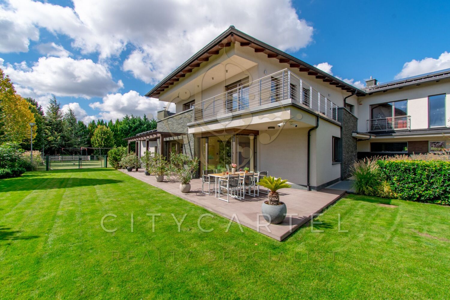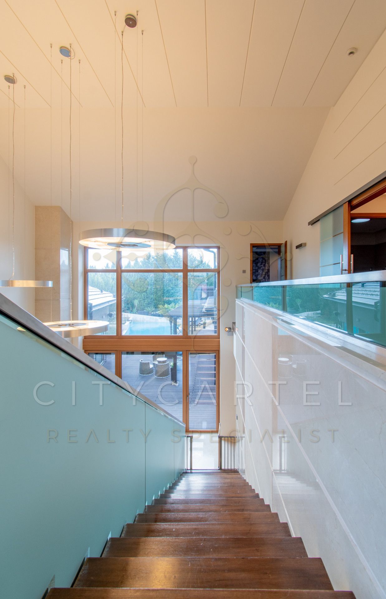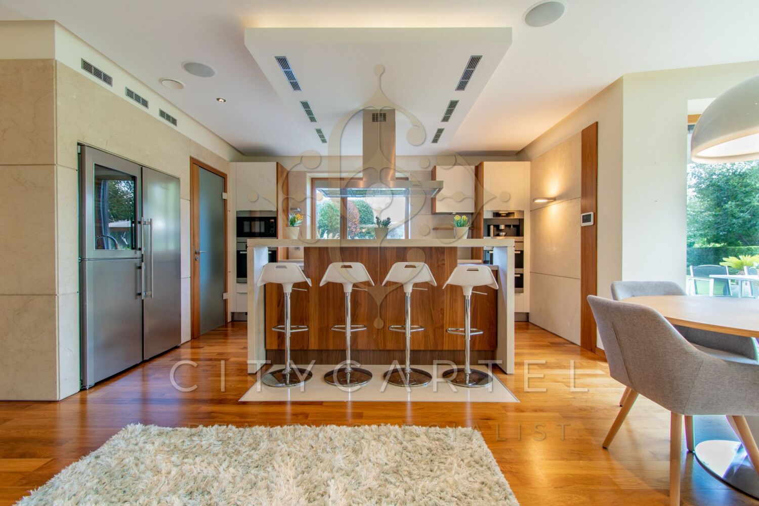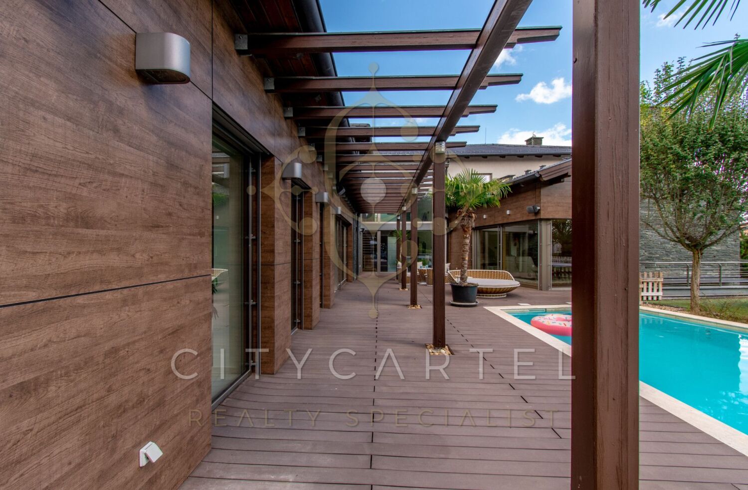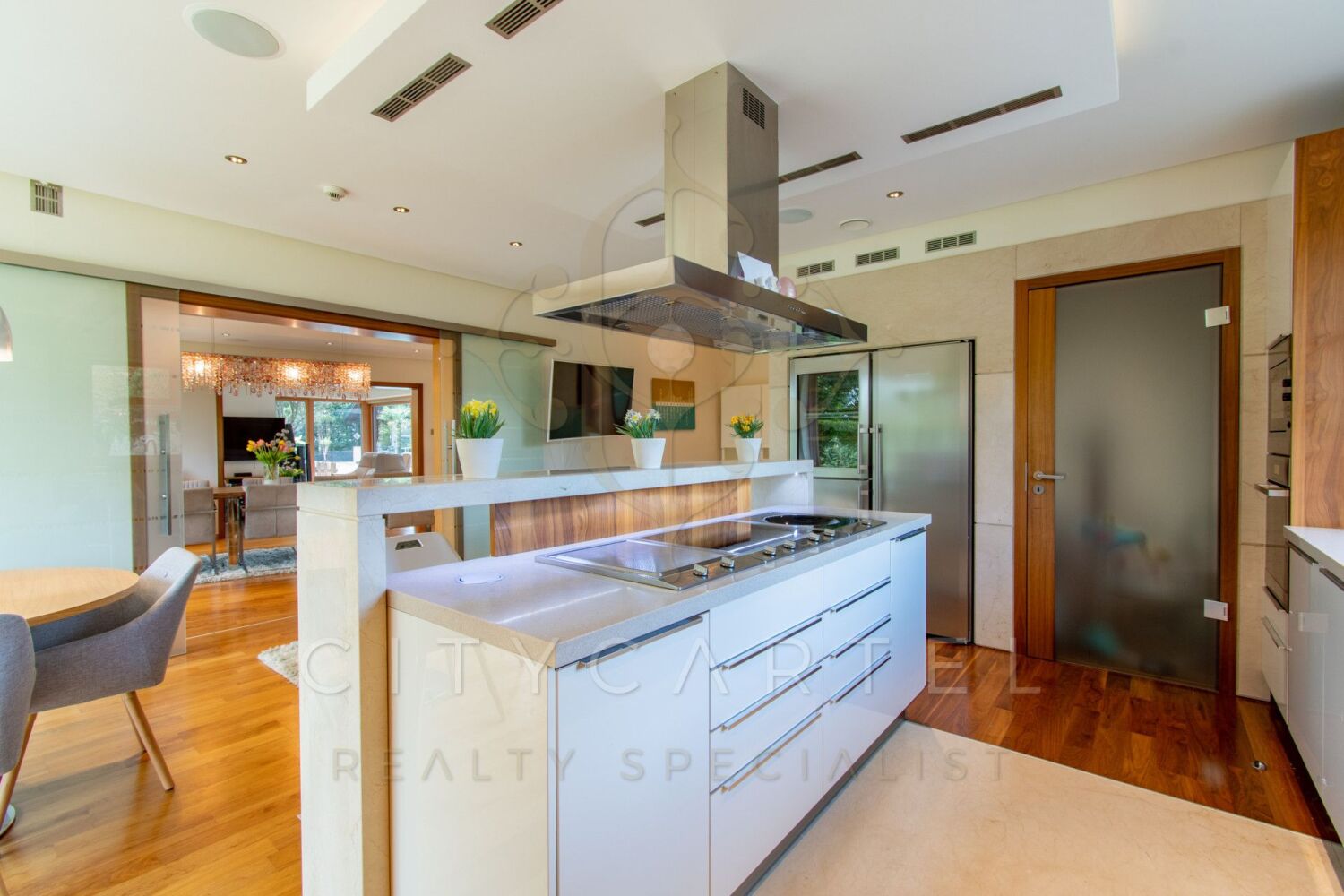 15 minutes from Budapest, in Telki, a minimal style, panoramic, exterior and interior swimming pool, 1000 sqm smart house for sale, built in 2012.