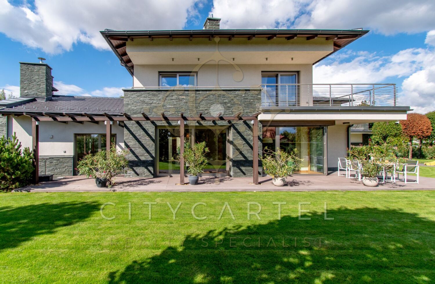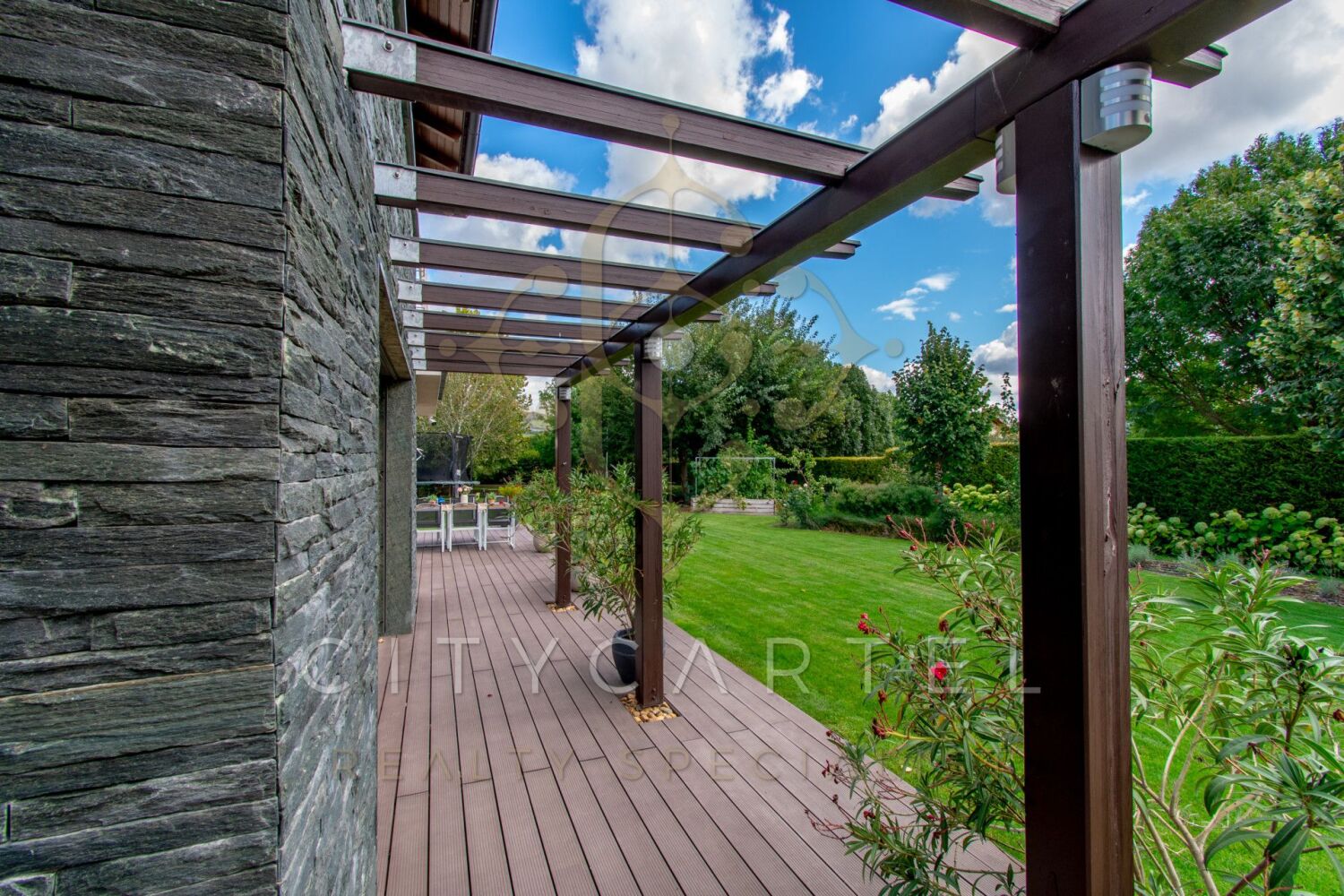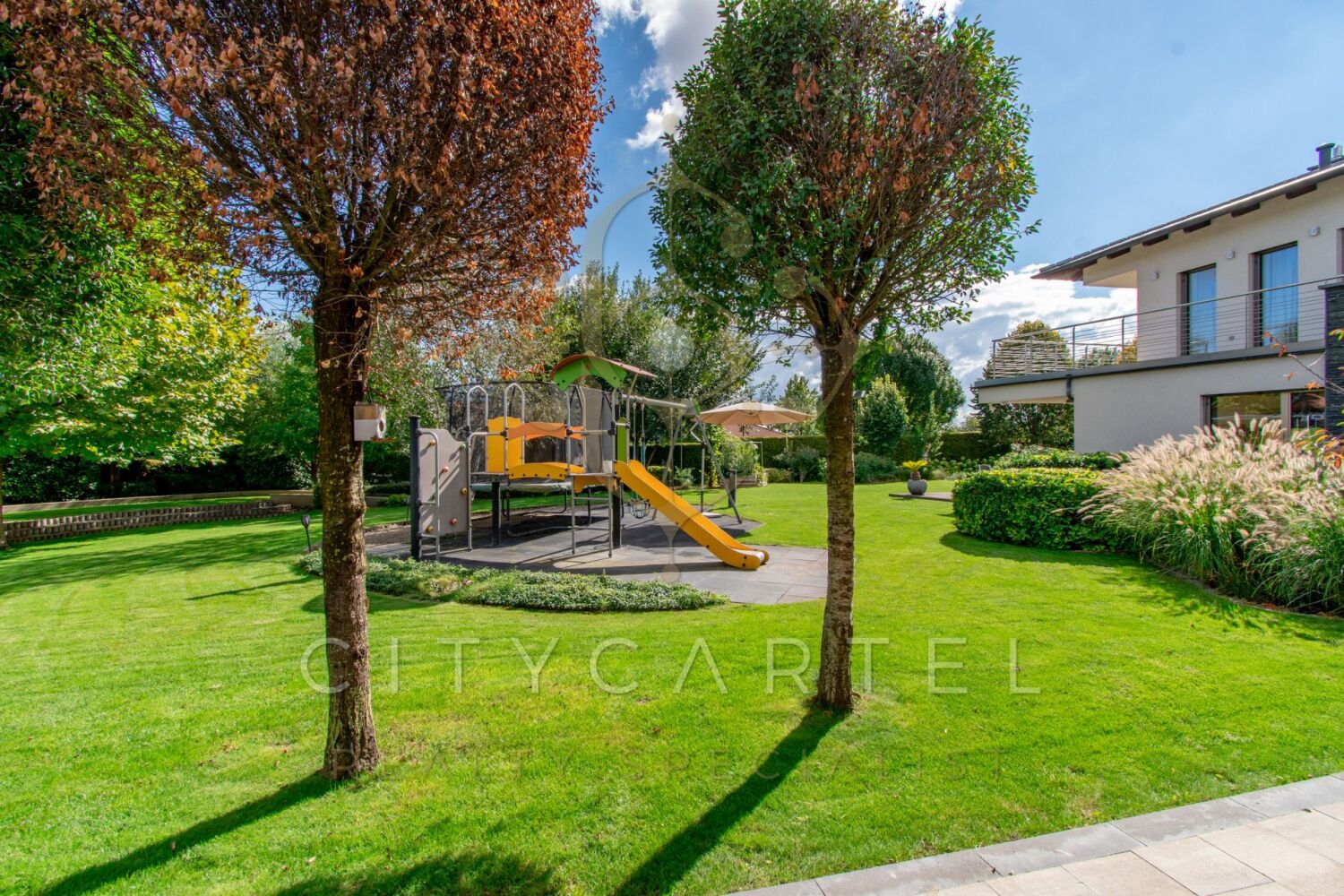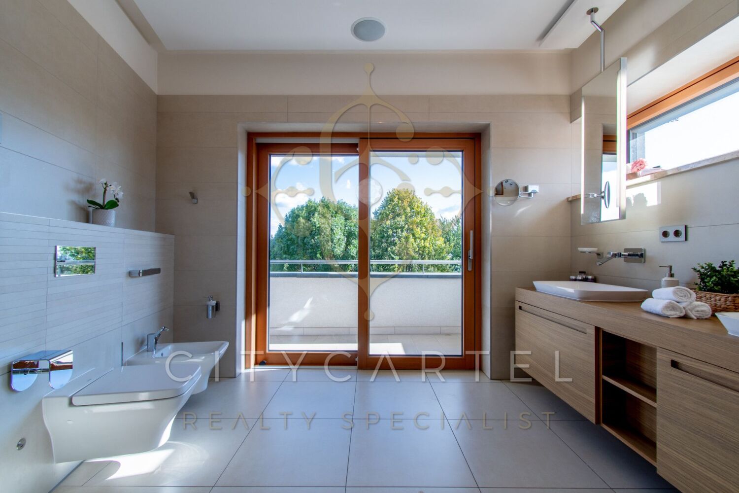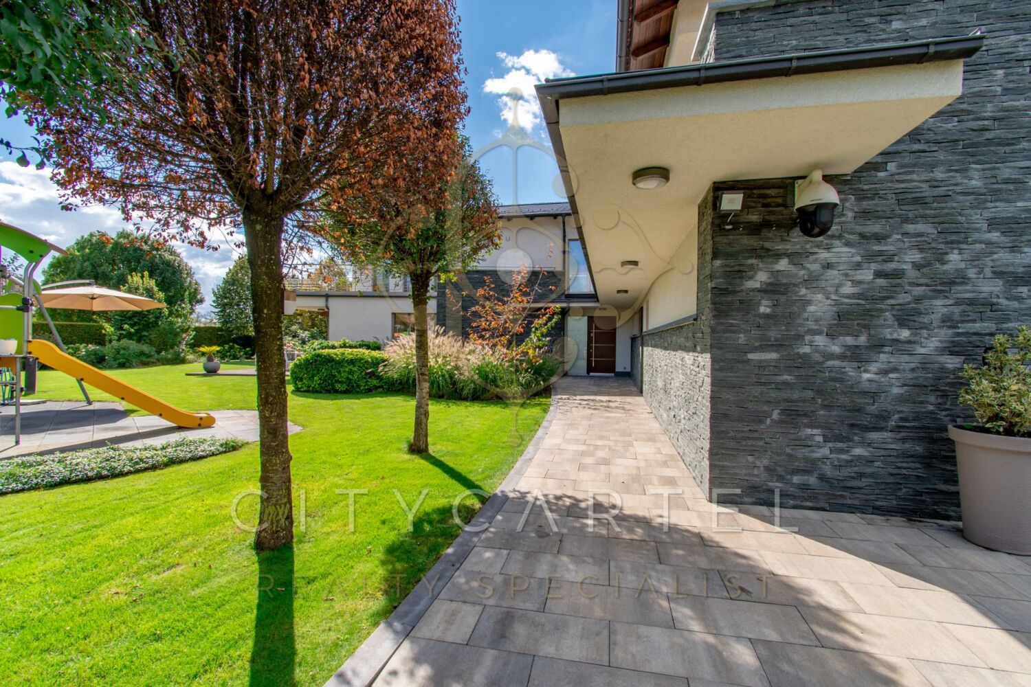 15 minutes from Budapest, in Telki, a minimal style, panoramic, exterior and interior swimming pool, 1000 sqm smart house for sale, built in 2012.