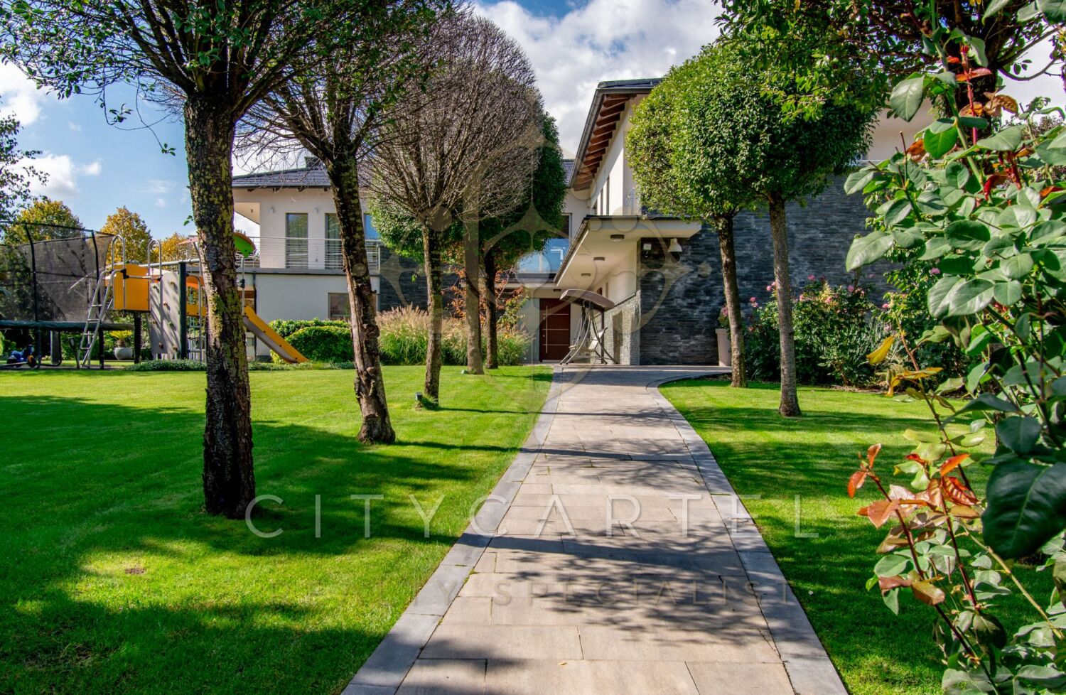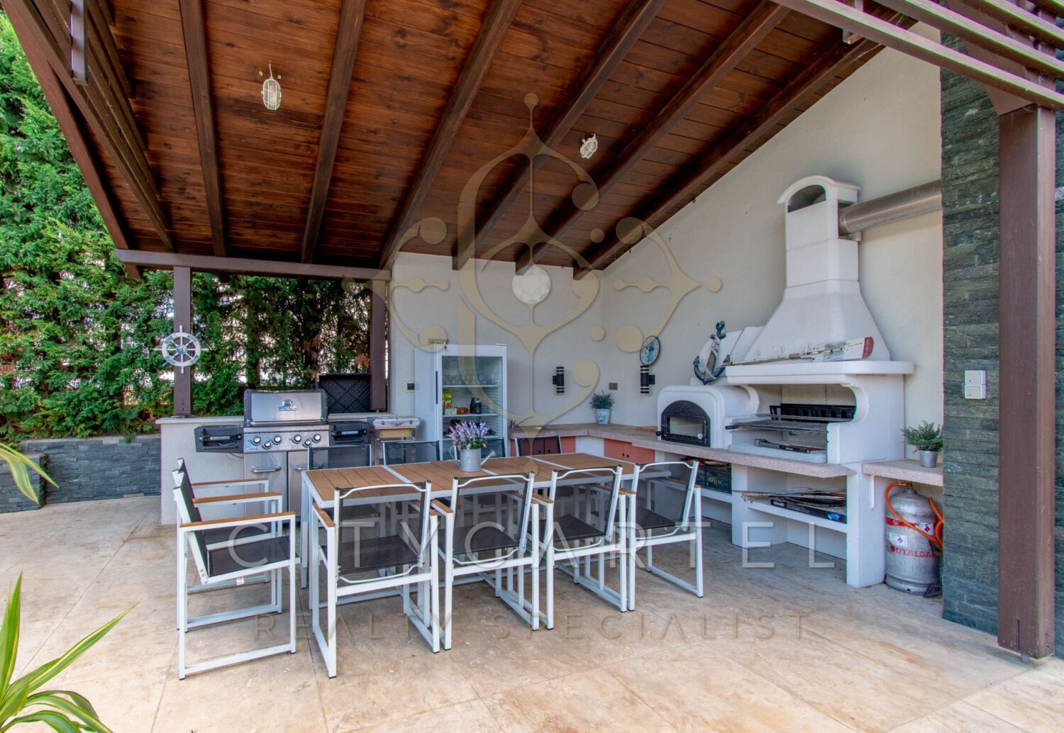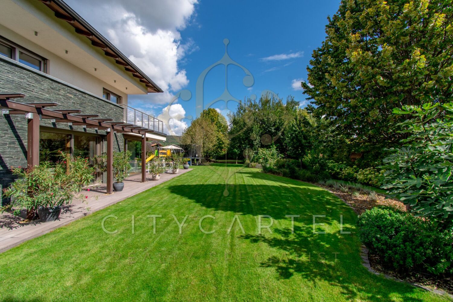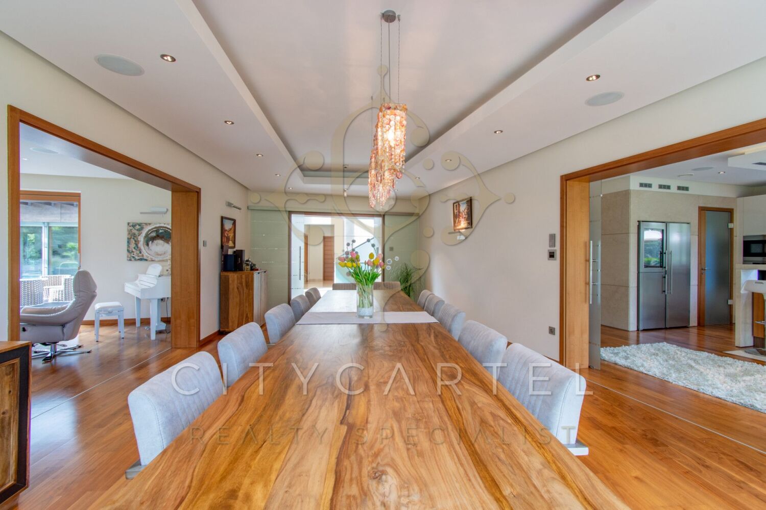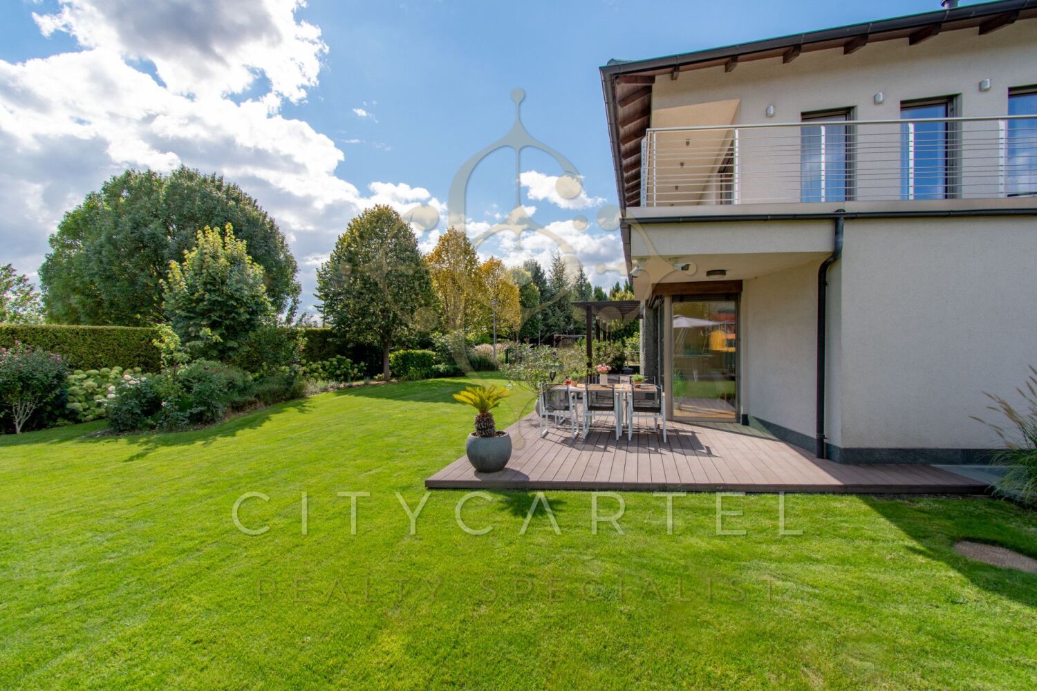 15 minutes from Budapest, in Telki, a minimal style, panoramic, exterior and interior swimming pool, 1000 sqm smart house for sale, built in 2012.