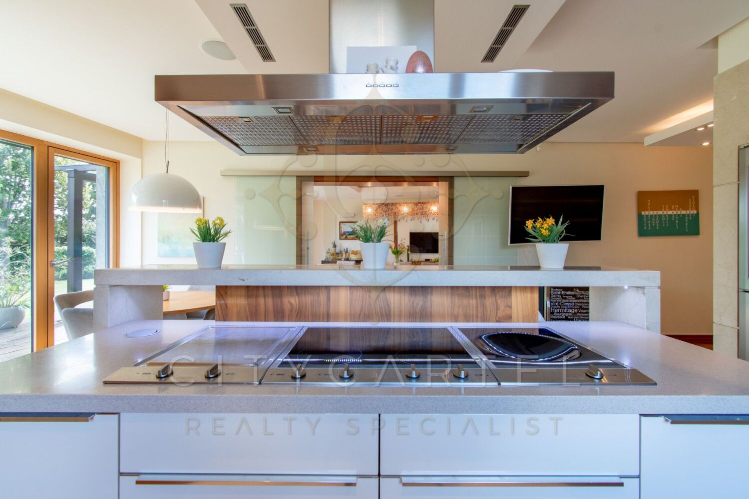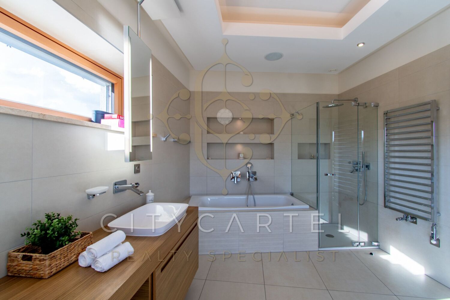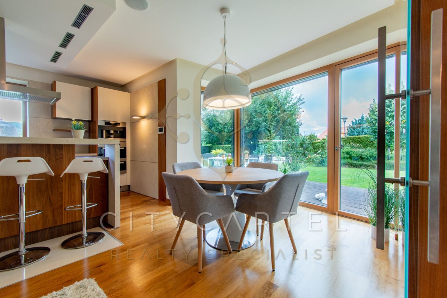The three-story building was built with the most modern technology: A+ rating, geothermal heat pump, ceiling and floor cooling-heating, intelligent house system, remotely controllable building supervision, alarm and camera system.