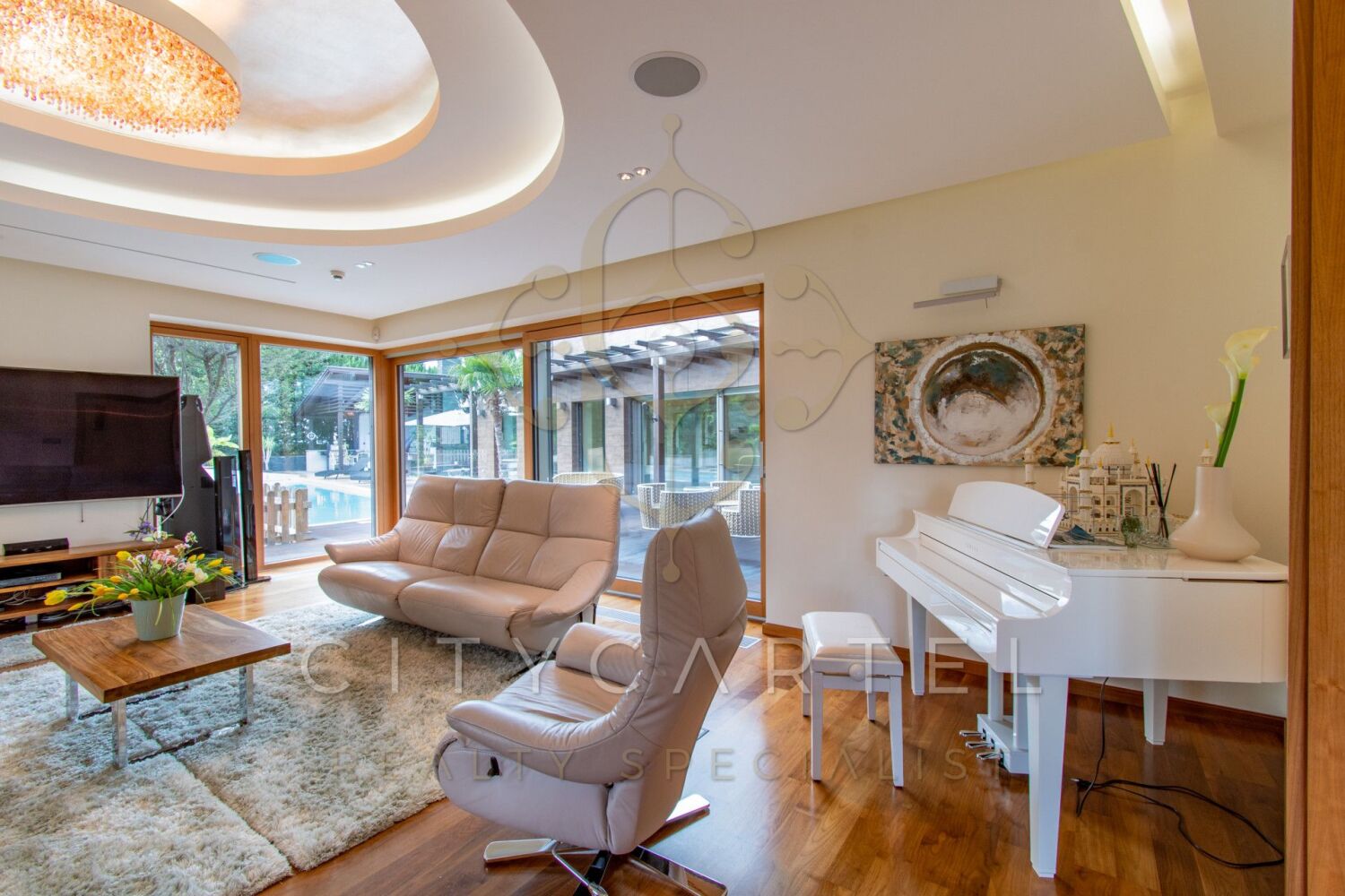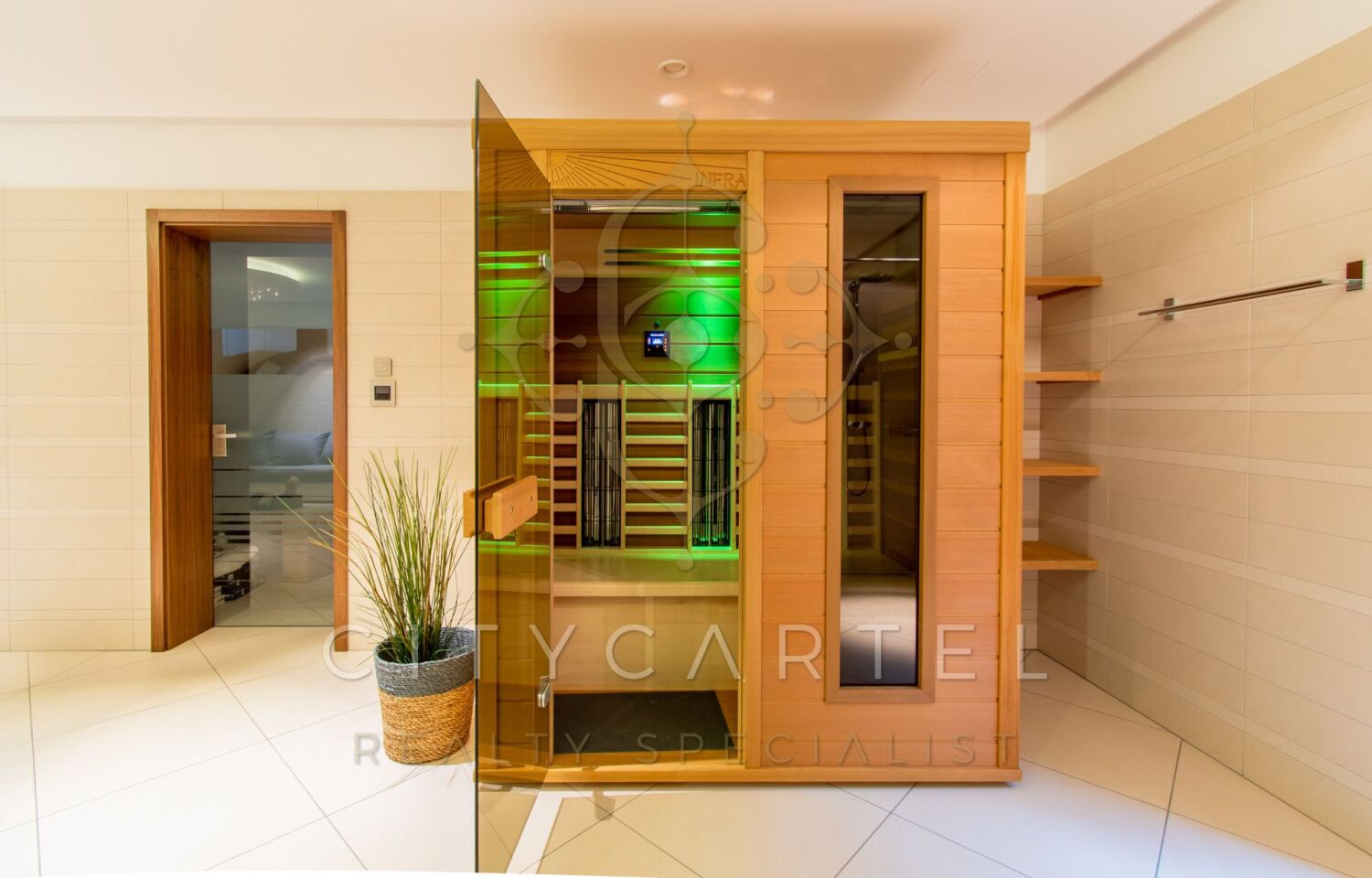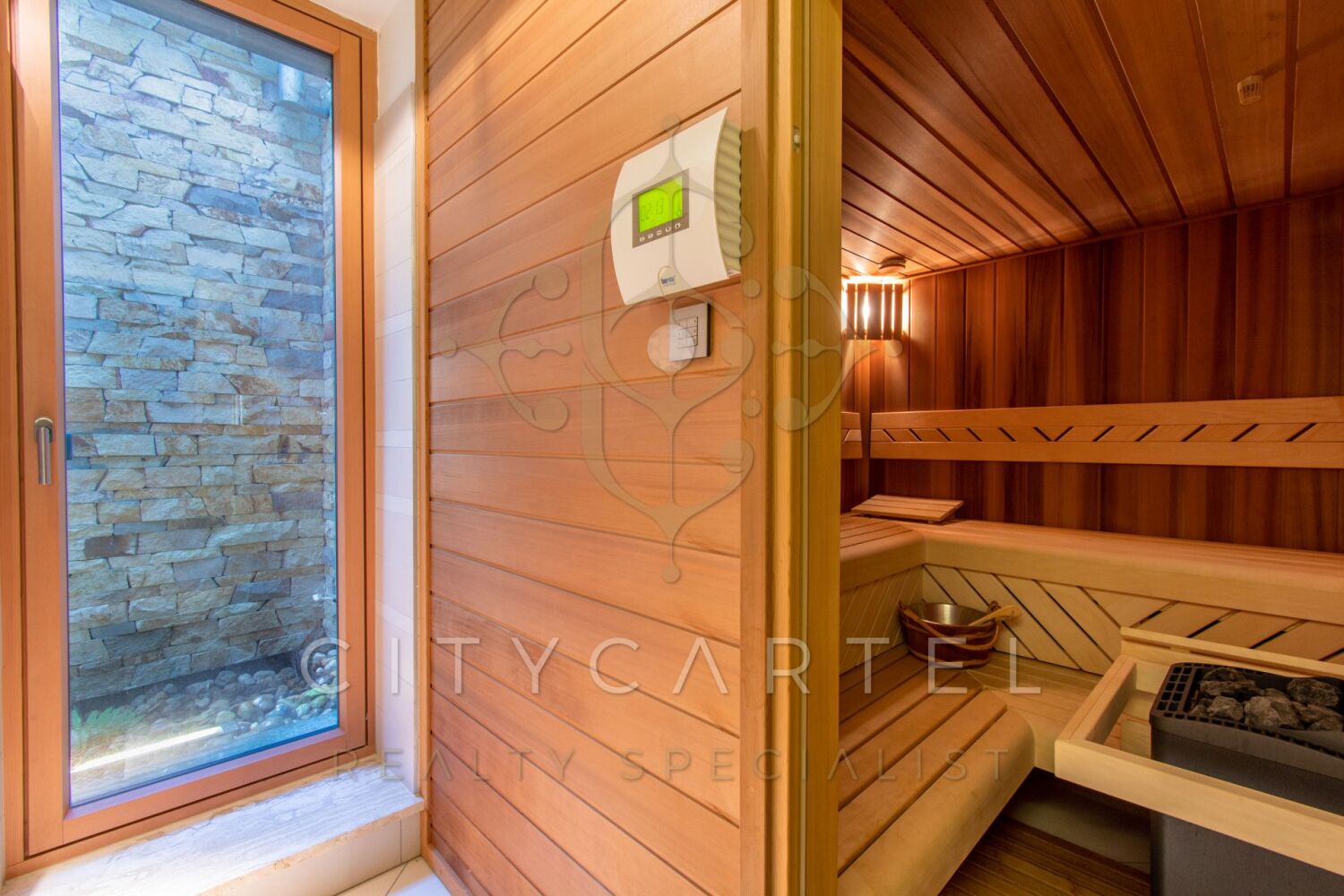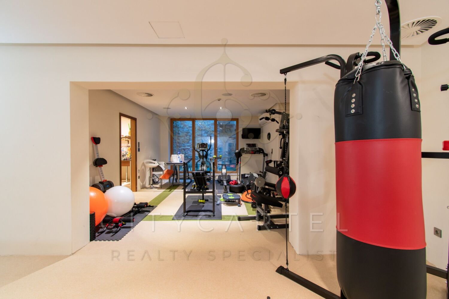 Wellness area: infrared sauna, Finnish sauna, light and aromatherapy steam cabin, relaxation room, fitness room, billiards room, wine cellar.