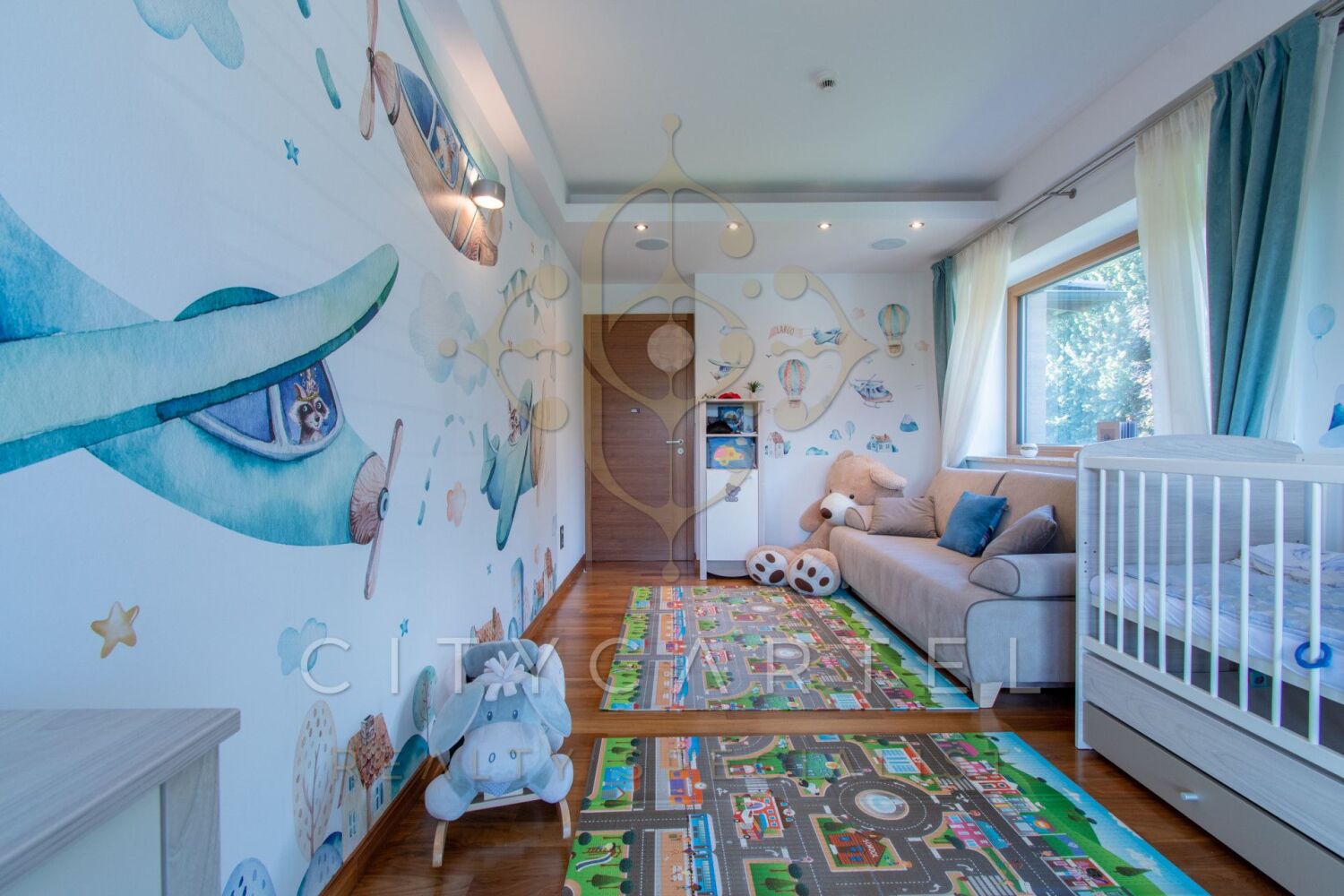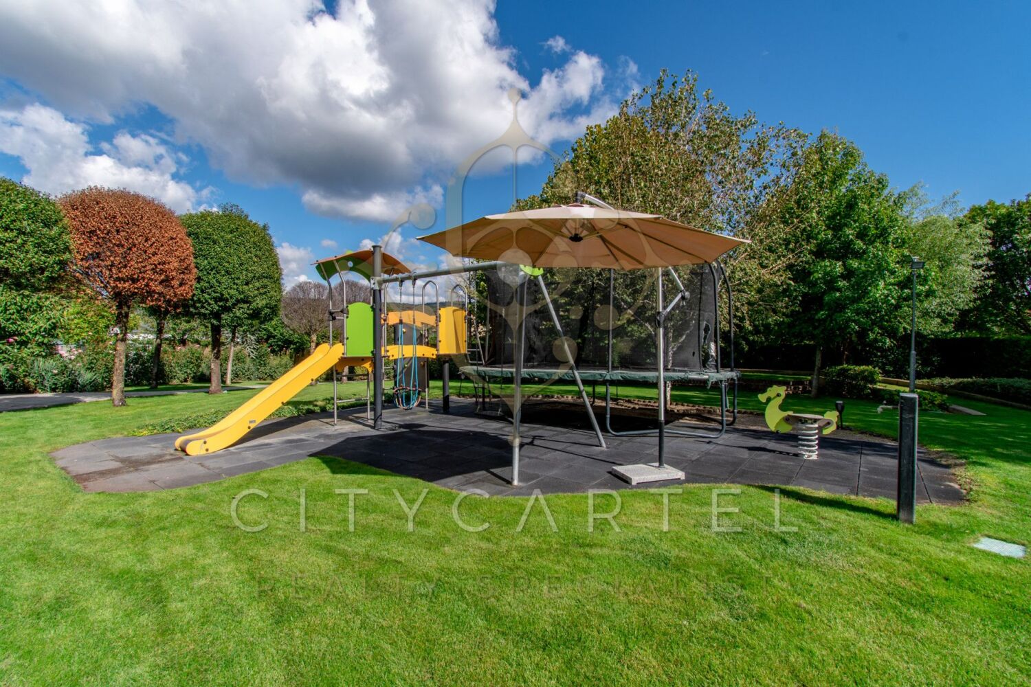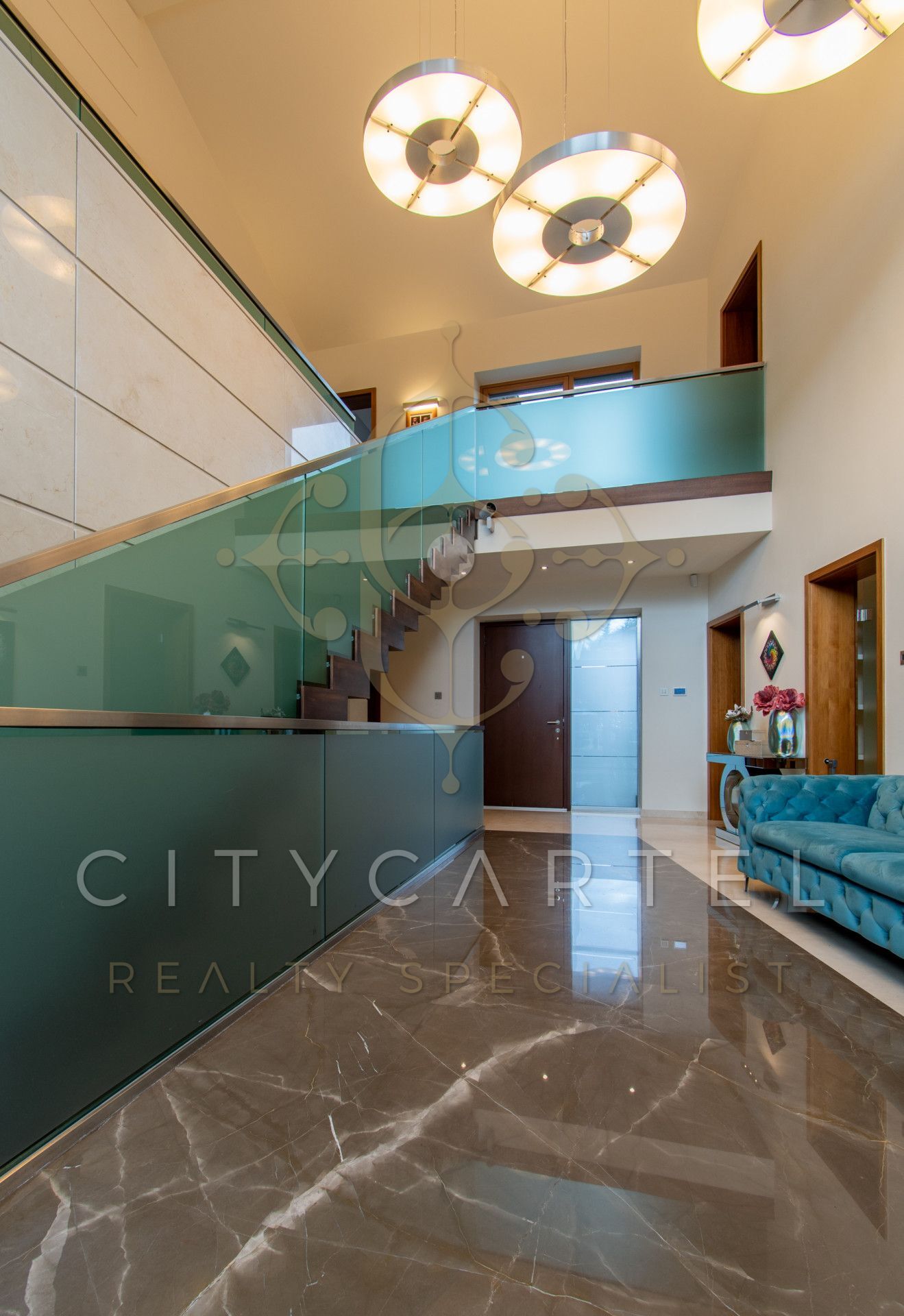 Földszint: tágas nappali kandallóval, étkező, konyha, hálószoba saját fürdőszobával és gardróbbal, dolgozószoba, fürdőszoba, 4 állásos garázs, úszómedence pezsgőfürdővel.
