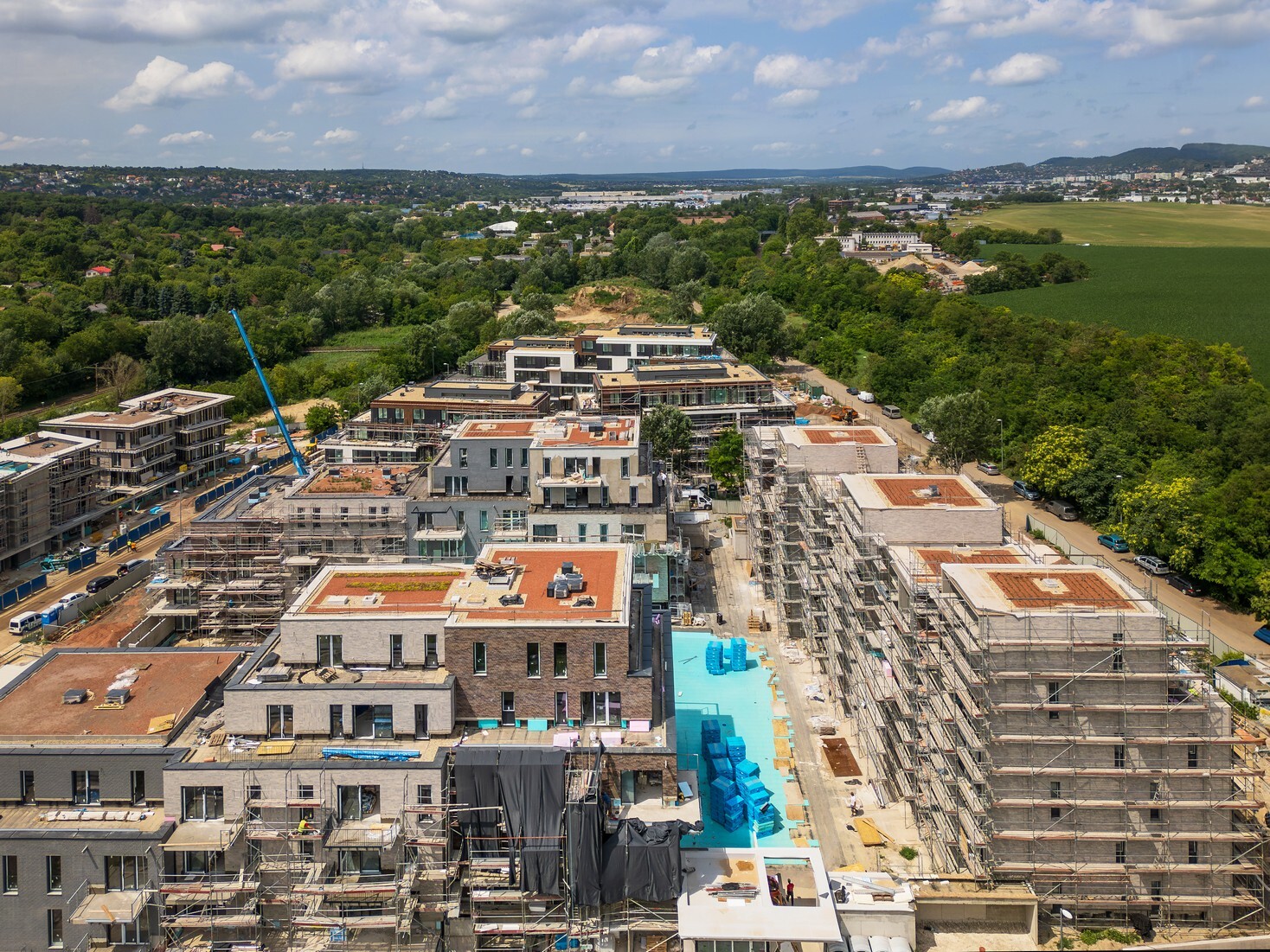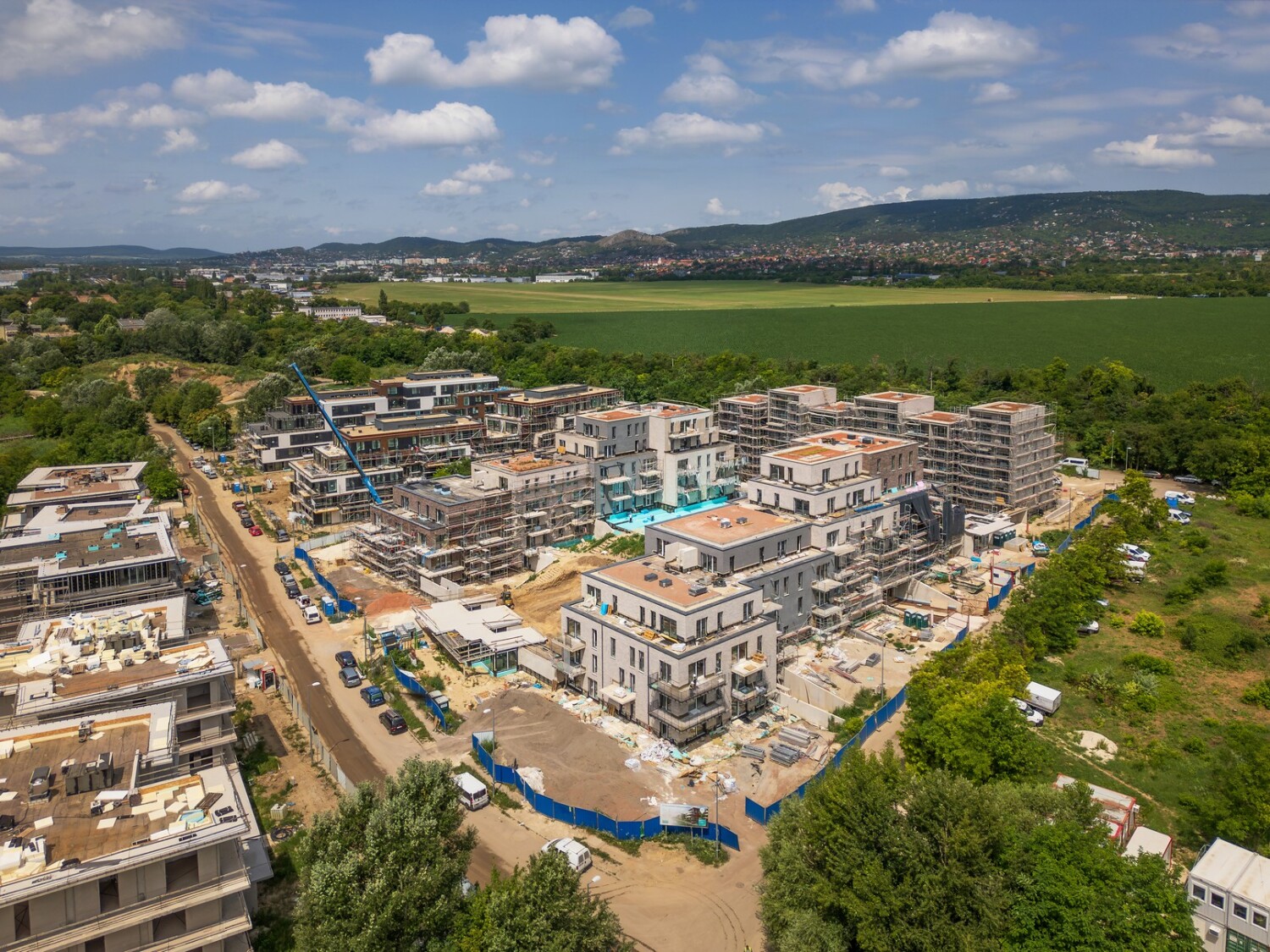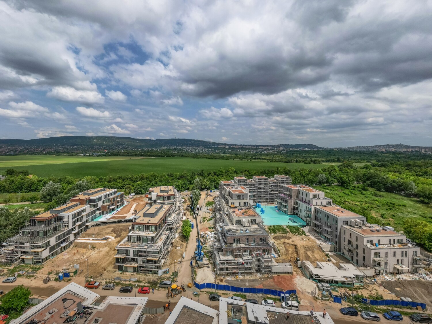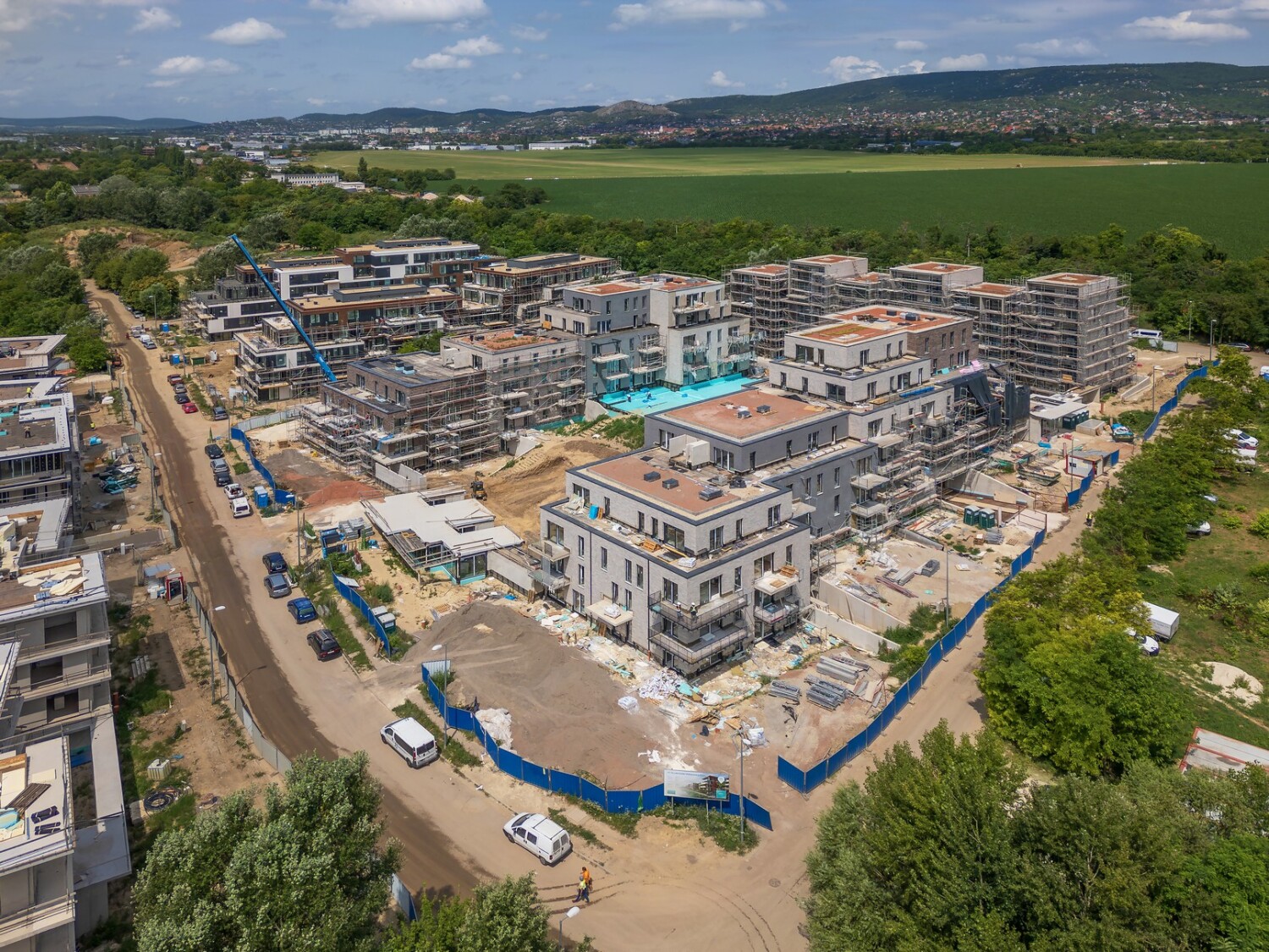 3-4 hónapon belül költözhető újépítésű lakóparki lakások, duplex lakások, villa lakások, családi villák és grand terasz-penthouse lakások vásárolhatók meg 1,35 M Ft/m2 ártól egészen 1,8 M Ft/m2 árig.