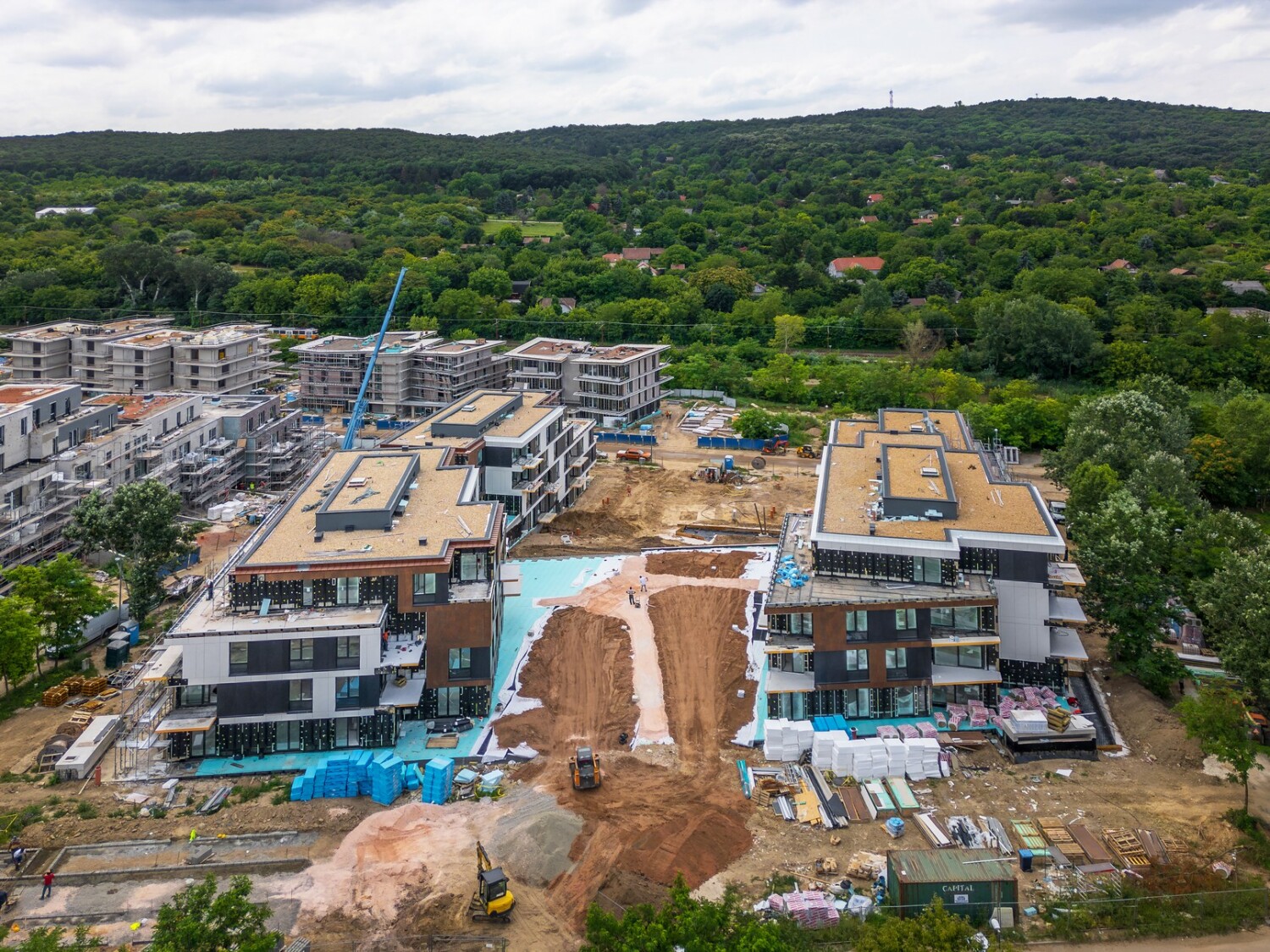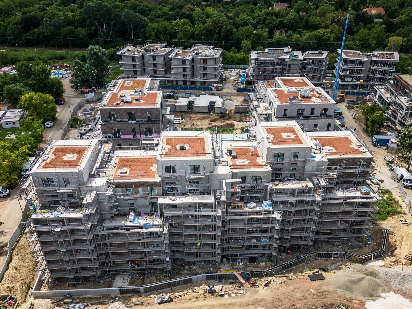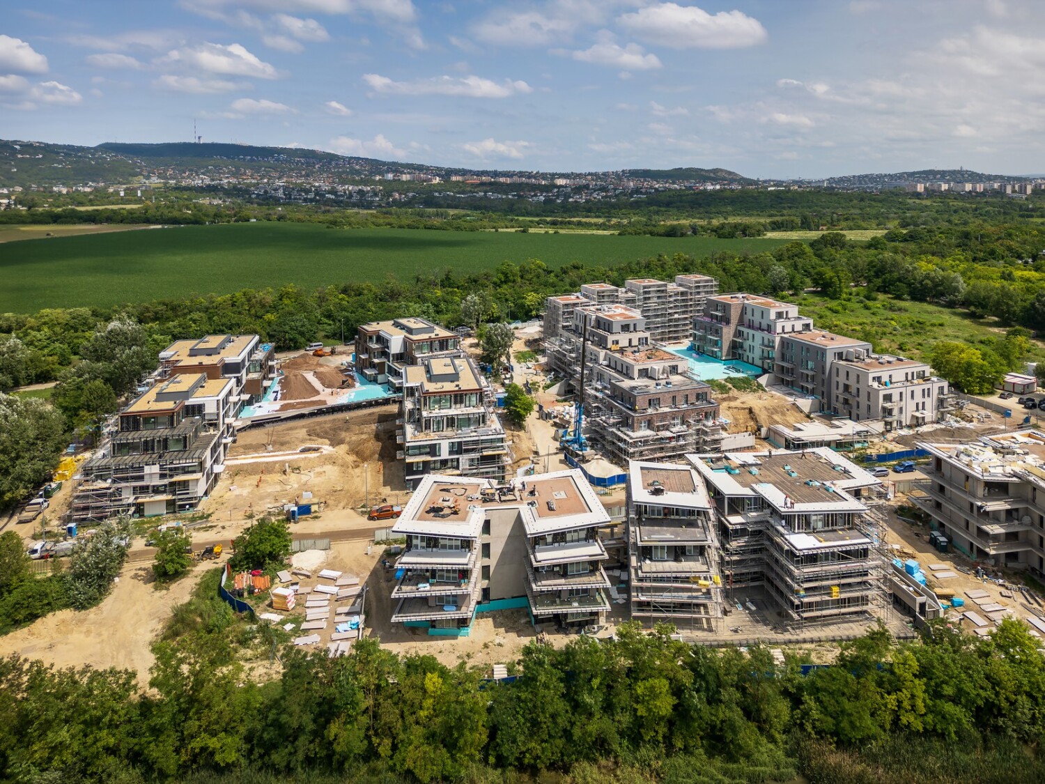 3-4 hónapon belül költözhető újépítésű lakóparki lakások, duplex lakások, villa lakások, családi villák és grand terasz-penthouse lakások vásárolhatók meg 1,35 M Ft/m2 ártól egészen 1,8 M Ft/m2 árig.
