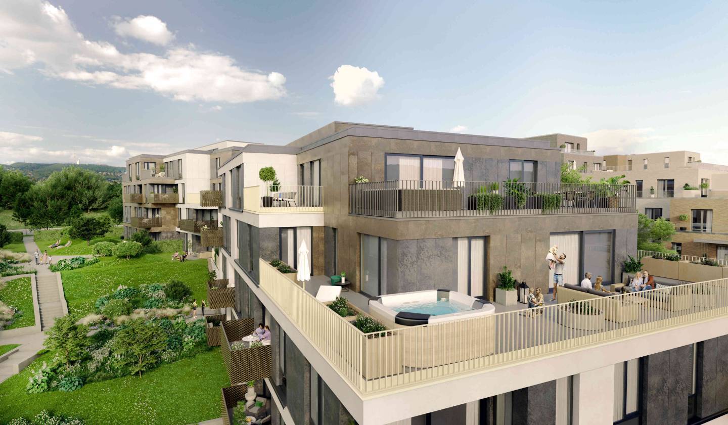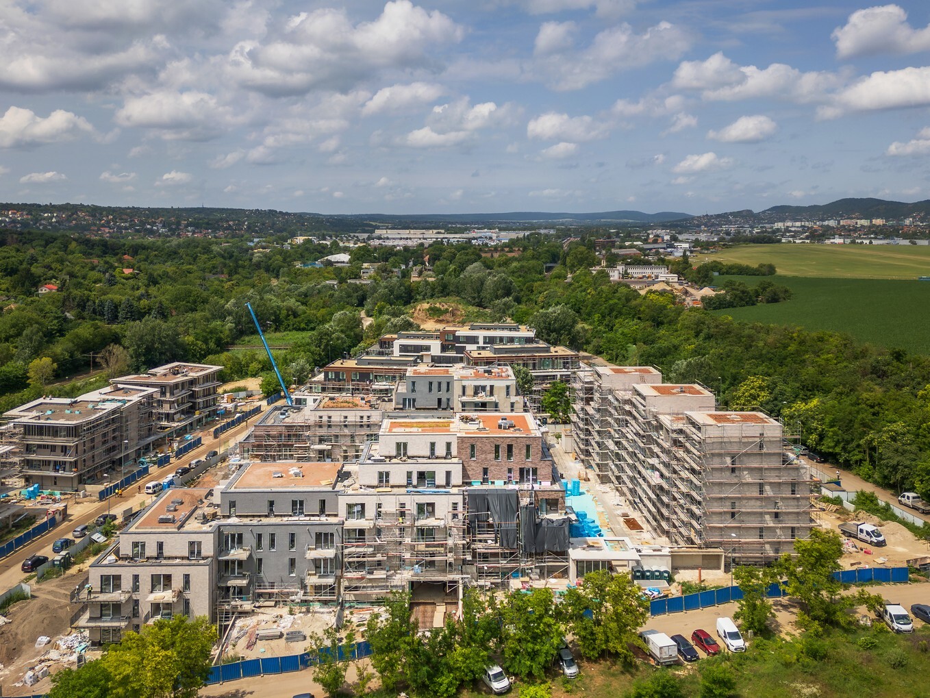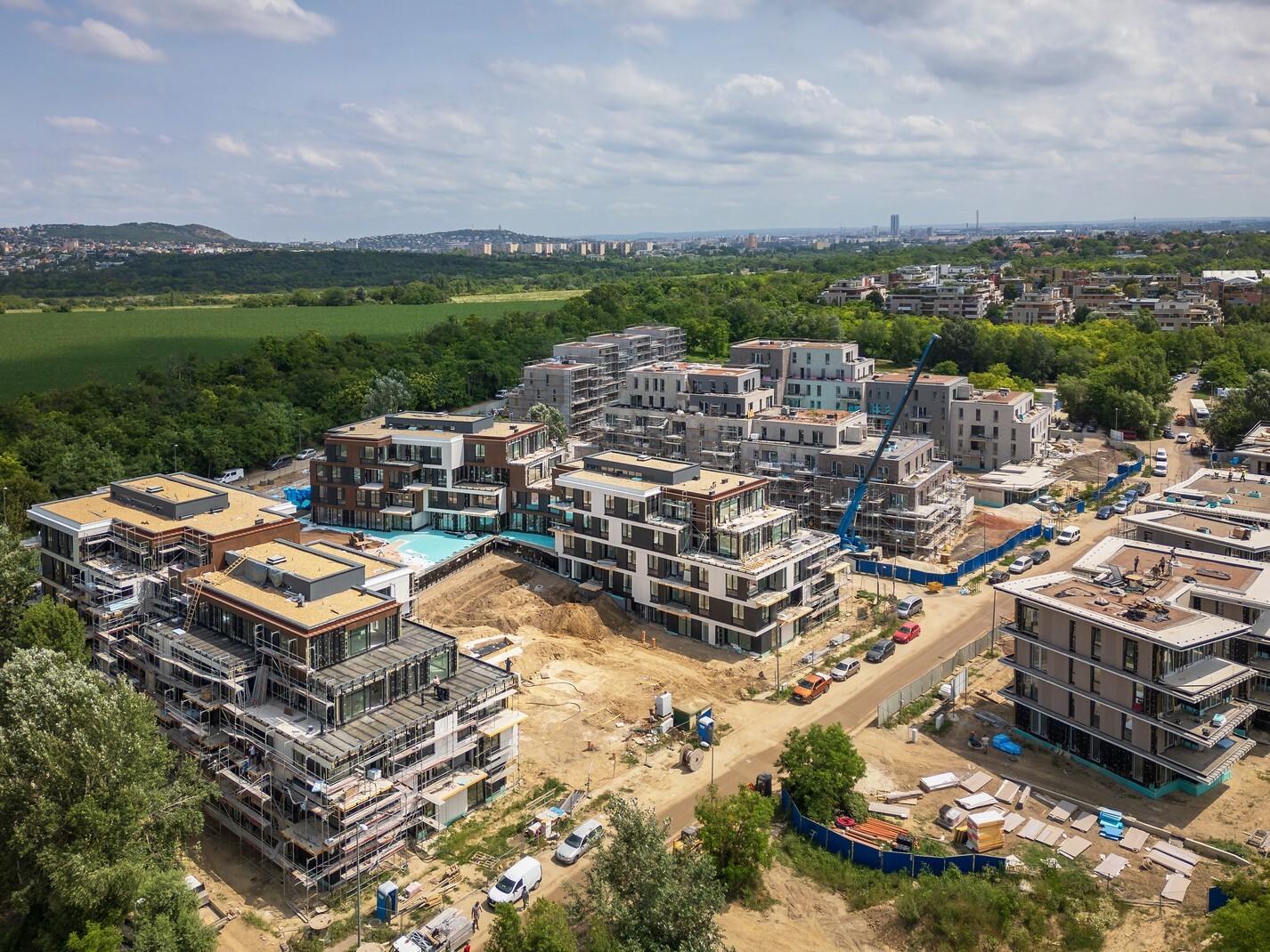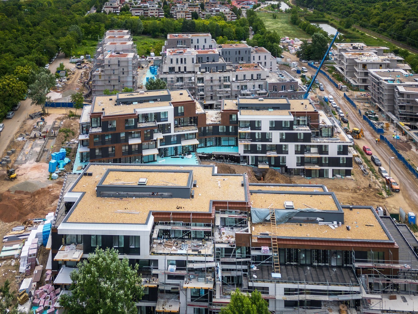3-4 hónapon belül költözhető újépítésű lakóparki lakások, duplex lakások, villa lakások, családi villák és grand terasz-penthouse lakások vásárolhatók meg 1,35 M Ft/m2 ártól egészen 1,8 M Ft/m2 árig.