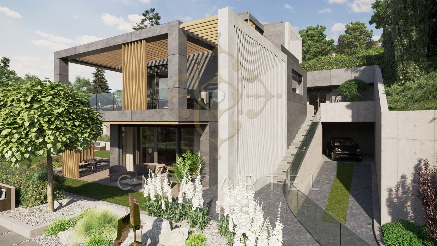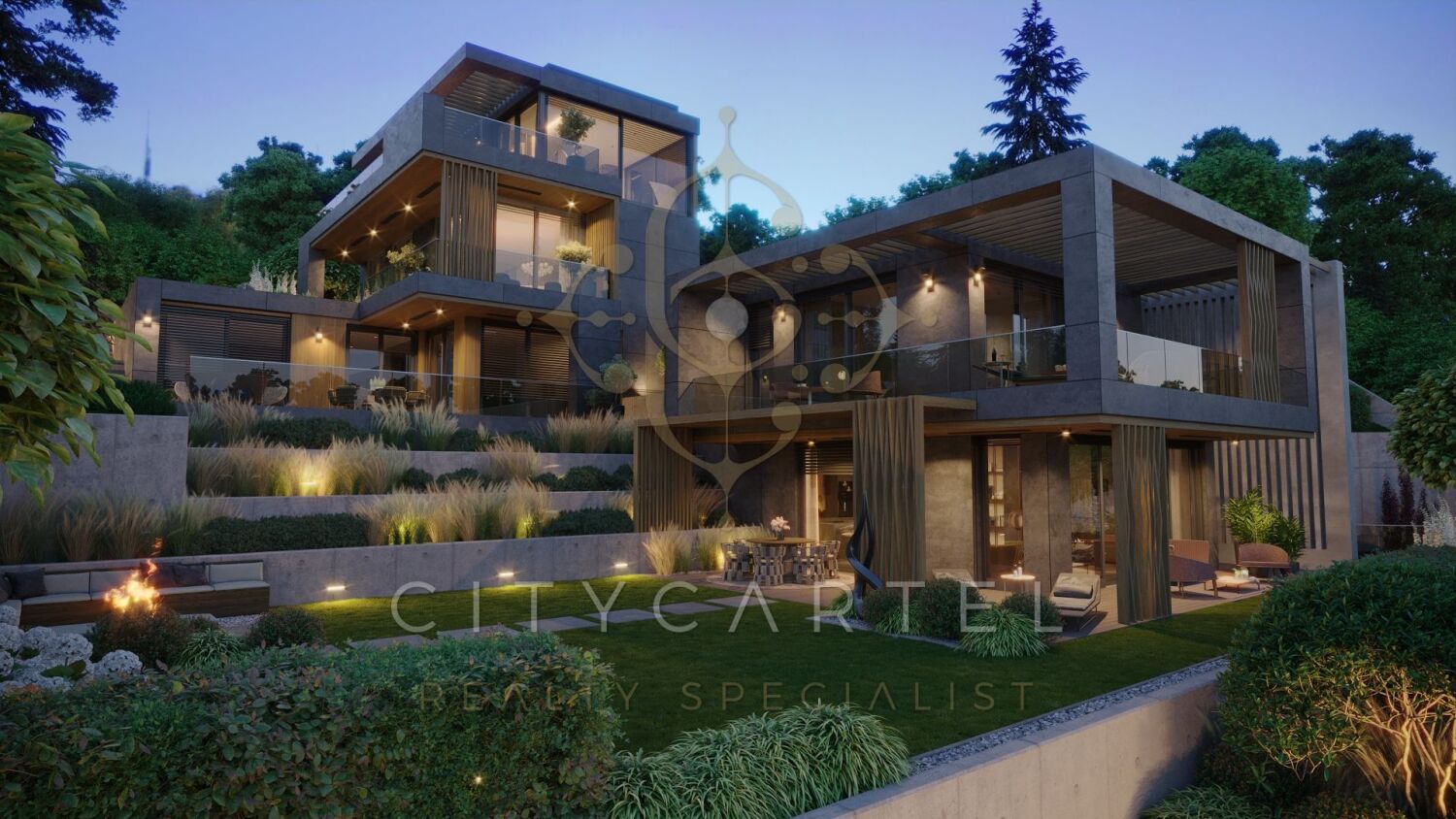 XII. in the most patinated part of the district, a few minutes from the BAH junction, I offer for sale this exclusive, state-of-the-art luxury villa with panoramic views. The property is one of the last cul-de-sac plots near the forest in Hegyvidék.