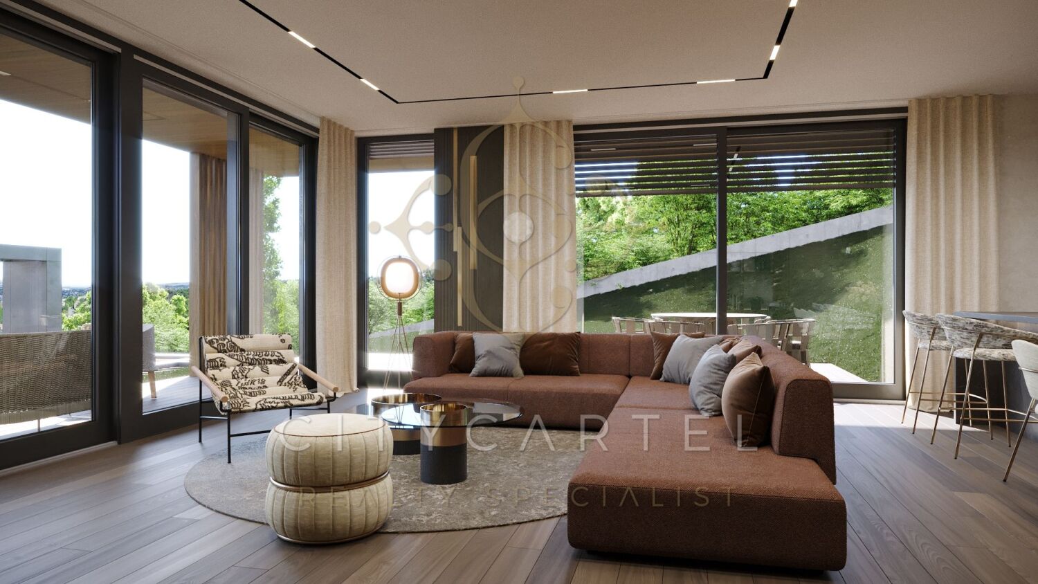 Panorámás Mártonhegyi LUXUS VILLALAKÁS eladó exkluzív zöld környezetben!