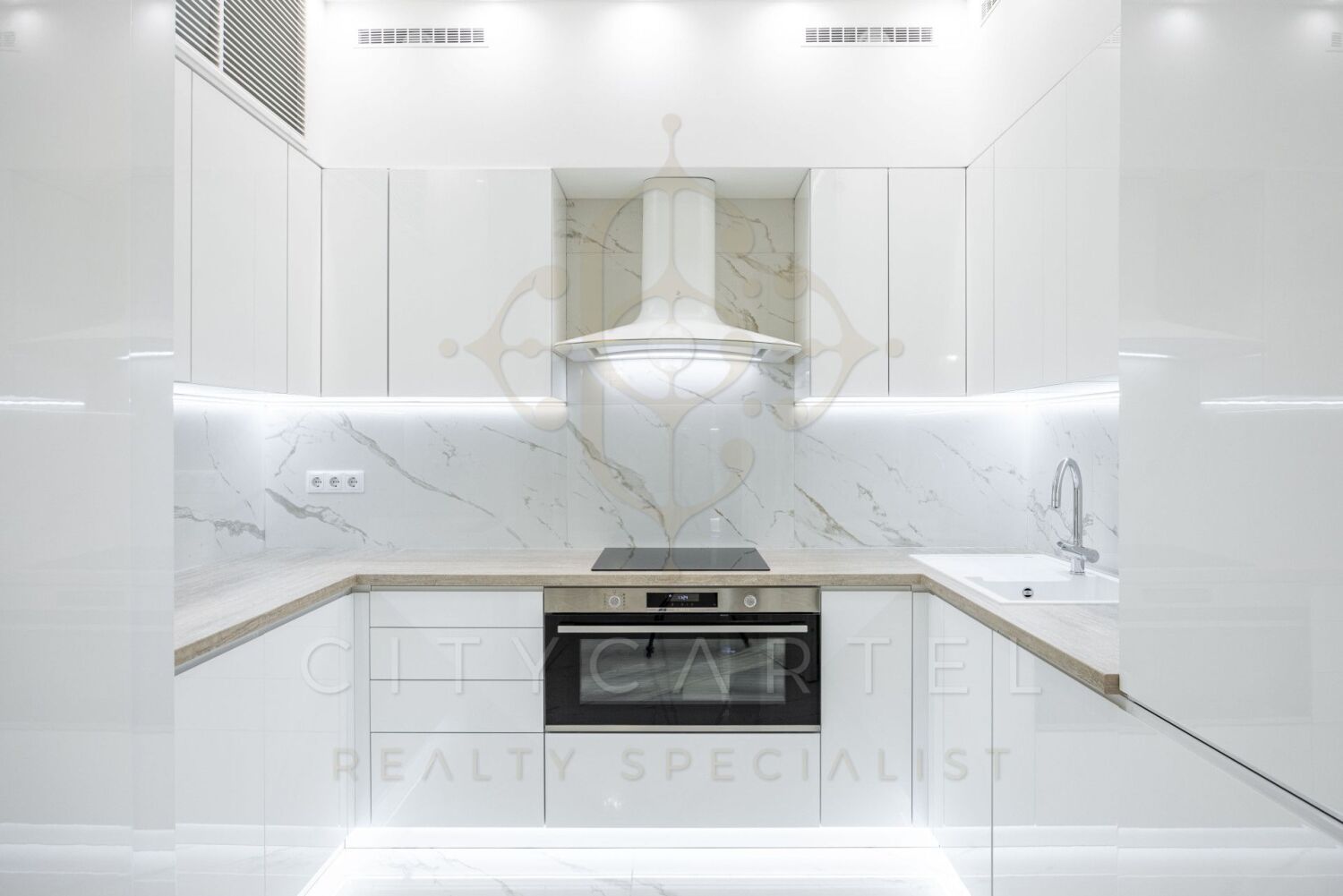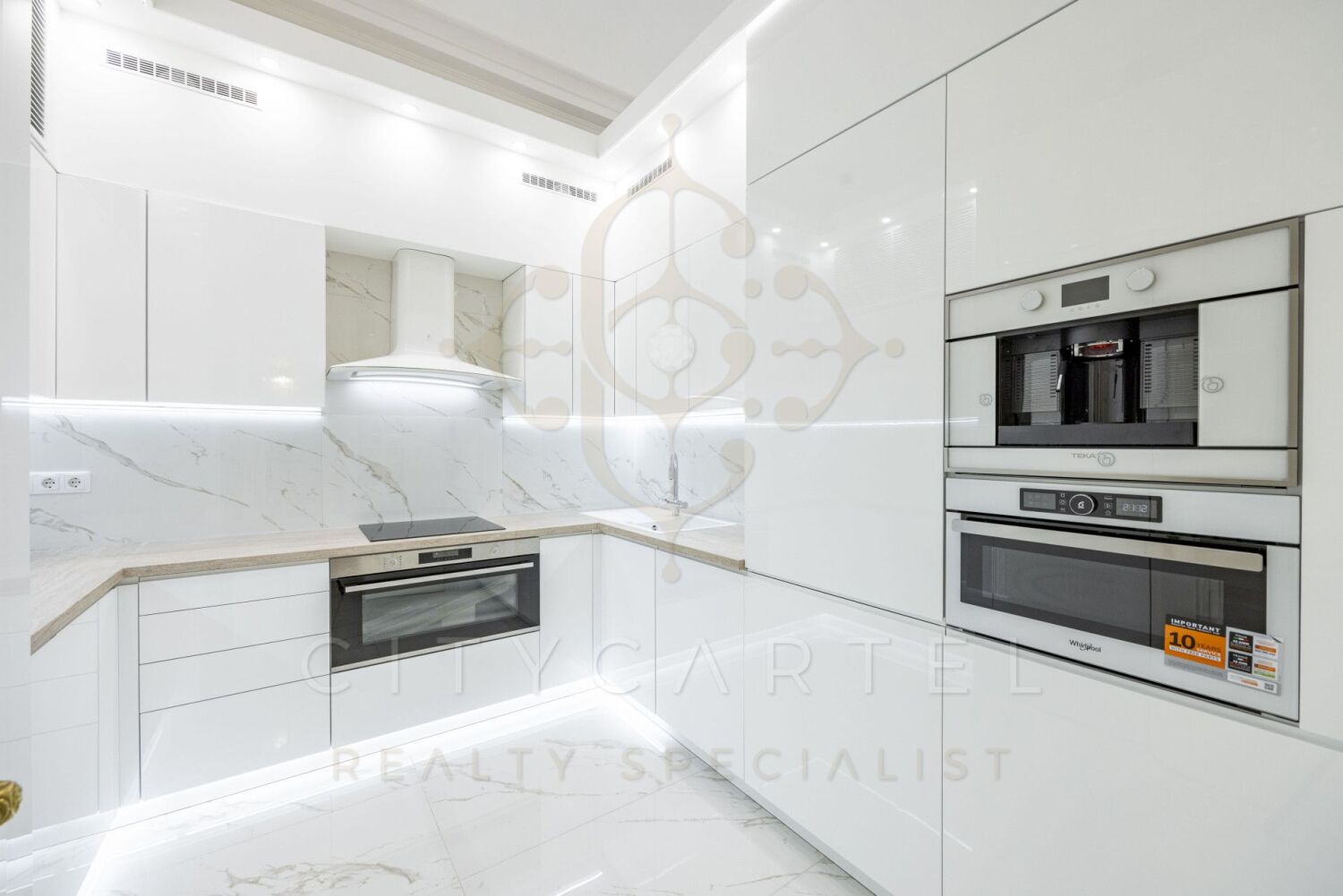 The apartment is located in a beautiful building with an elevator. The furnished apartment has high-quality appliances and electric shutters.