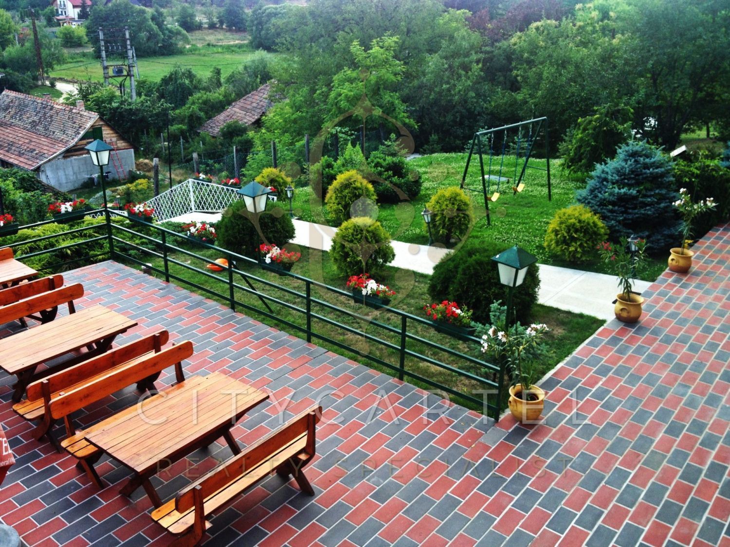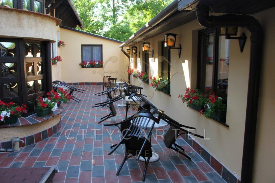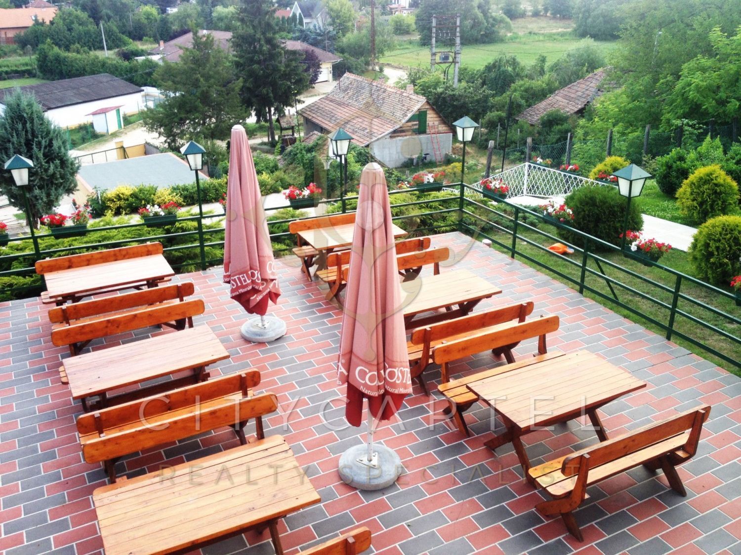 Az épülethez két engedélyezett konyha, nagy borospince, panoráma terasz tartozik. Az épület kürüli terasz összesen 400 nm. Külön bejáratú, 2 szintes gondnoki lakásnak való lakás is van az épületben.
